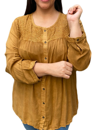 Blusa Camisola Bordada A Mano Abotonada Mujer Lucknow