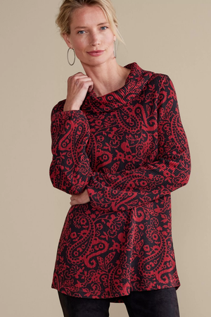 Sweater Blusa Soft Surroundings Waffle Estampado Manga Larga
