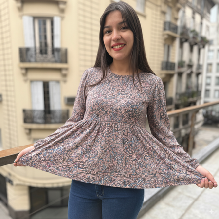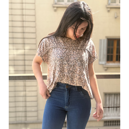 BLUSA LUCKY BRAND ESTAMPADA TERMINACIÓN ELASTICO