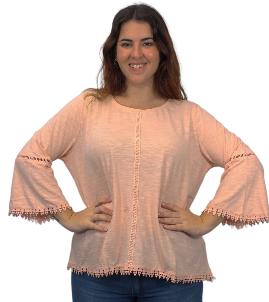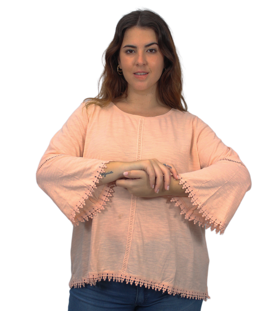 Blusa lisa con detalles de puntilla y manga oxford. Marca: Style&Co Tela: 100% ALGODÓN. Origen: India.