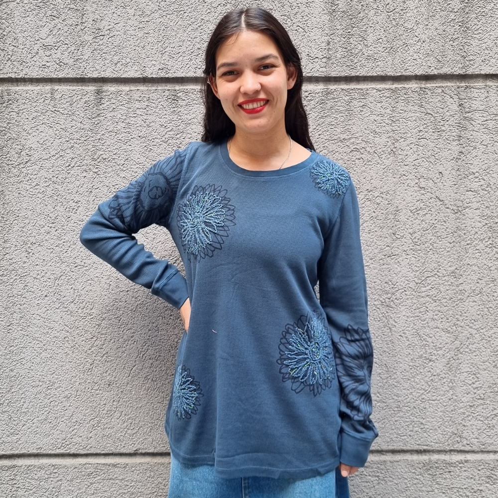 BUZO SWEATER BORDADO-ESTAMPADO FLORES MARCA: Coldwater Creek ORIGEN: India COMPOSICIÓN: %95 Algodón - %5 Spandex