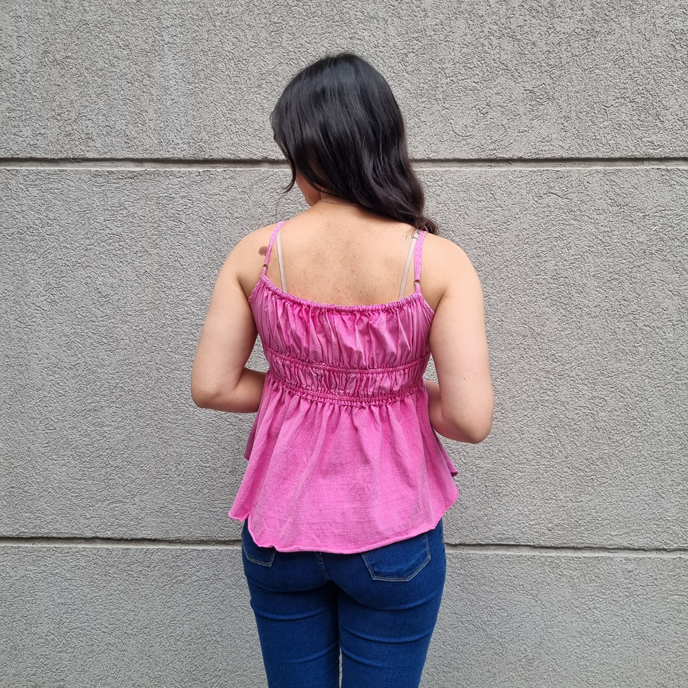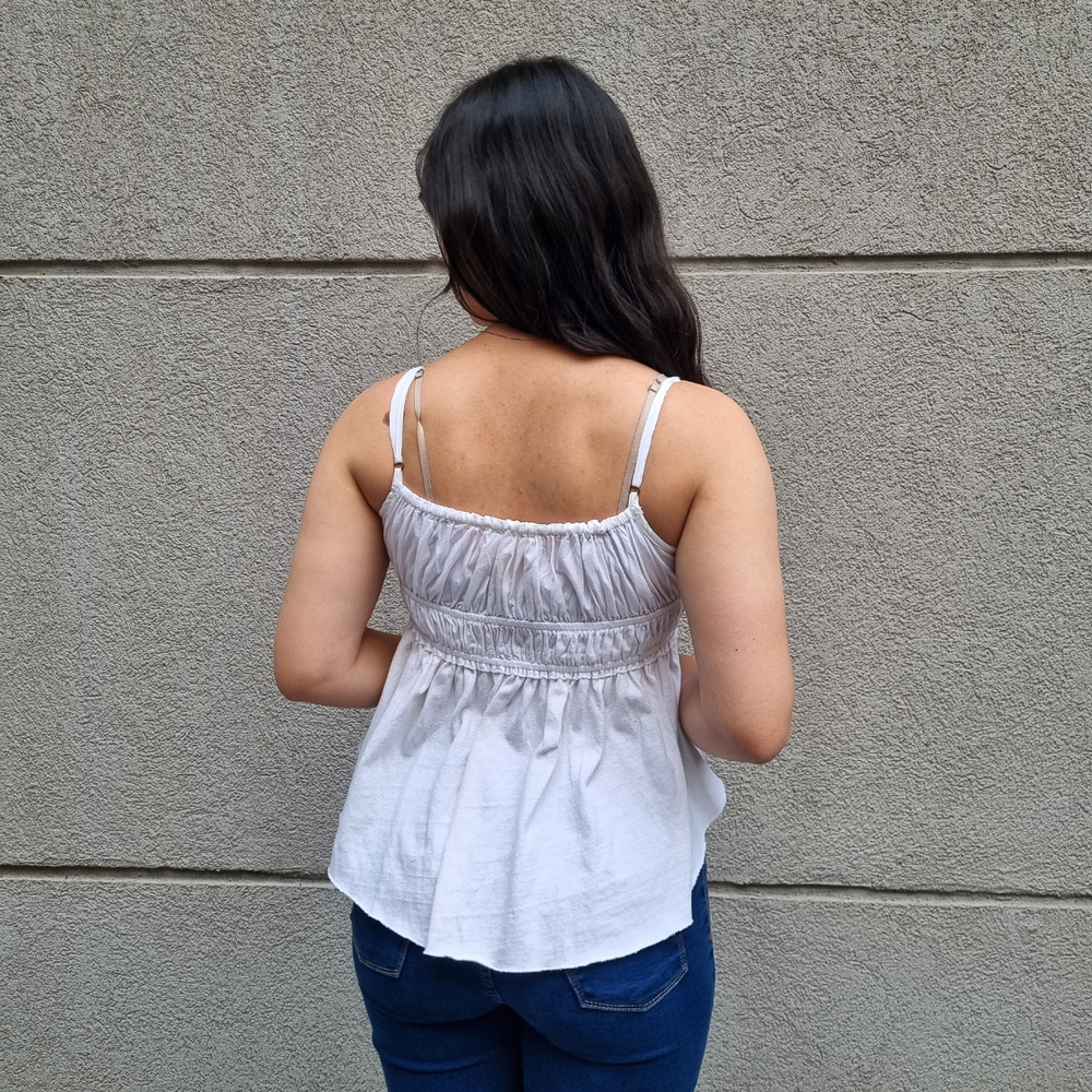 BLUSA CON TIRANTES ESCOTE CON CORDON Y CINTURA ELASTICO CON CAIDA SUELTA MARCA: FREE PEOPLE ORIGEN: India COMPOSICIÓN: %100 Algodón