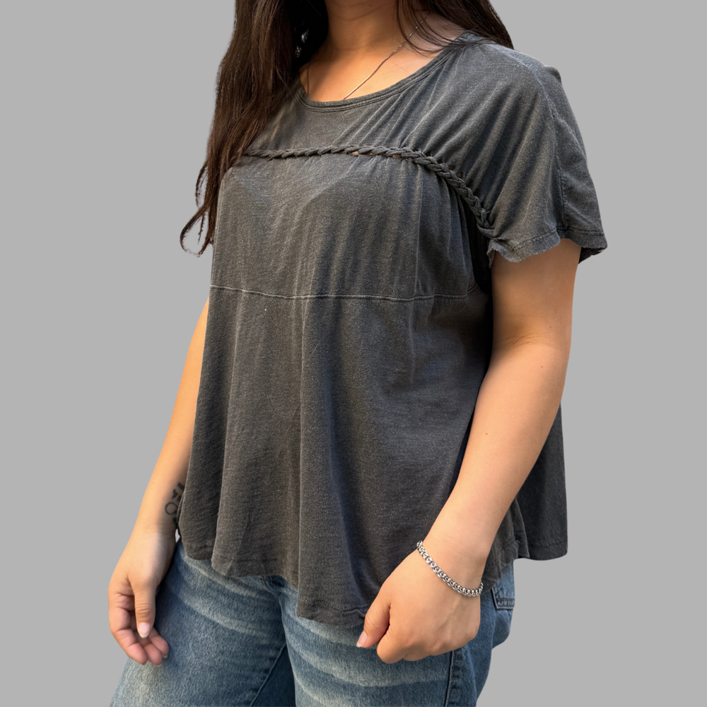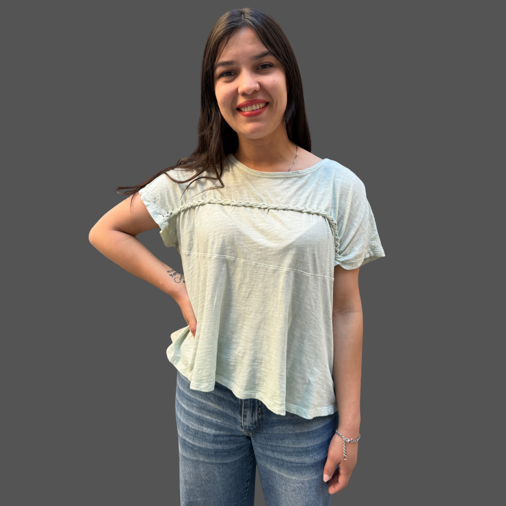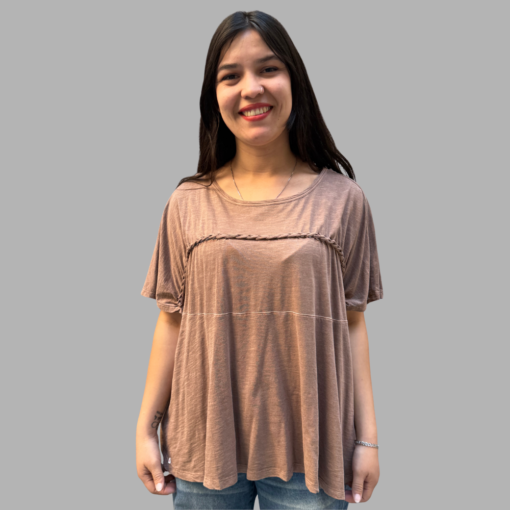 BLUSA MANGA CORTA ESTAMPADO FLORAL DETALLE TRENZA EN EL PECHO MARCA: Lucky Brand ORIGEN: India COMPOSICIÓN: %60 Algodón - %40 Modal