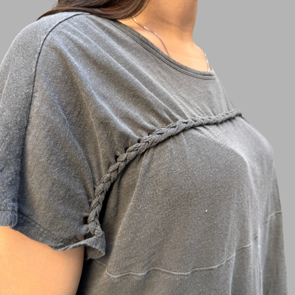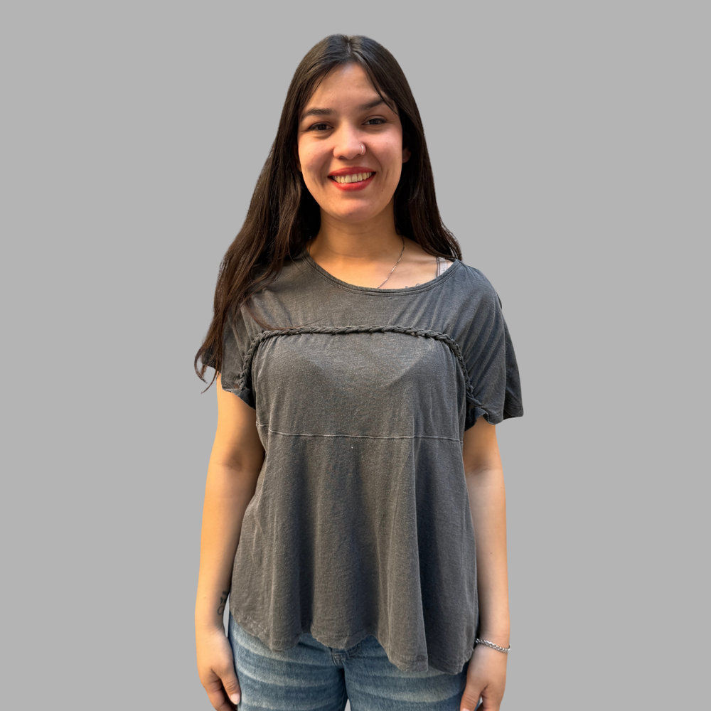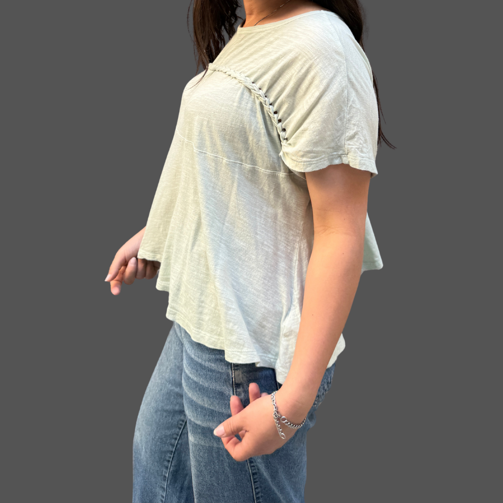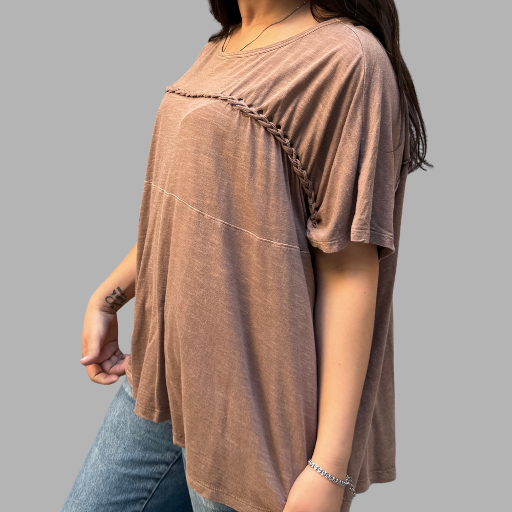 BLUSA MANGA CORTA ESTAMPADO FLORAL DETALLE TRENZA EN EL PECHO MARCA: Lucky Brand ORIGEN: India COMPOSICIÓN: %60 Algodón - %40 Modal