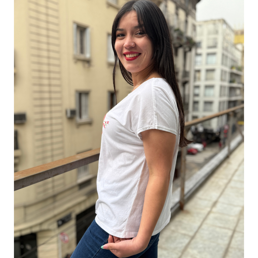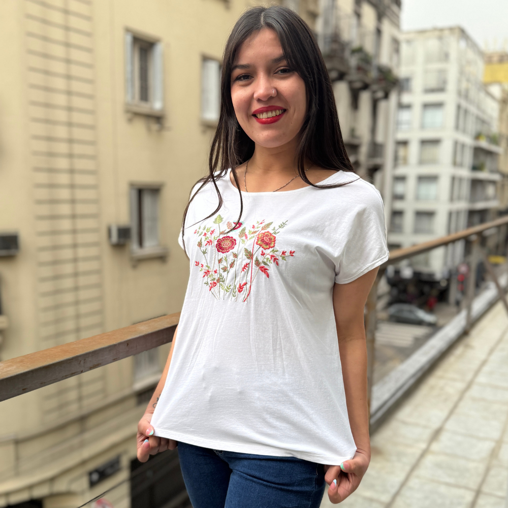 BLUSA MANGA CORTA BORDADO FLORES EN HILO MARCA: Coldwater Creek ORIGEN: India COMPOSICIÓN: Algodón 100%