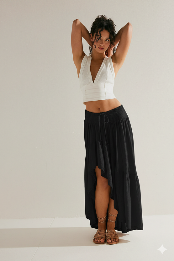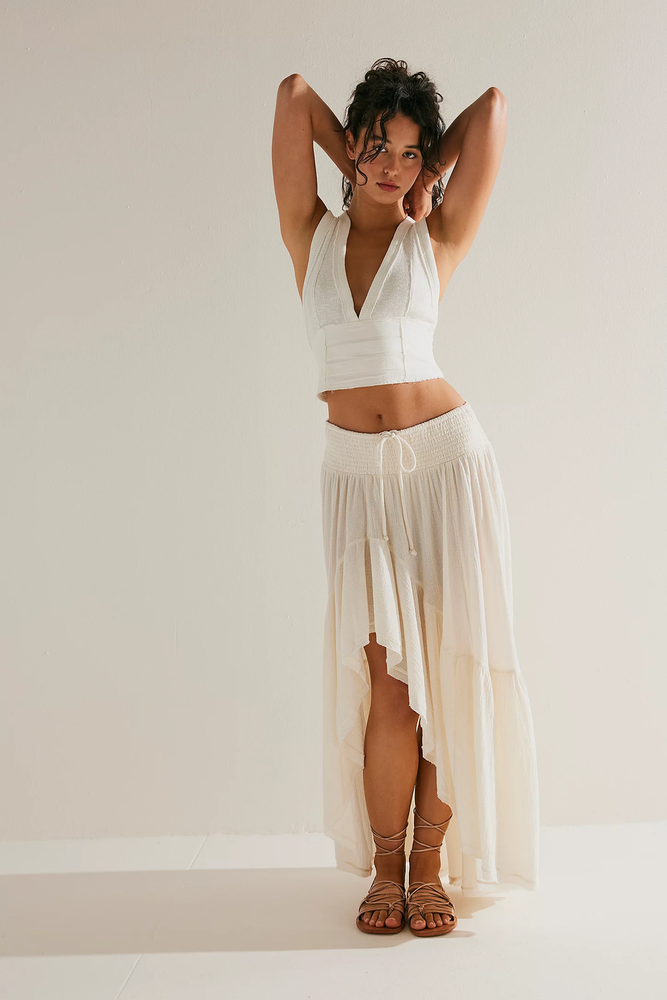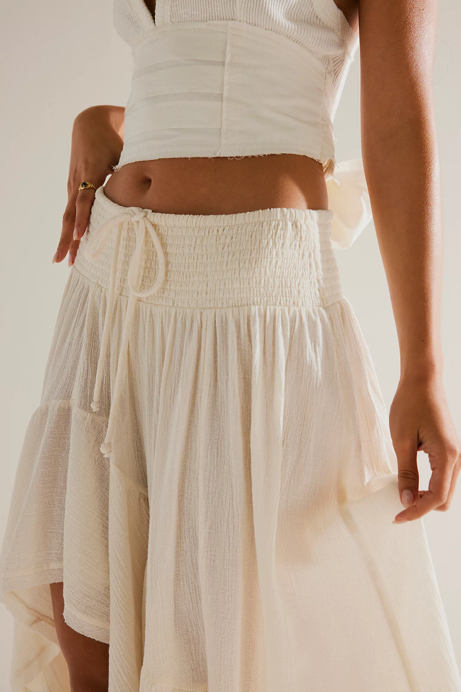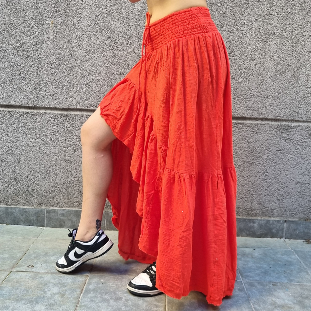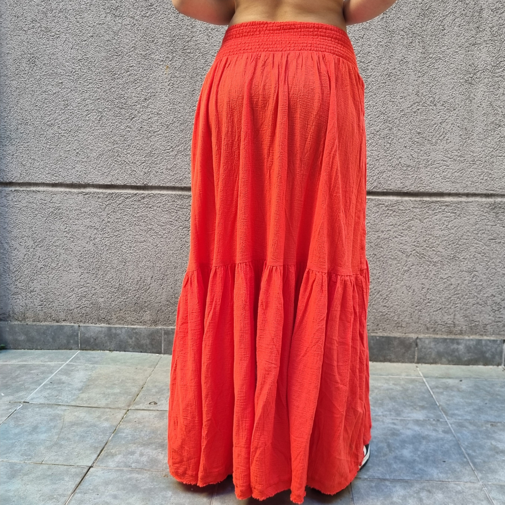 POLLERA MAXI LARGO VOLADOS VINATGE CINTURA ELASTIZADO CON CORDON MARCA: Free People ORIGEN: India COMPOSICIÓN: Algodón