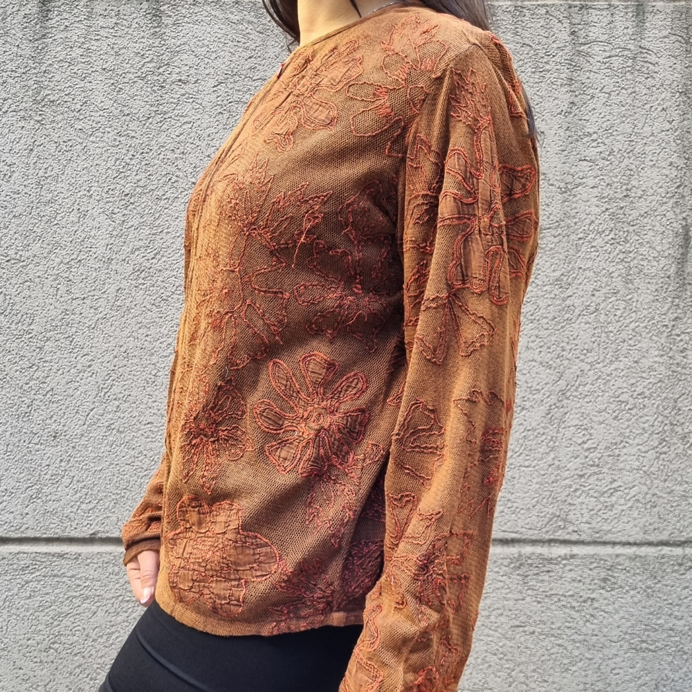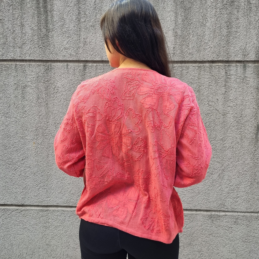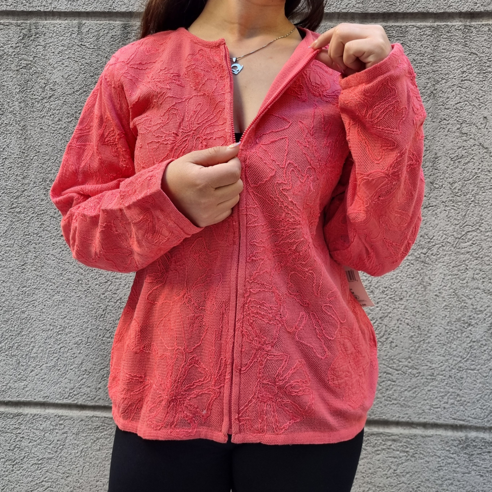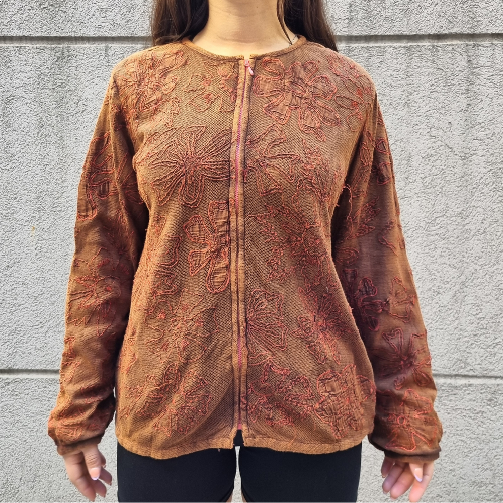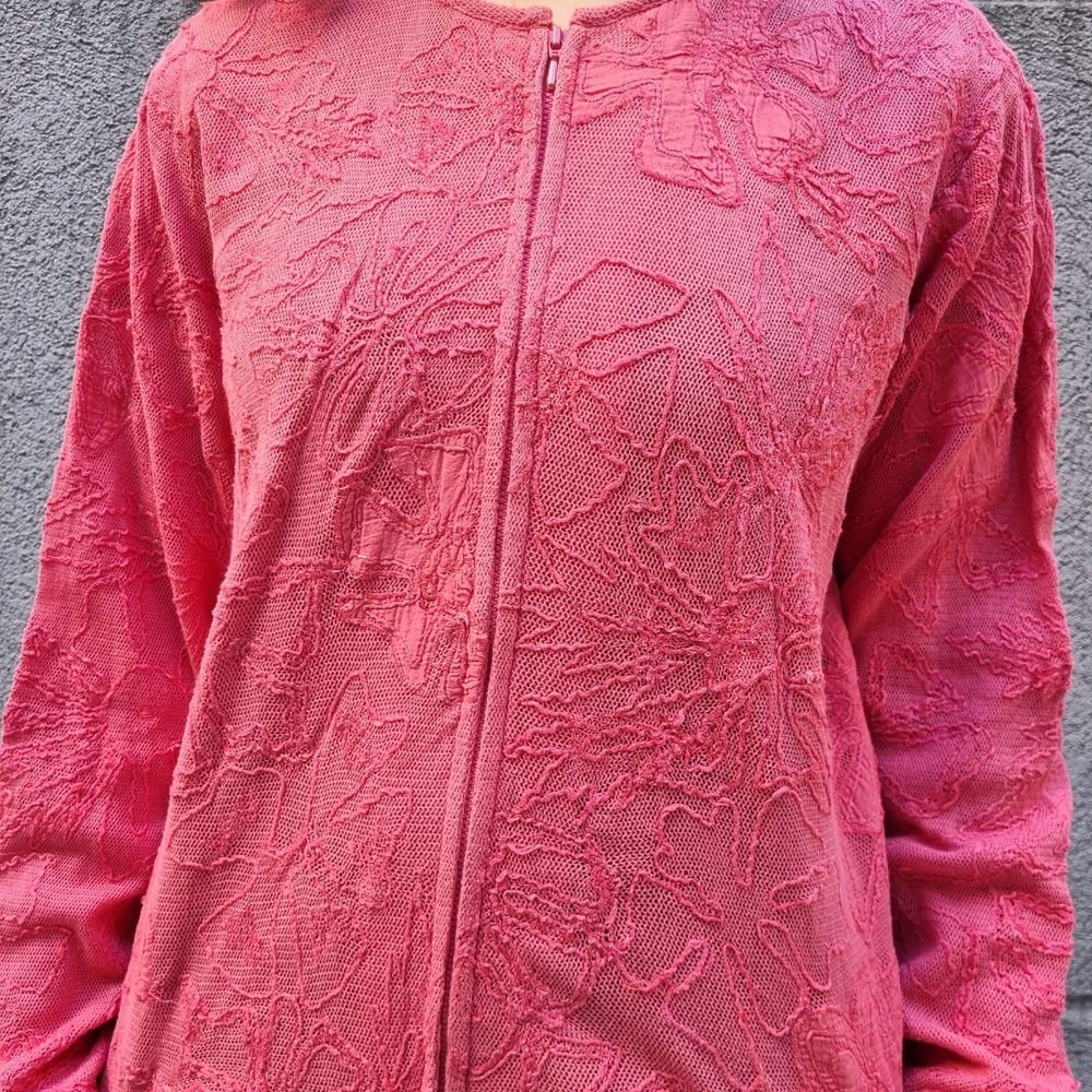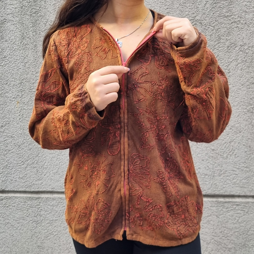 Saco con cierre bordada en hilos ROSA CHICLE - MARRÓN CLARO - MARCA: Laura Ashley COM´POSICIÓN: Algodón 100% MEDIDAS: contorno SISA / CADERA / LARGO / HOMBRO A HOMBRO S: 120cm / 120cm / 63cm / 38cm M: 126cm / 126cm / 63cm / 45cm L: 136cm / 136cm / 63cm / 46cm XL: 140cm / 140cm / 63cm / 50cm XXL: 146cm / 146cm / 63cm / 52cm