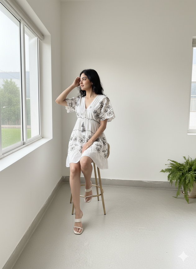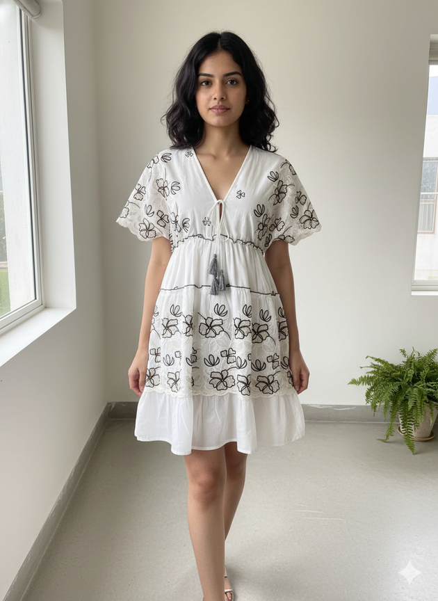 vestido corto bordado flores MARCA: ANAANDI ORIGEN: INDIA