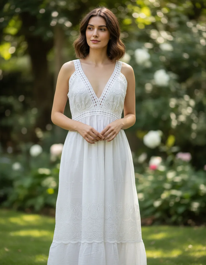 Vestido Largo Broderie lace calidad premium MARCA: ANAANDI ORIGEN: INDIA