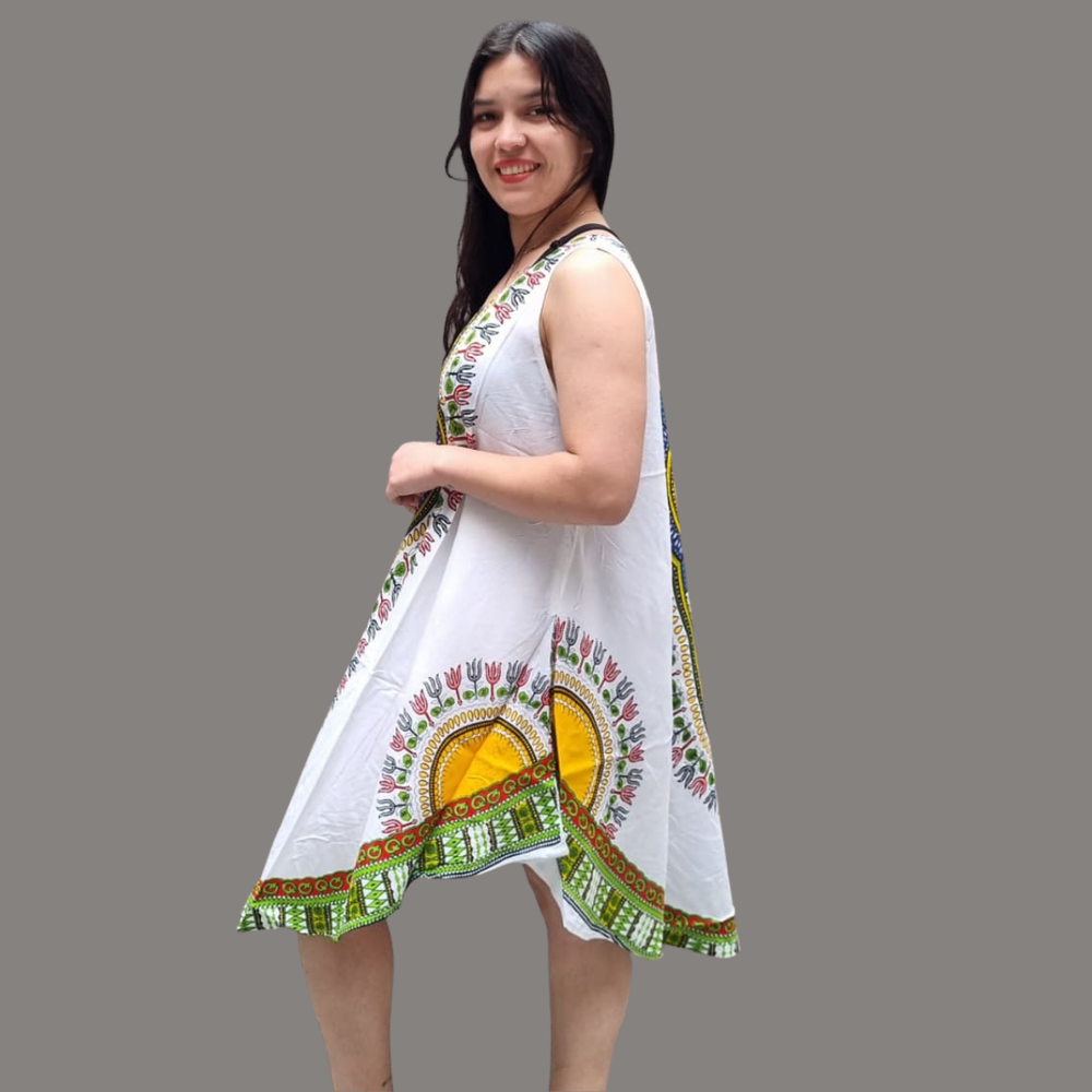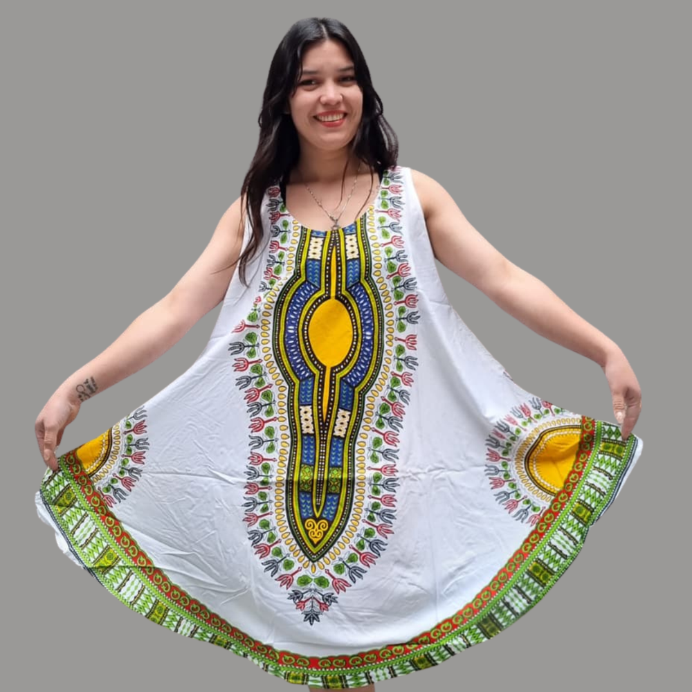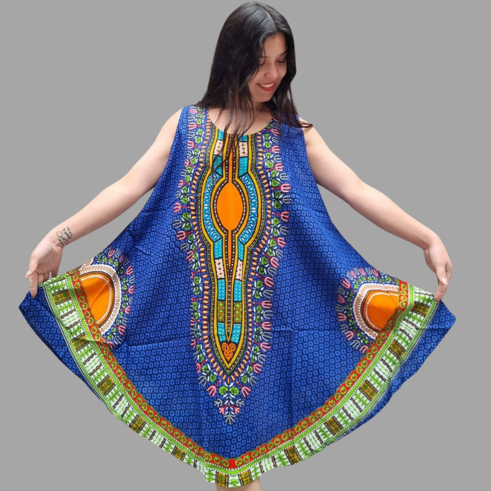 Vestidos Estampados, sin manga y corte al bies. MARCA: Anaandi Tela: Viscosa Origen: India.