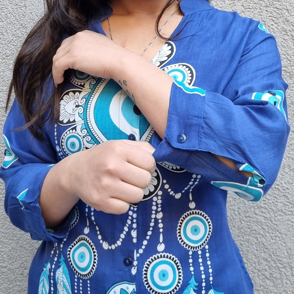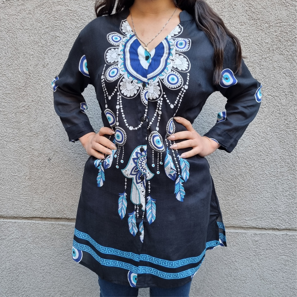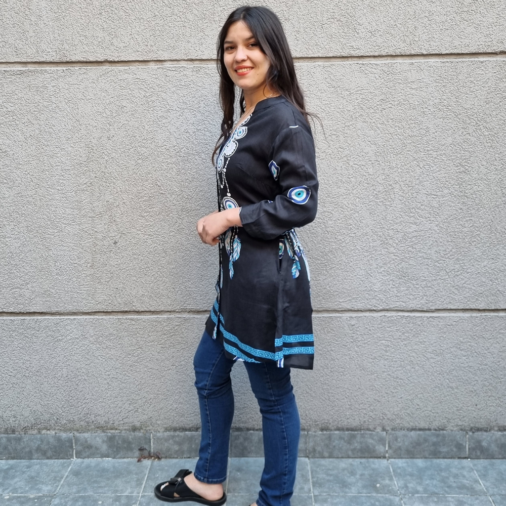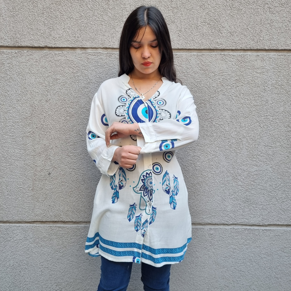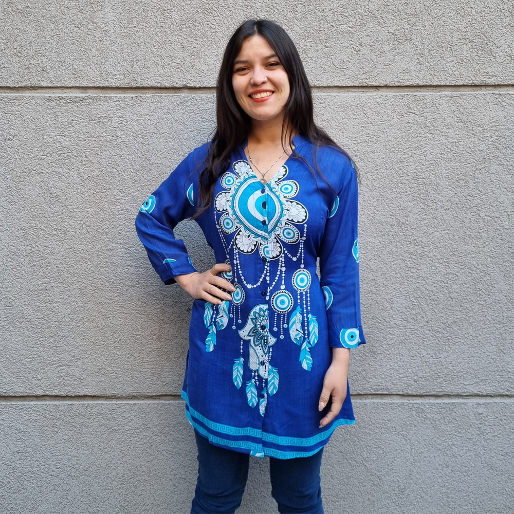 CAMISOLA ABOTONADA ESTAMPADA MANGA 3/4 MARCA: Anaandi ORIGEN: India COMPOSICIÓN: 100% Viscosa