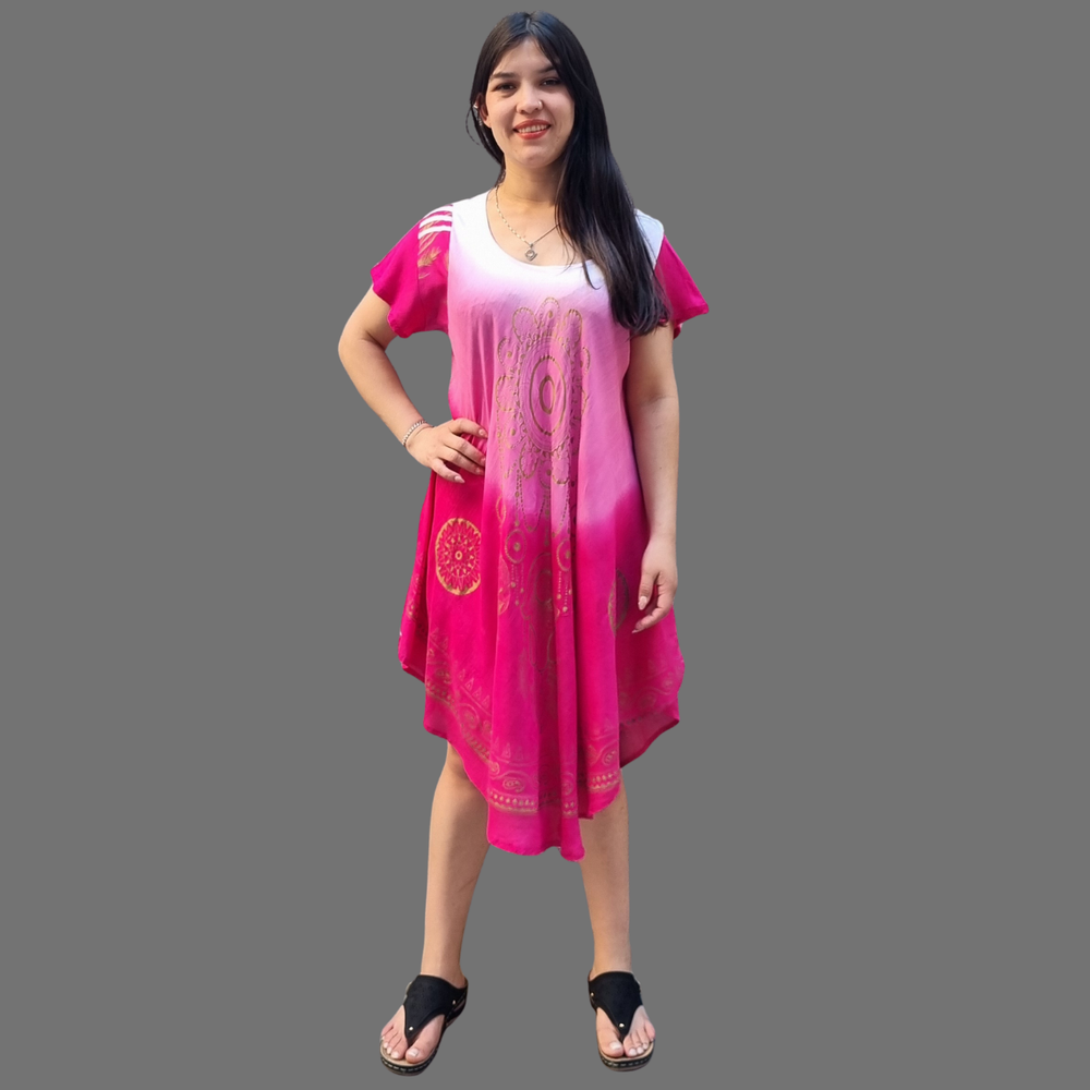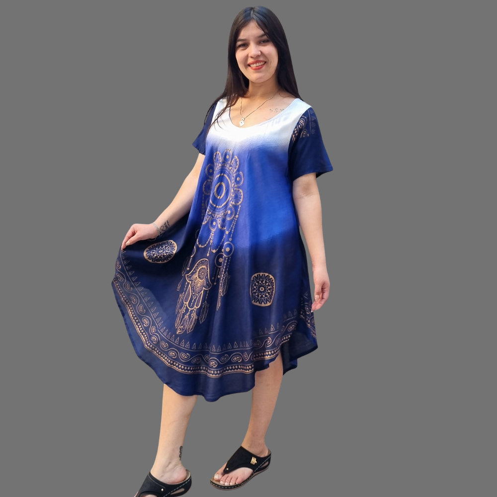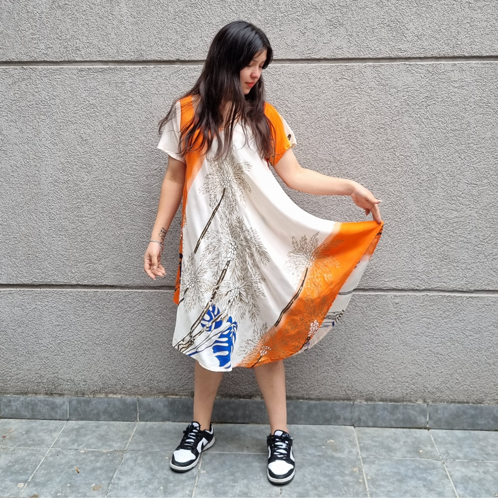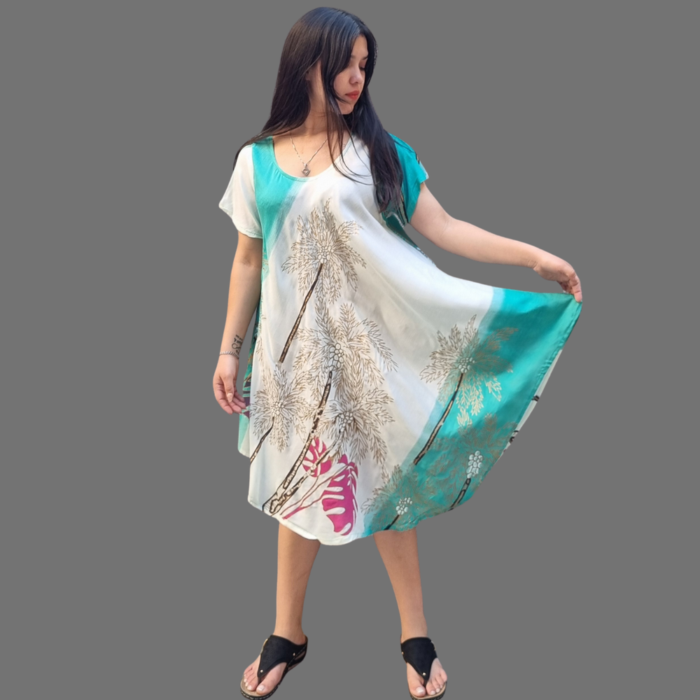 Vestidos Estampados, manga corta y corte al bies. MARCA: Anaandi Tela: Viscosa Origen: India.