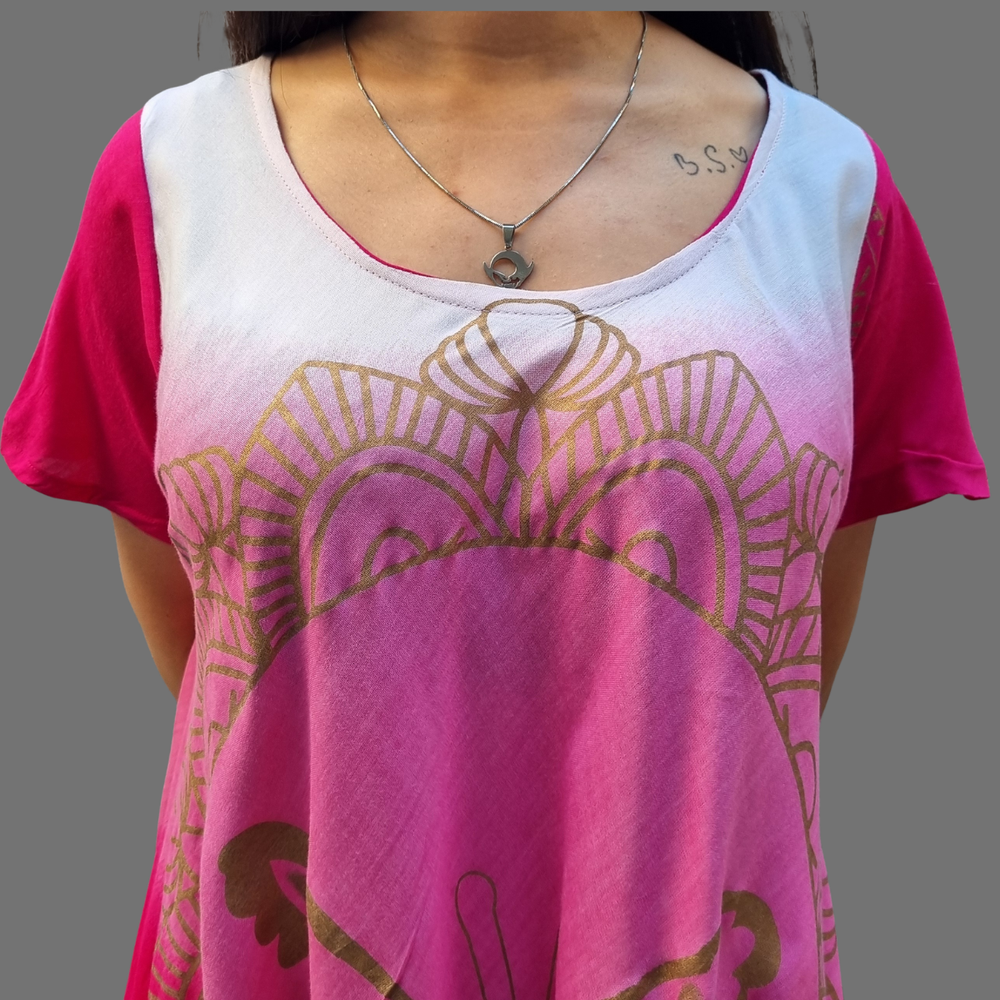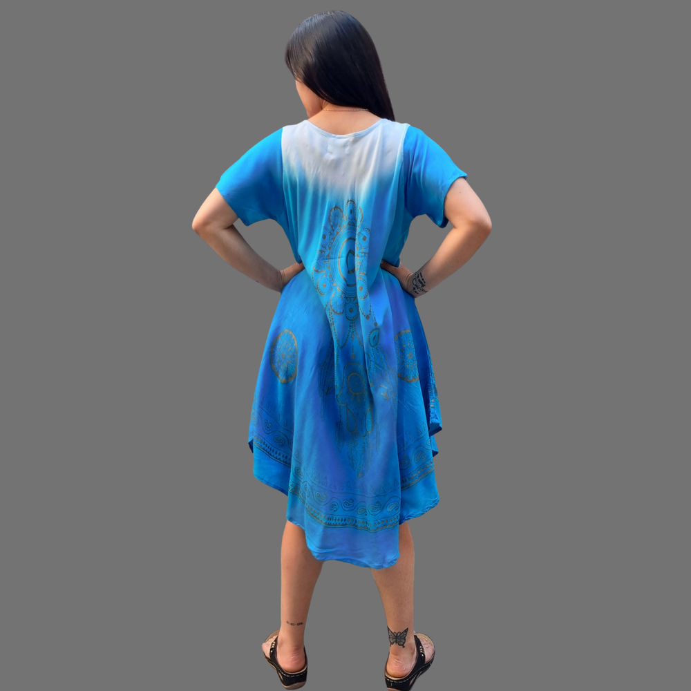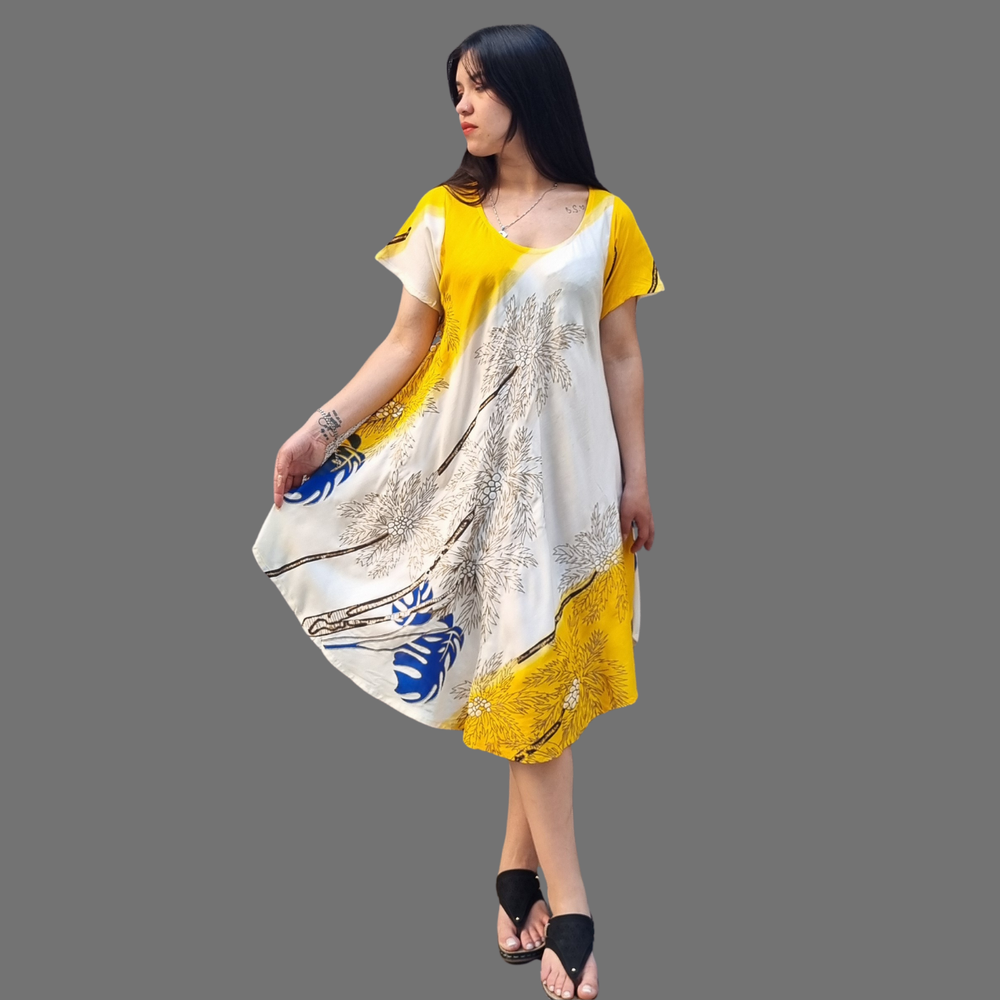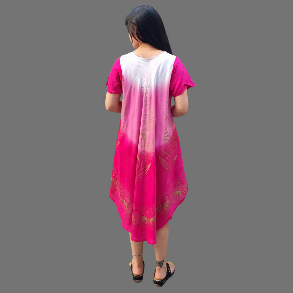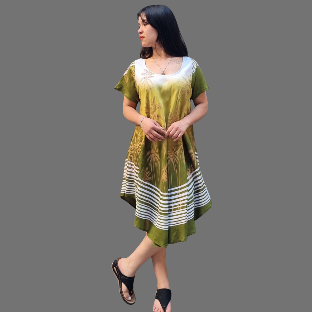 Vestidos Estampados, manga corta y corte al bies. MARCA: Anaandi Tela: Viscosa Origen: India.
