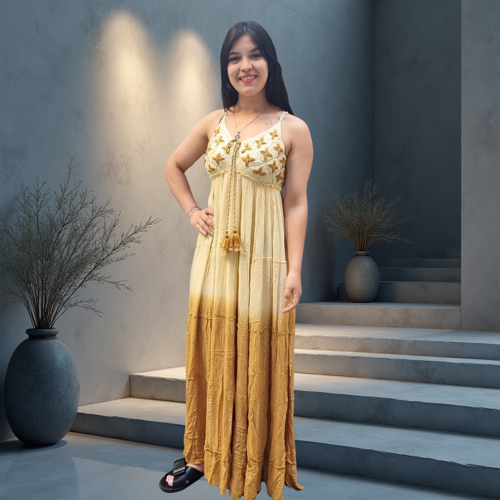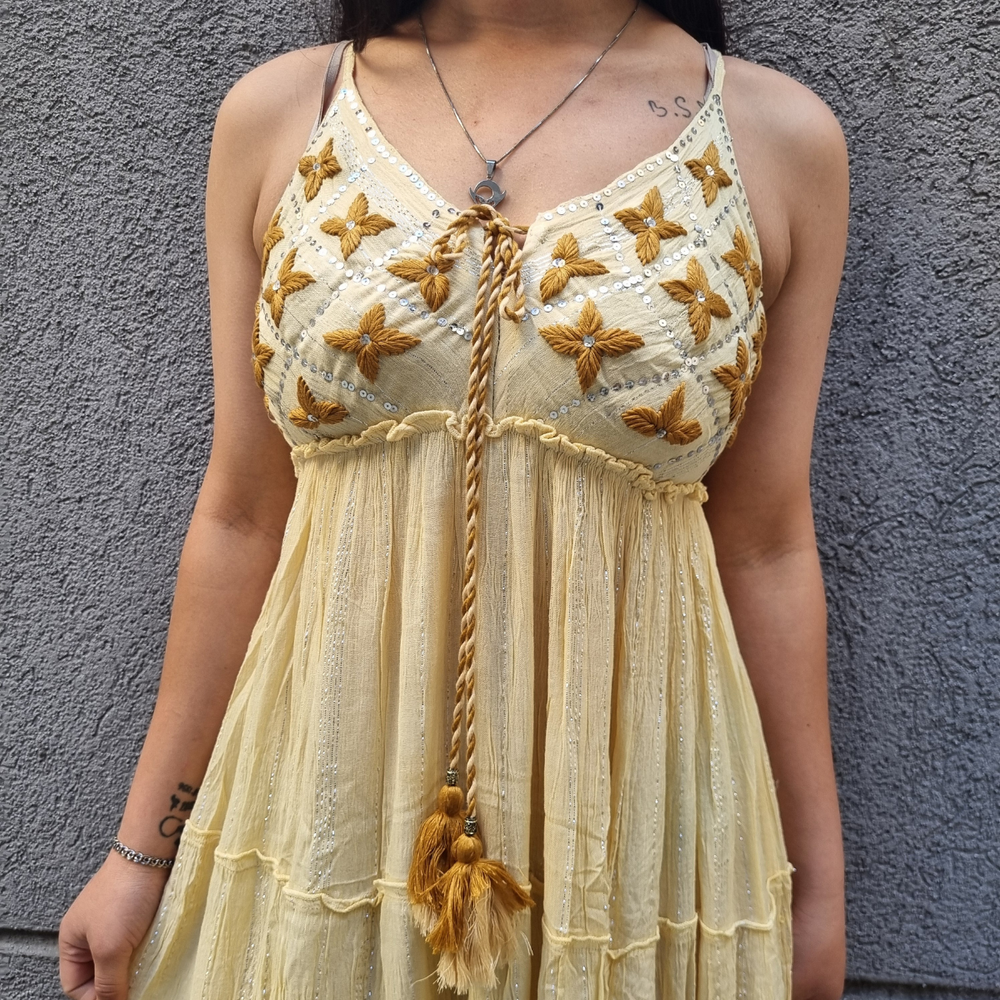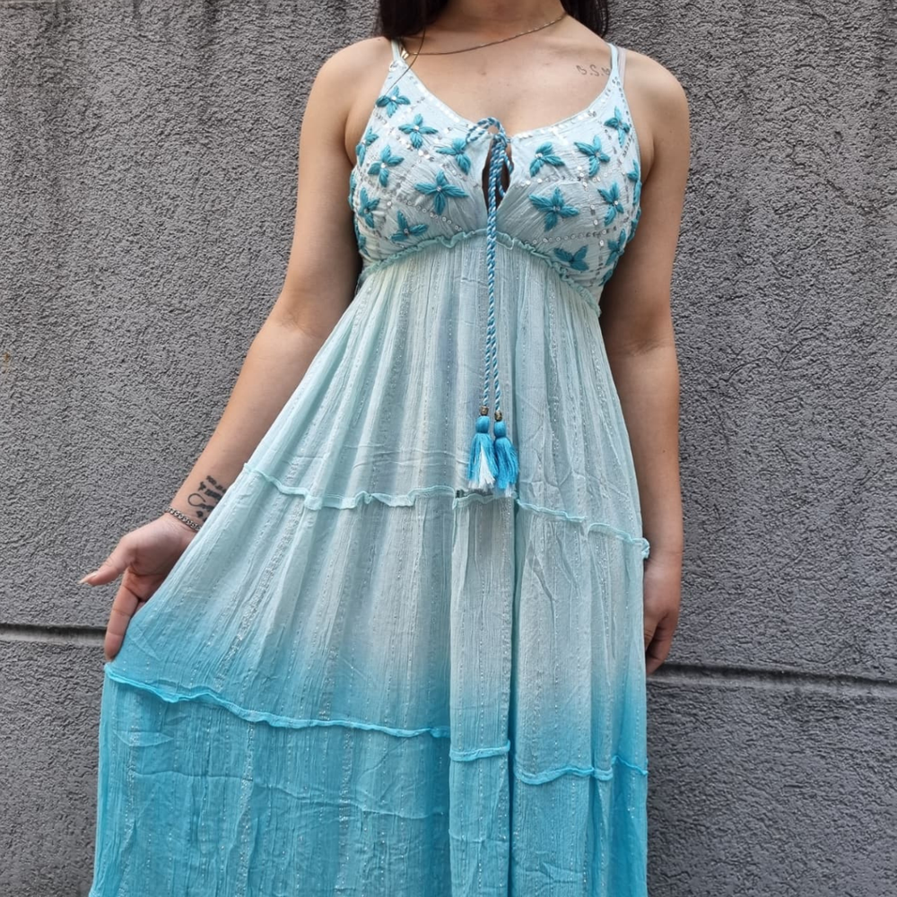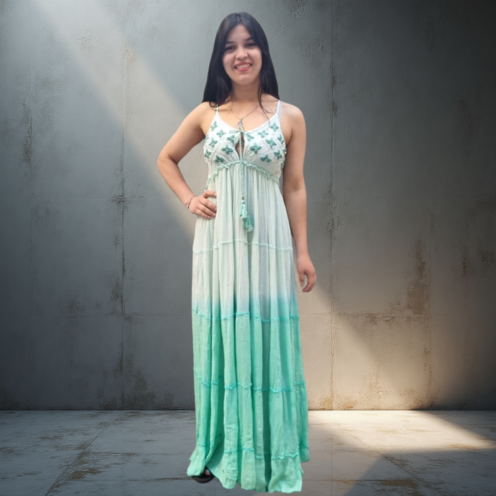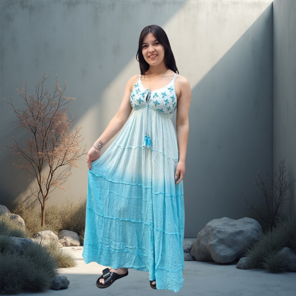 Vestidos Boutique largo bordado a mano con breteles regulables MARCA: Anaandi TELA: Bambula Origen: India.
