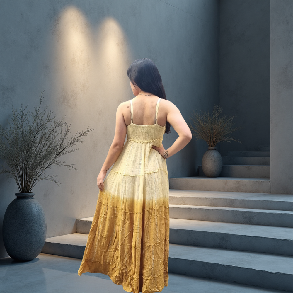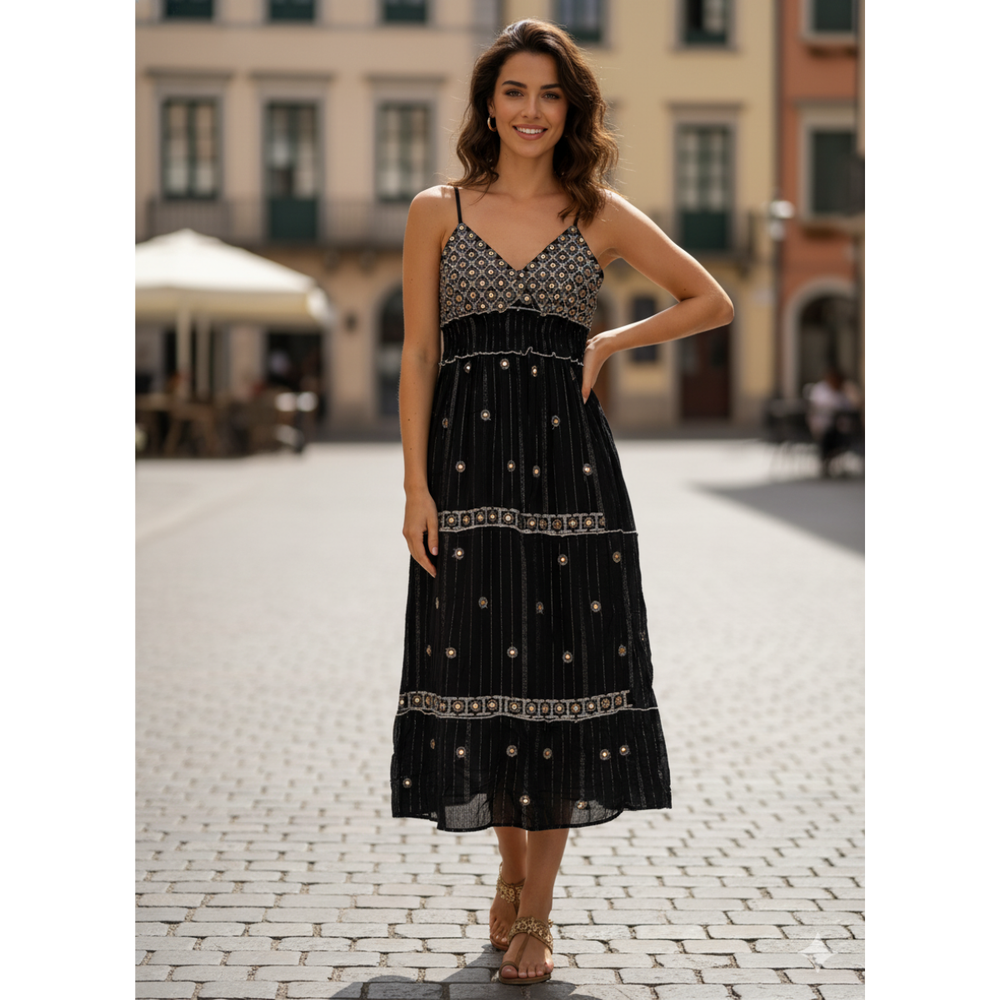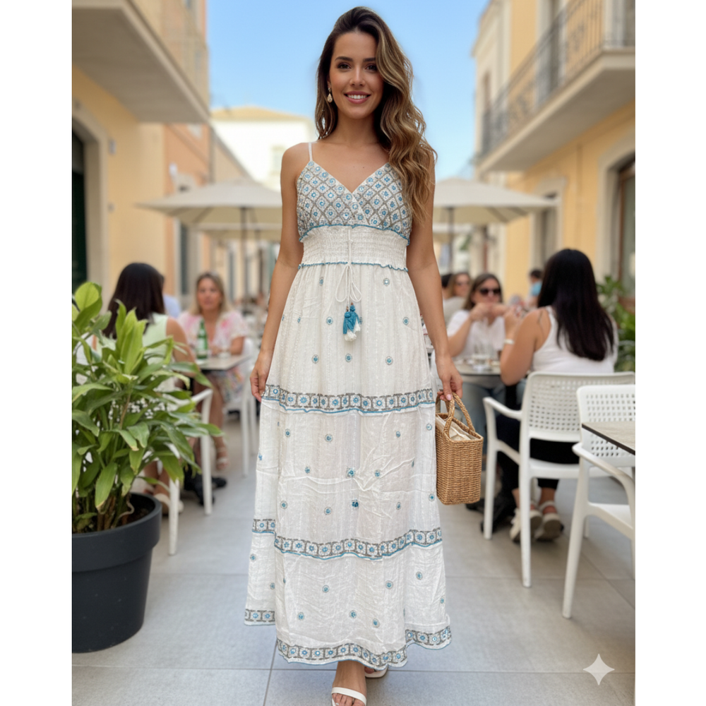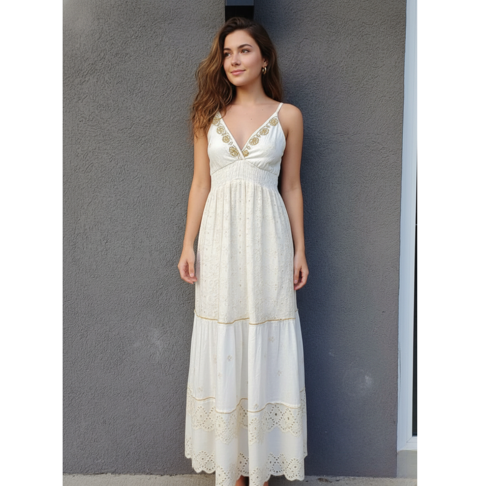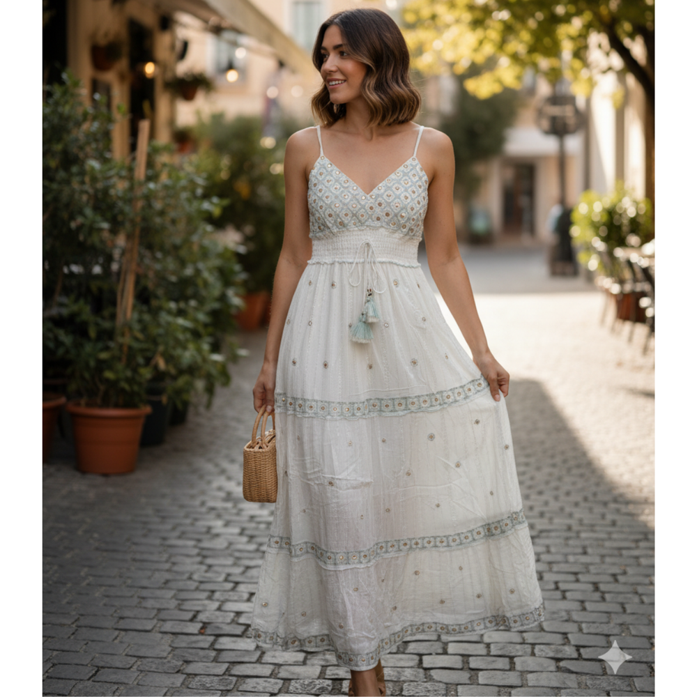 Vestidos Boutique largo bordado a mano con breteles regulables MARCA: Anaandi TELA: Bambula Origen: India.