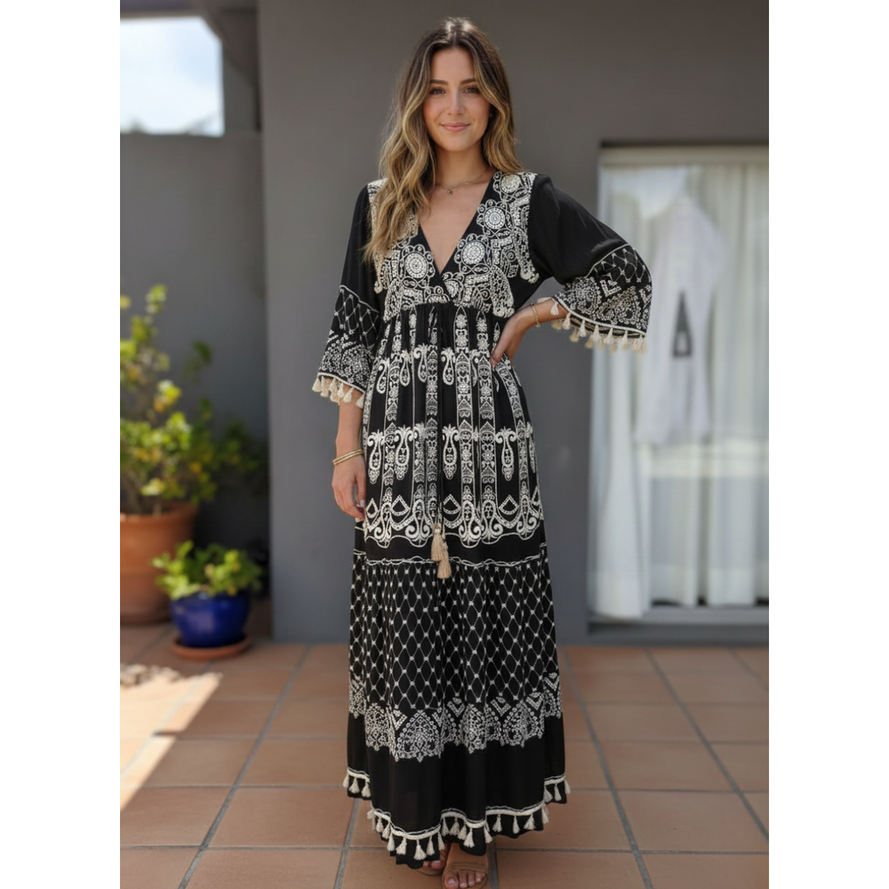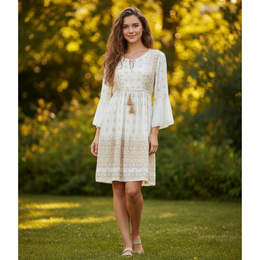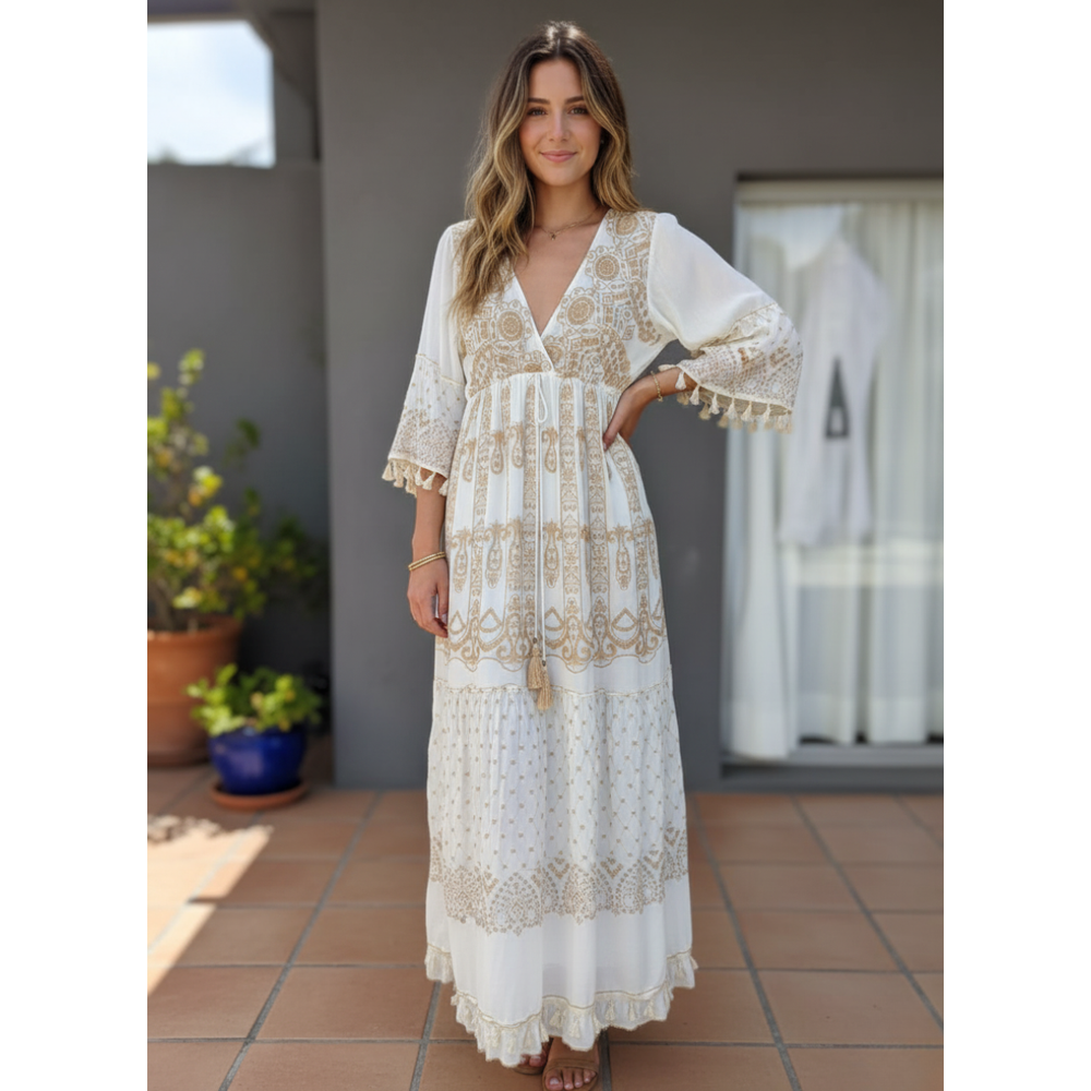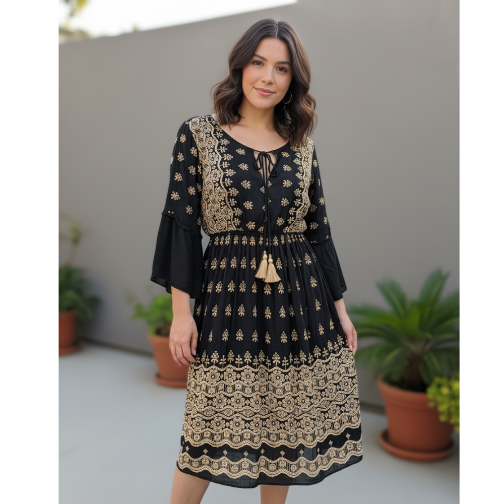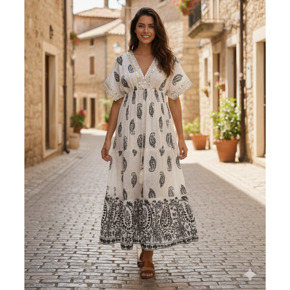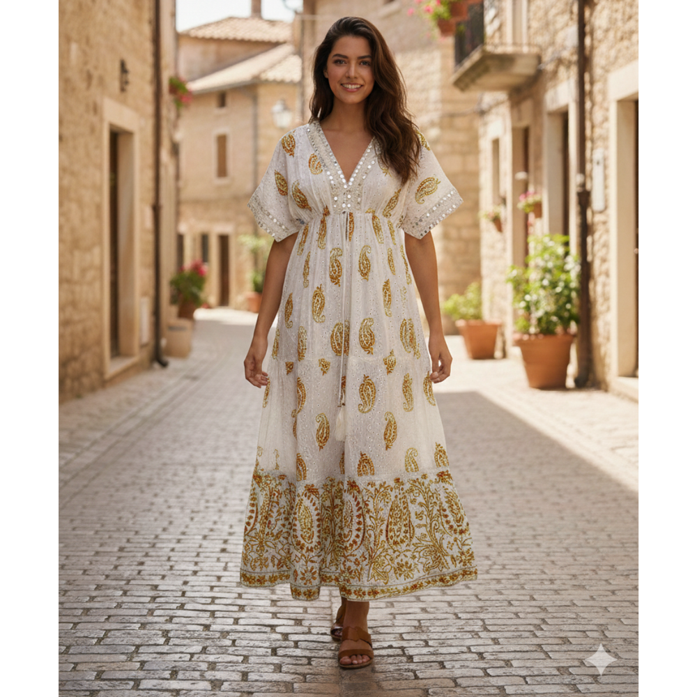 VESTIDO LARGO BORDADO BRODERIE MANGA CORTA MARCA: Anaandi ORIGEN: India COMPOSICIÓN: Viscosa 100%