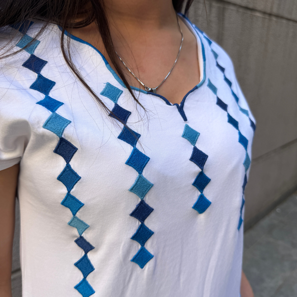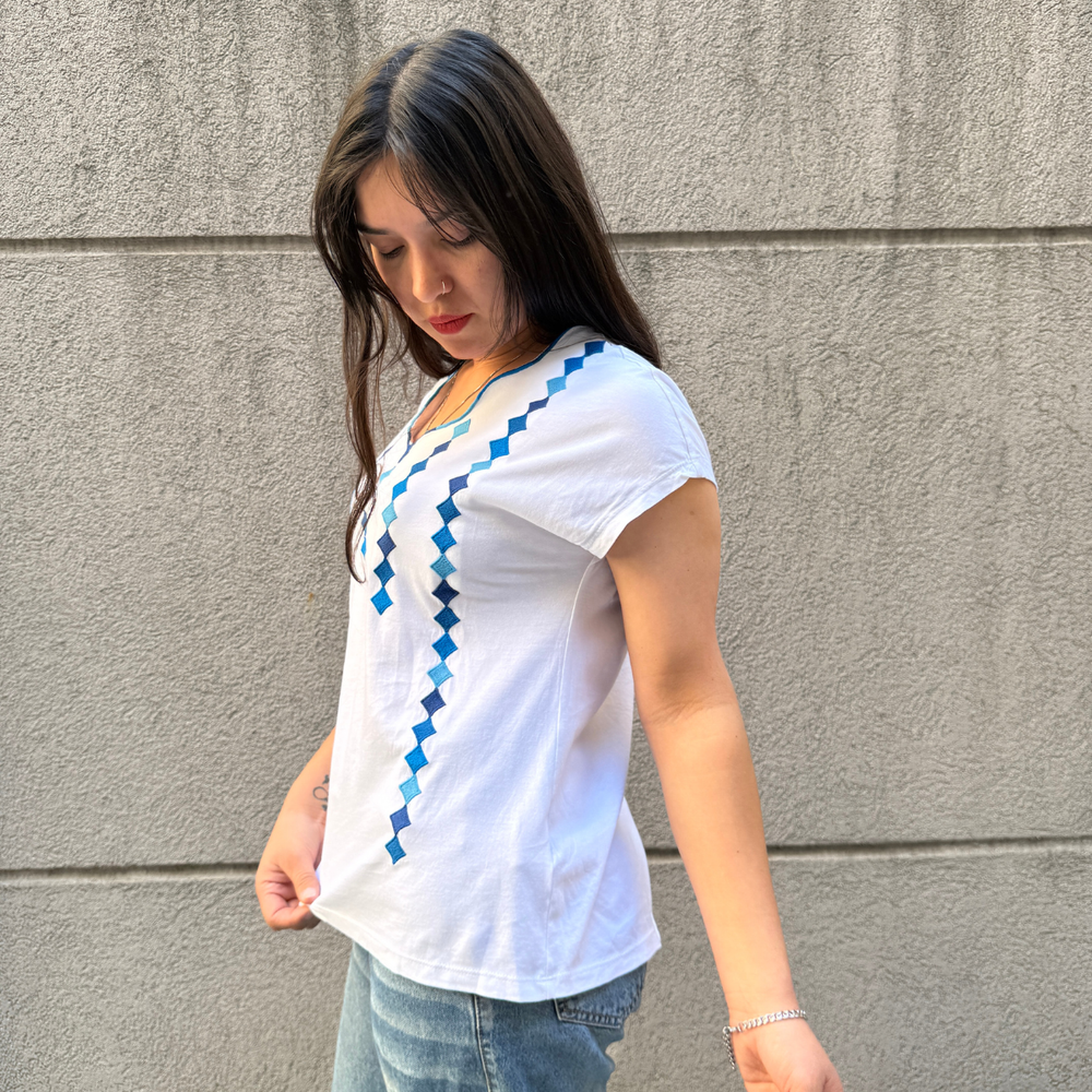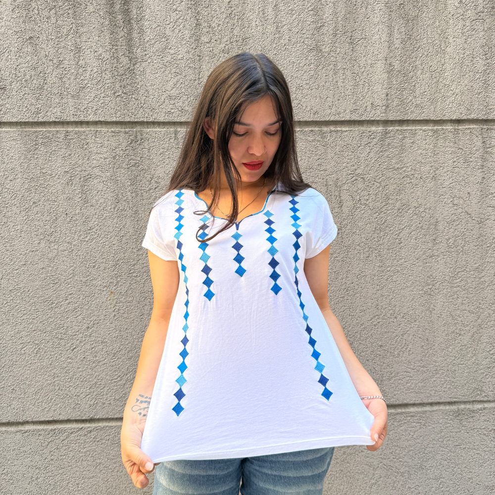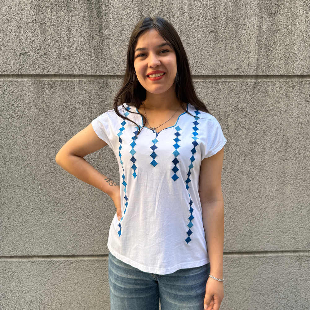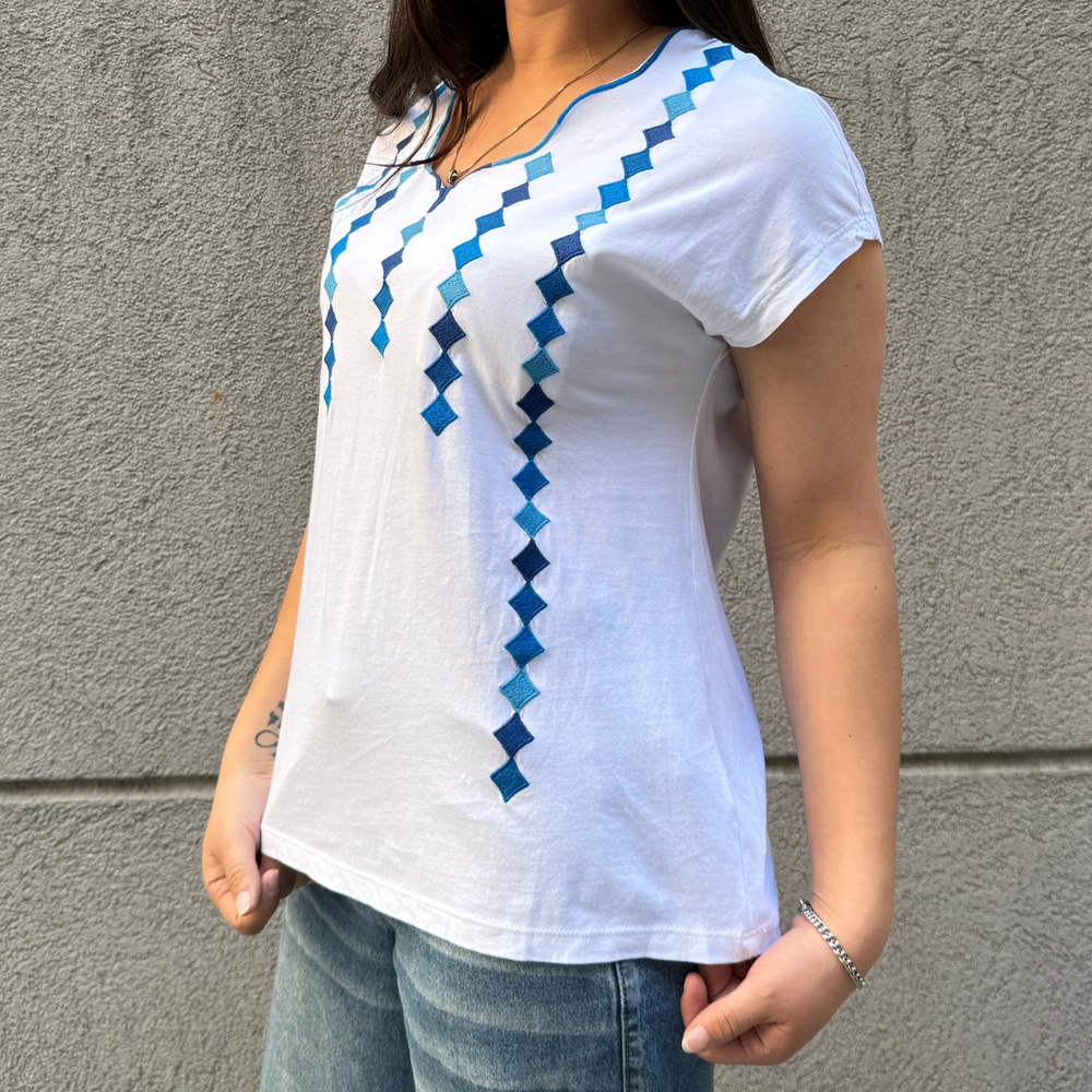 BLUSA REEMERA MANGA CORTA BORDADO ROMBOS MARCA: Soft Surroundings ORIGEN: India COMPOSICIÓN: Algosón 58% - Modal 42%