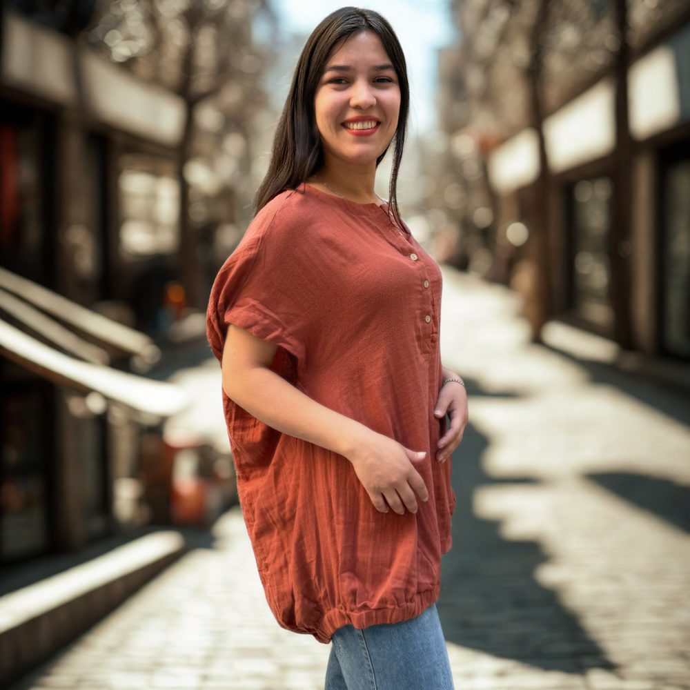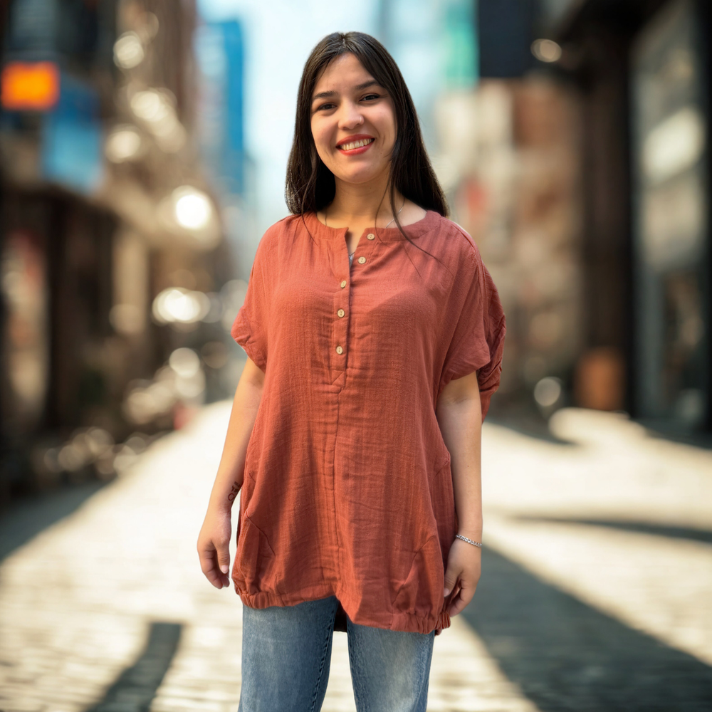 BLUSA SIN MANGA OVERSIZED ABOTONADA MARCA: Free People ORIGEN: India COMPOSICIÓN: 100% Algodón