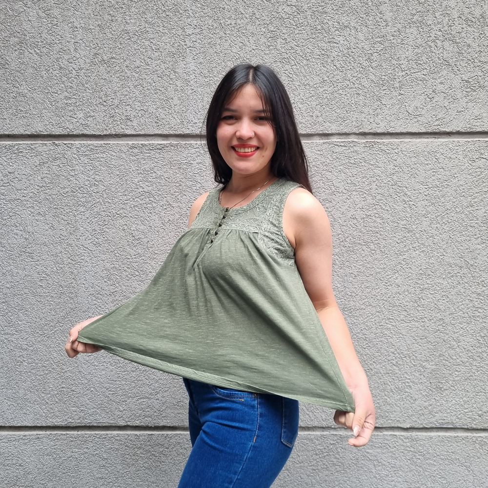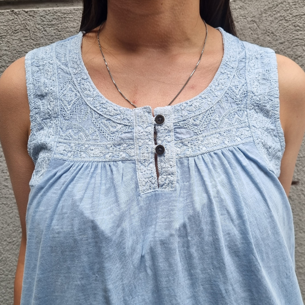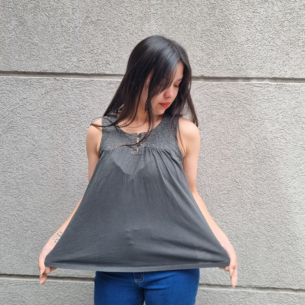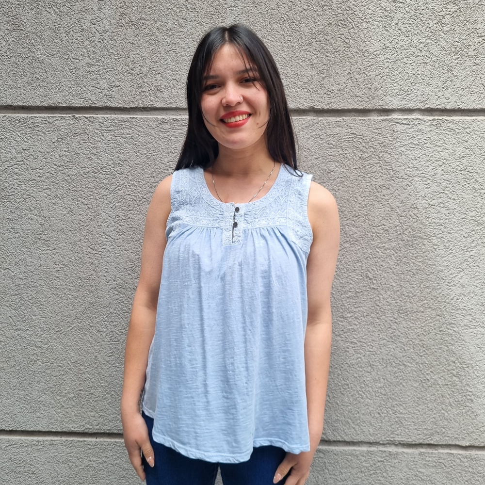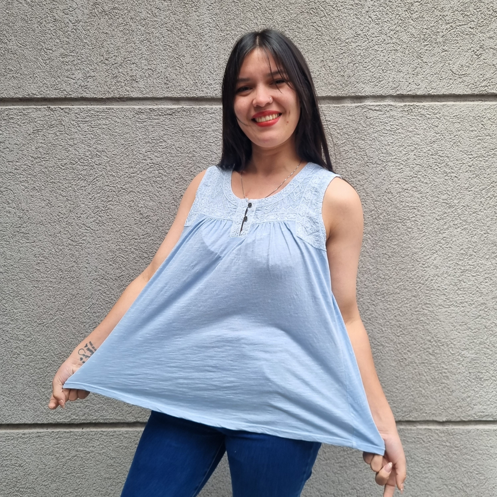 BLUSA MUSCULOSA PECHERA BORDADA AMPLIA MARCA: Lucky Brand ORIGEN: India COMPOSICIÓN: 100% Algodón