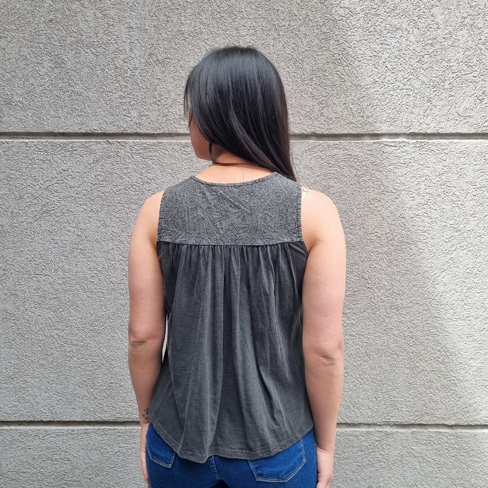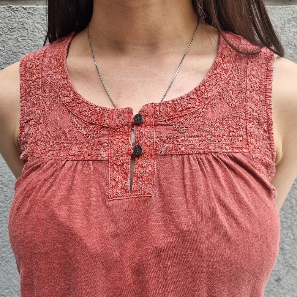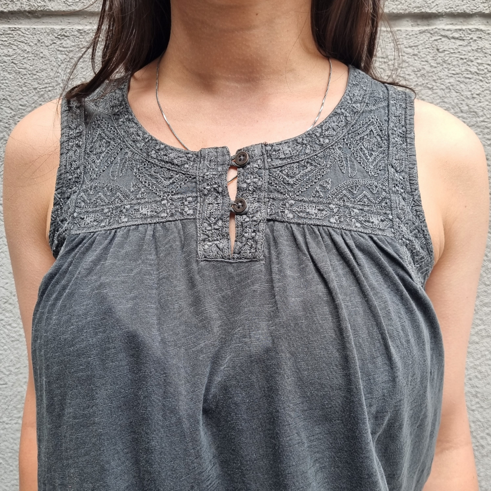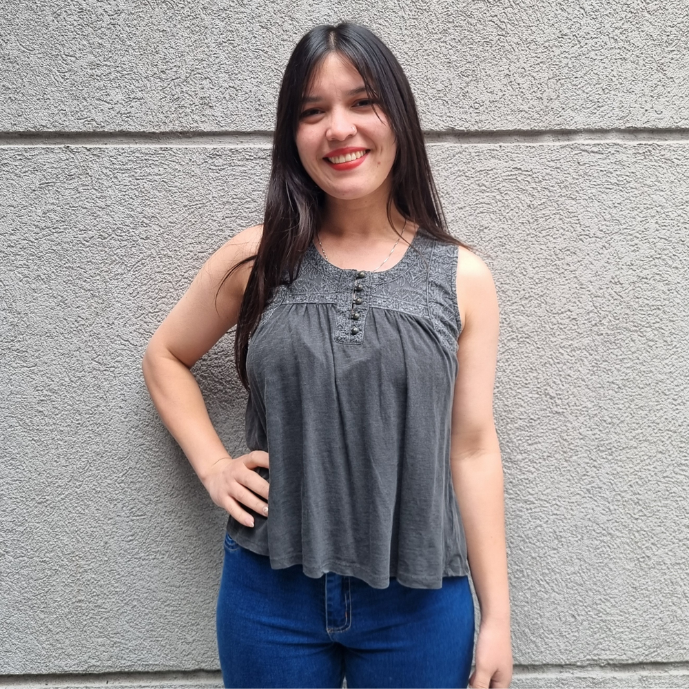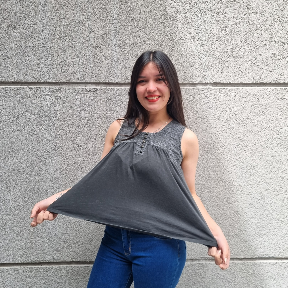 BLUSA MUSCULOSA PECHERA BORDADA AMPLIA MARCA: Lucky Brand ORIGEN: India COMPOSICIÓN: 100% Algodón
