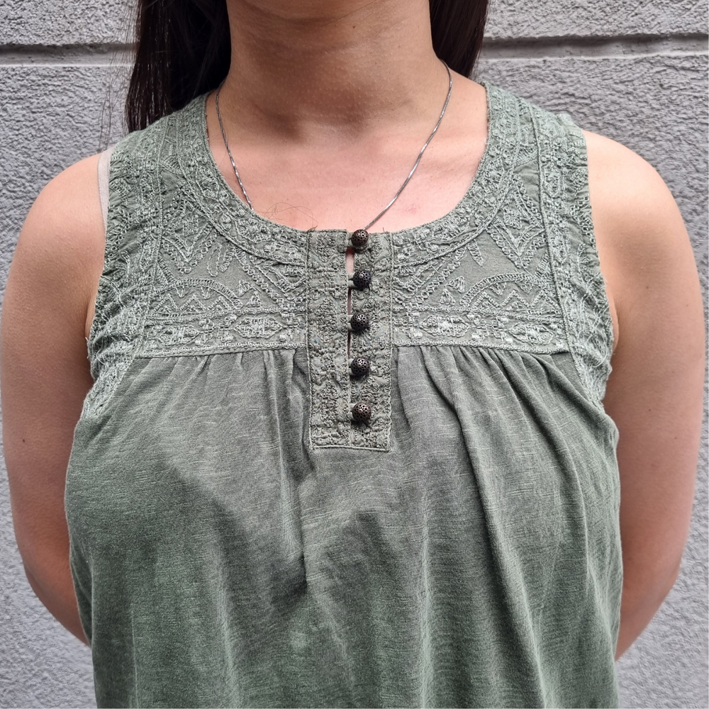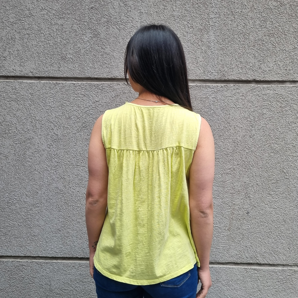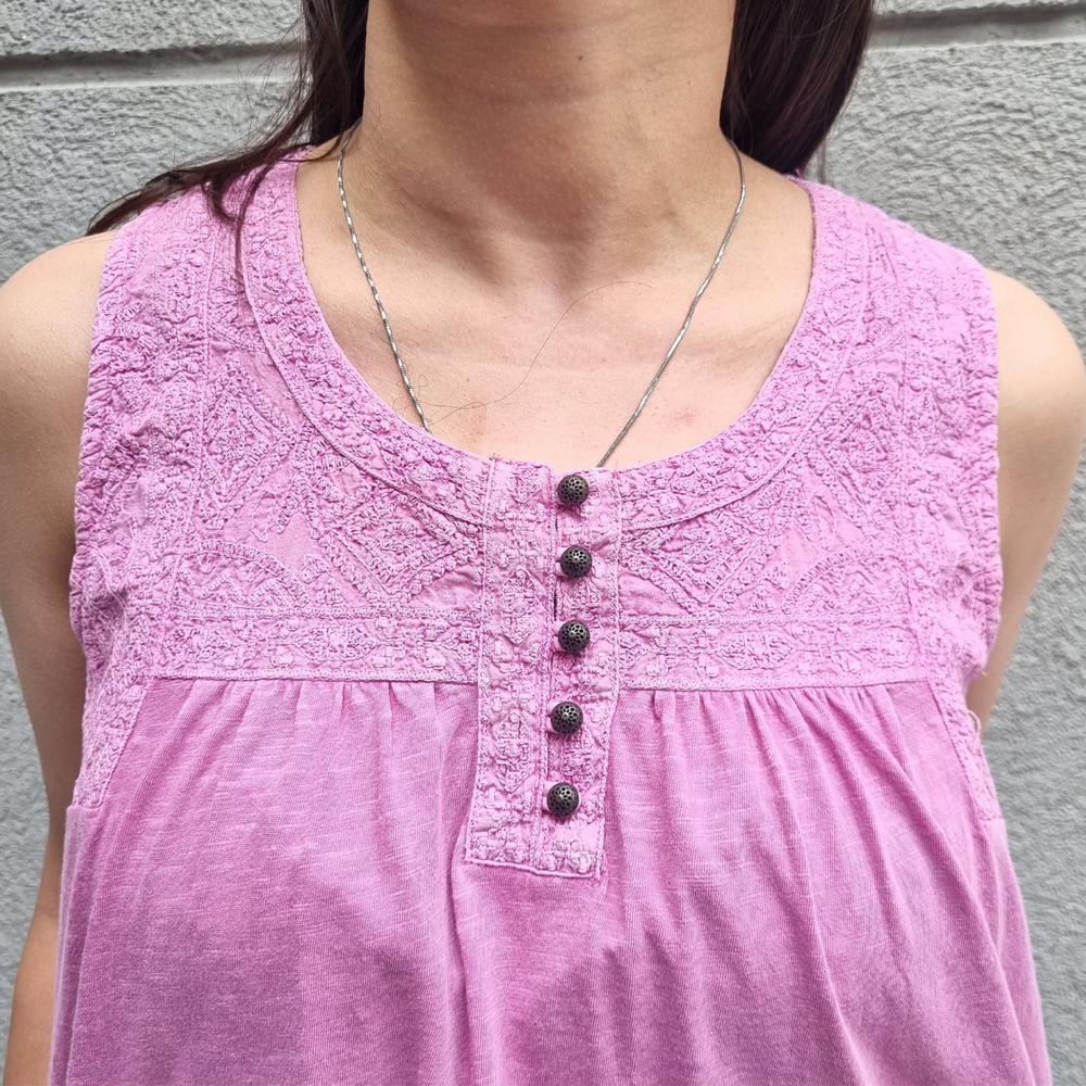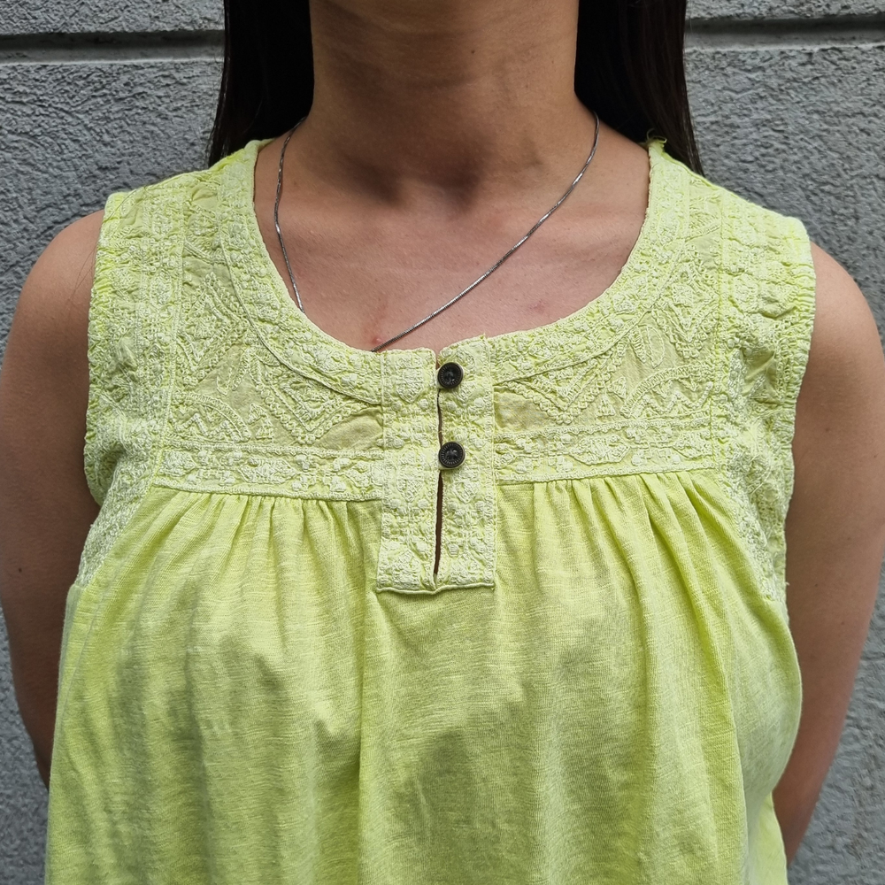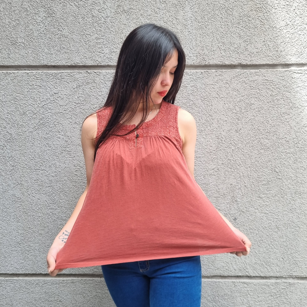 BLUSA MUSCULOSA PECHERA BORDADA AMPLIA MARCA: Lucky Brand ORIGEN: India COMPOSICIÓN: 100% Algodón