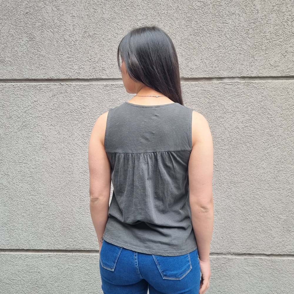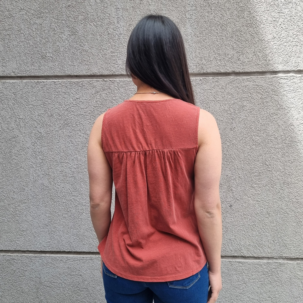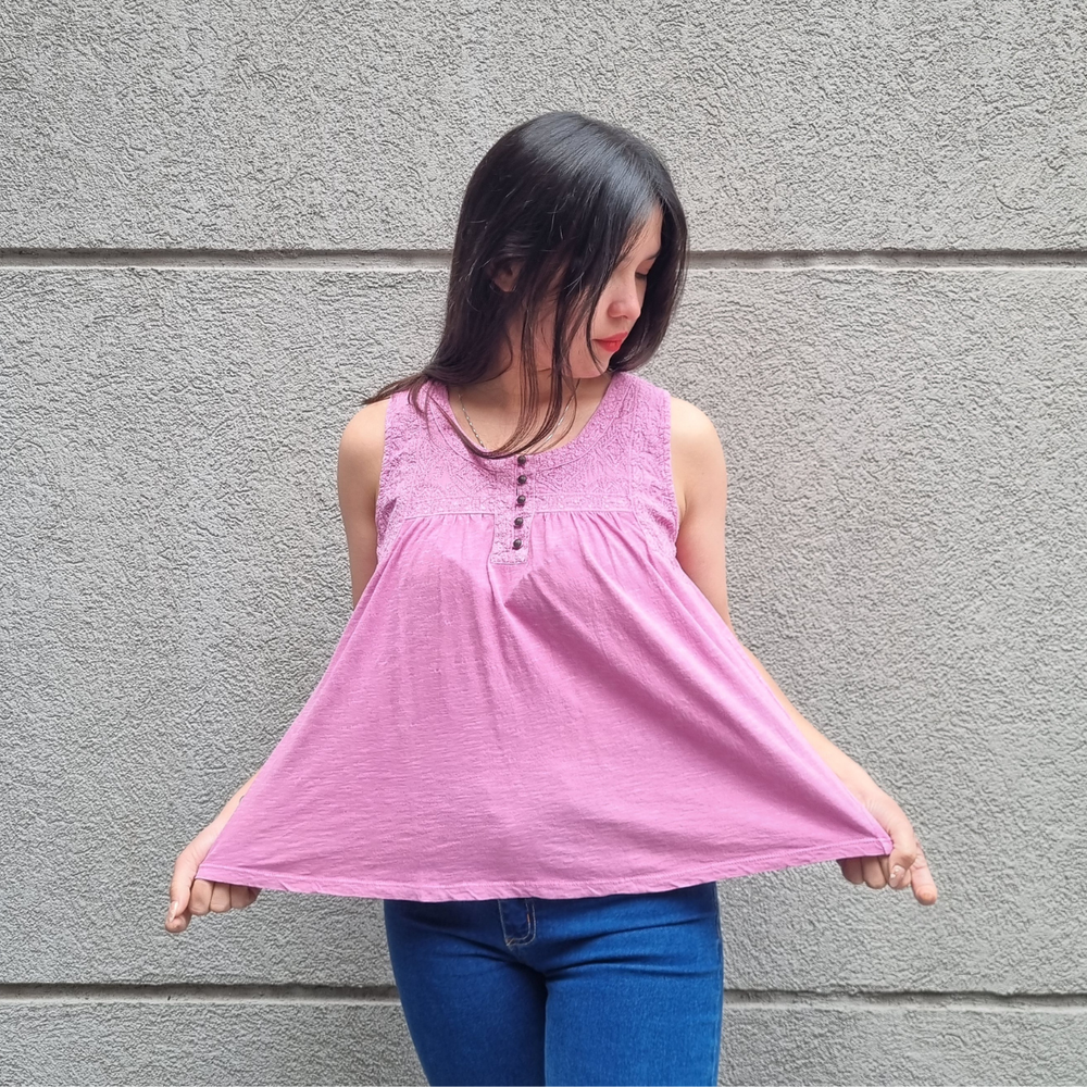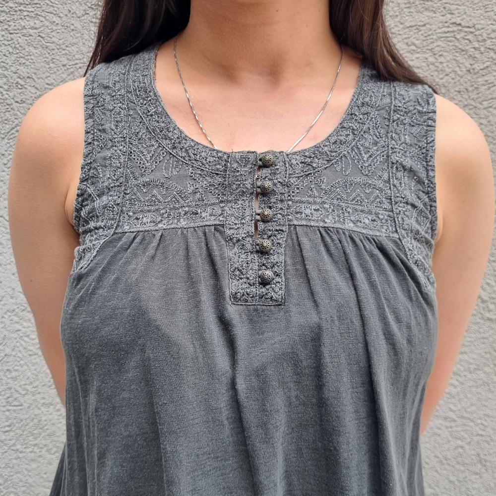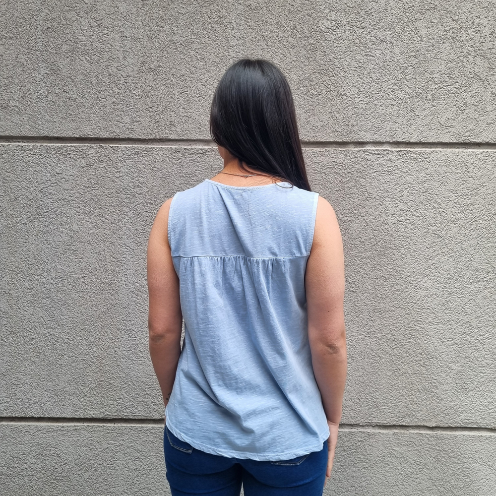 BLUSA MUSCULOSA PECHERA BORDADA AMPLIA MARCA: Lucky Brand ORIGEN: India COMPOSICIÓN: 100% Algodón