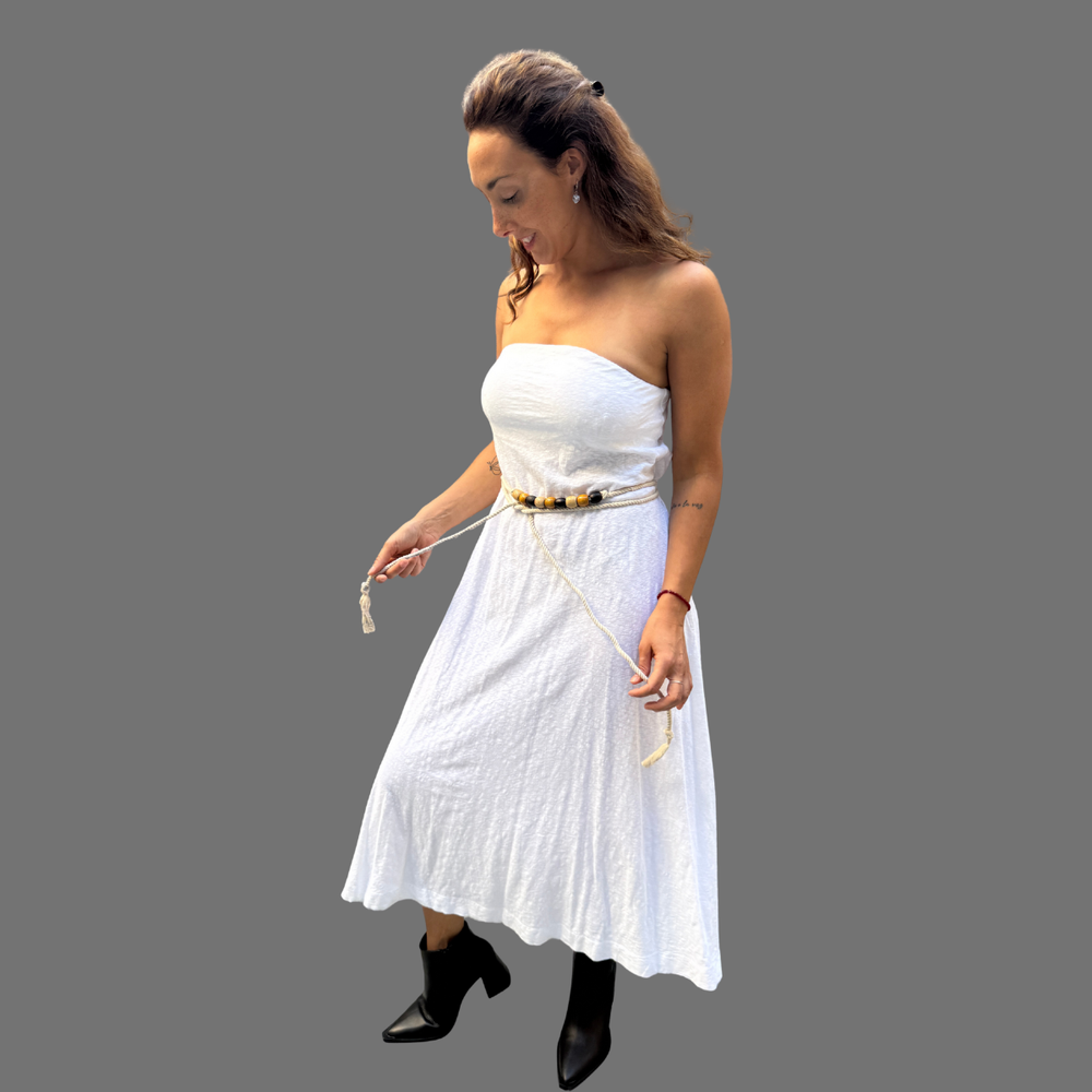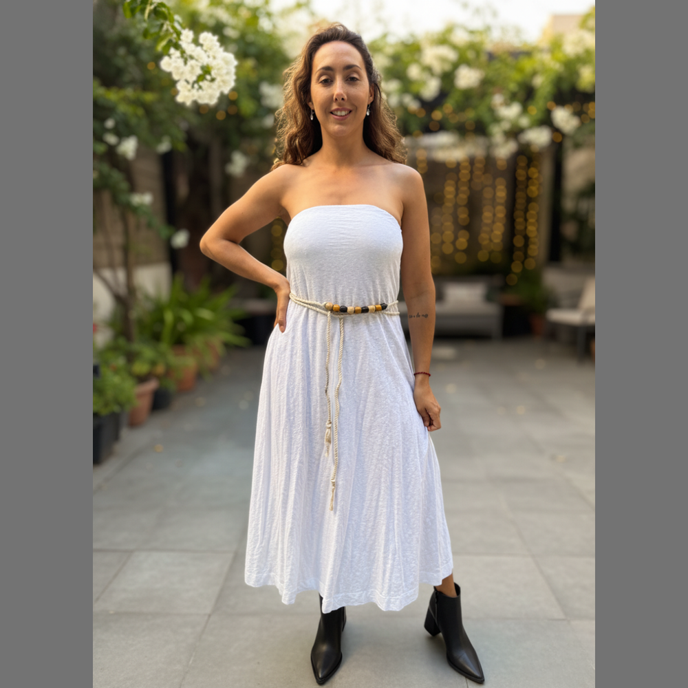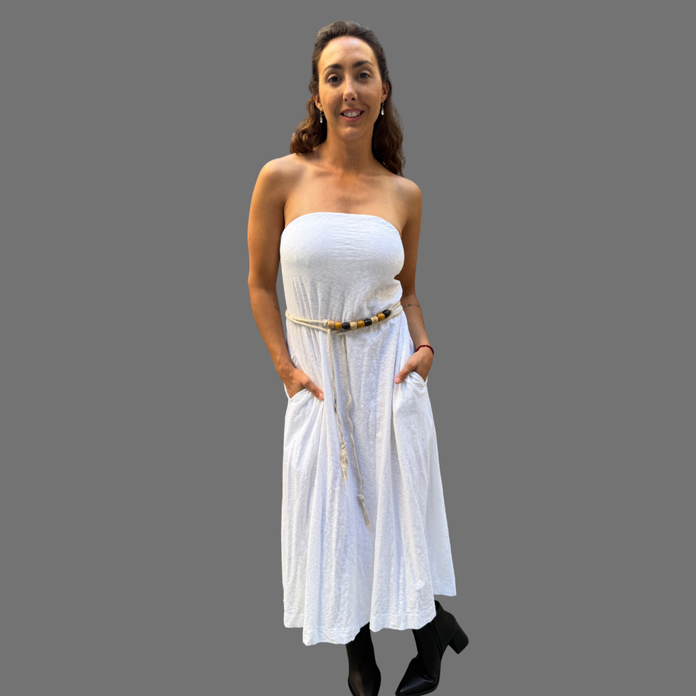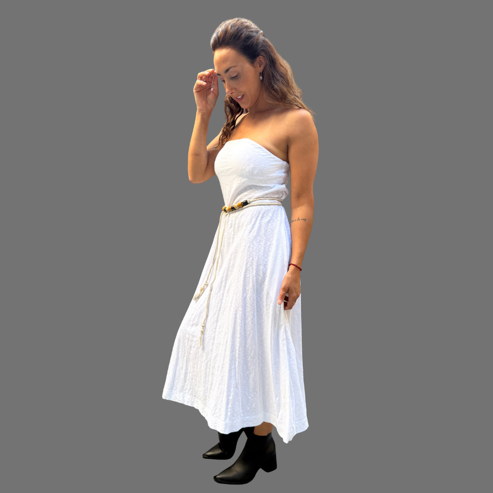 VESTIDO LARGO STRAPLESS CON SILICONA ANTIDESLIZANTE MARCA: Free People ORIGEN: India COMPOSICIÓN: 100% Algodón