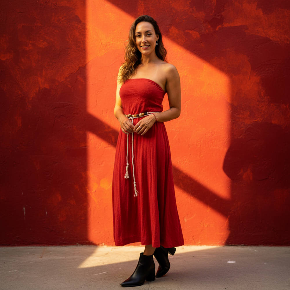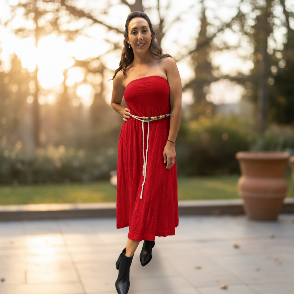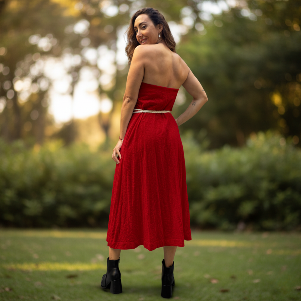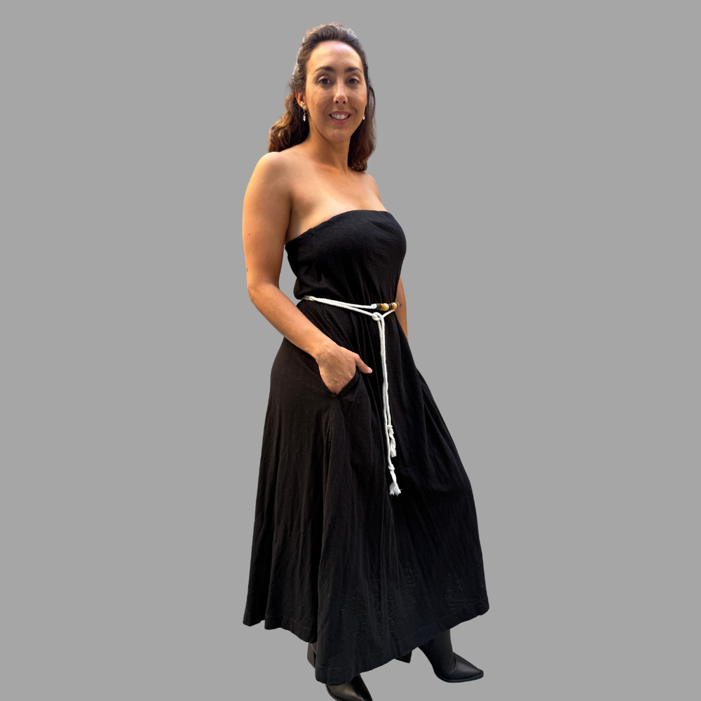 VESTIDO LARGO STRAPLESS CON SILICONA ANTIDESLIZANTE MARCA: Free People ORIGEN: India COMPOSICIÓN: 100% Algodón
