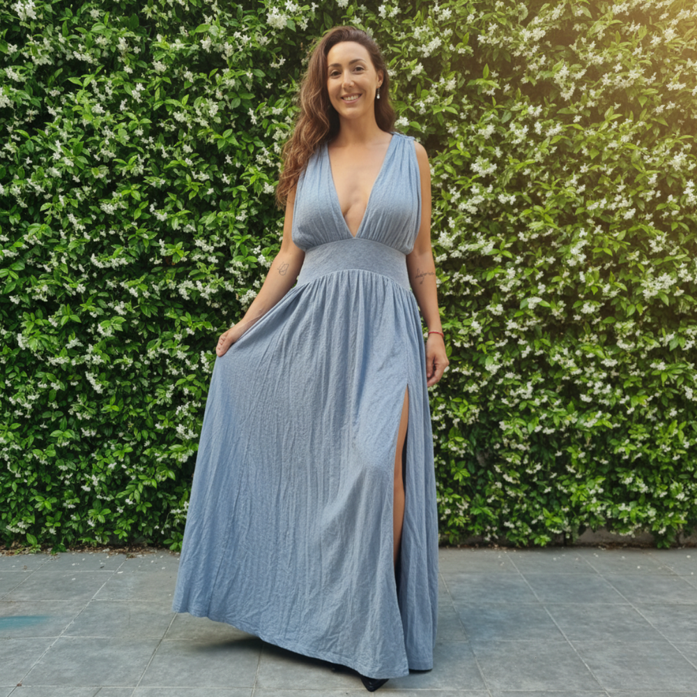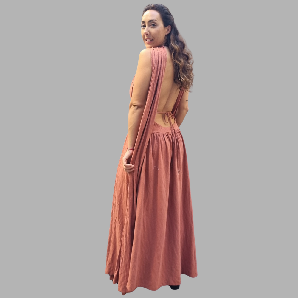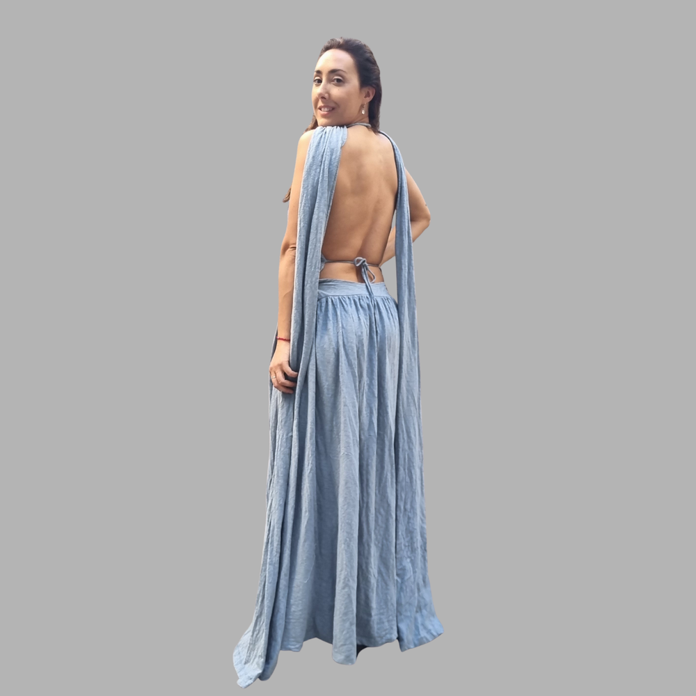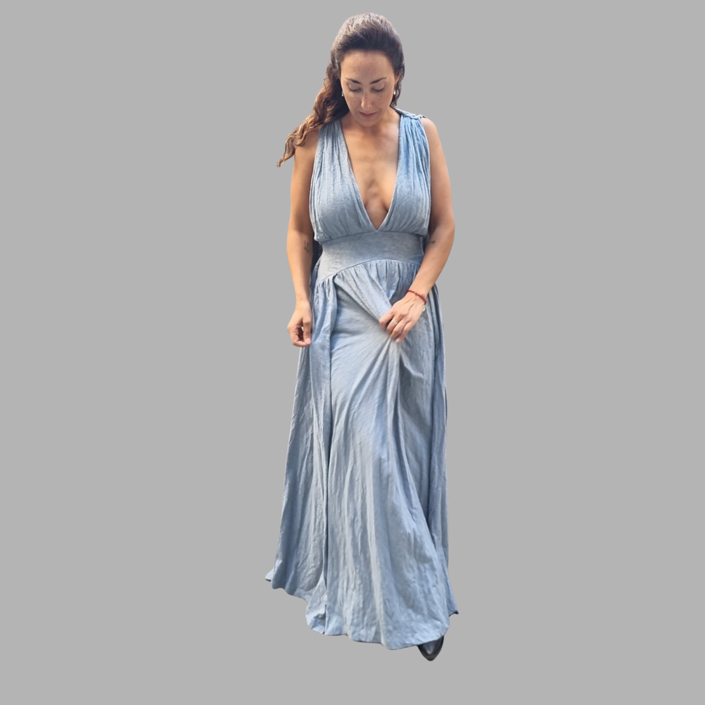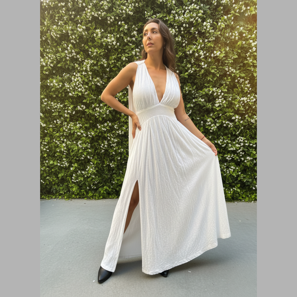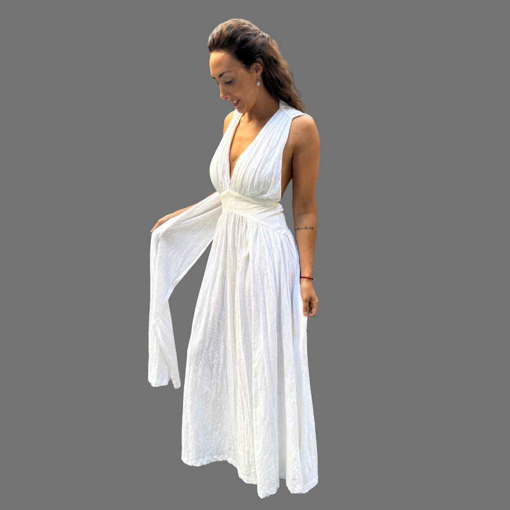 VESTIDO LARGO CON LAZO ESTILO GRIEGO MEDITERRANEO MARCA: Free People ORIGEN: Inida COMPOSICIÓN: 100% Algodón