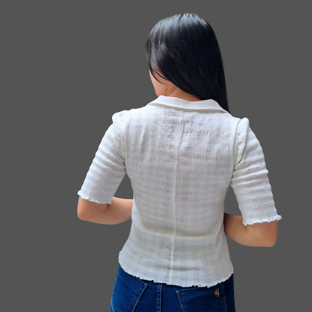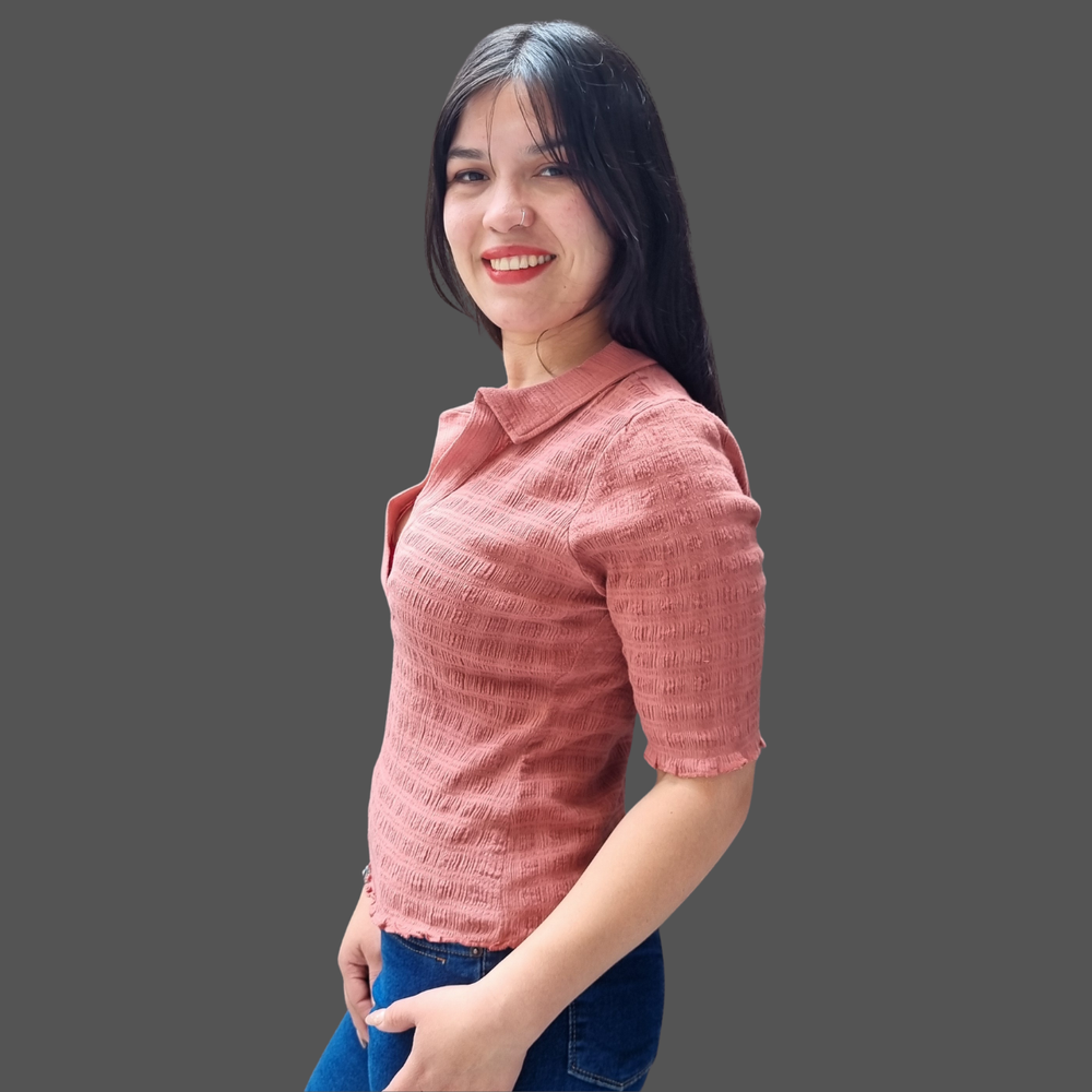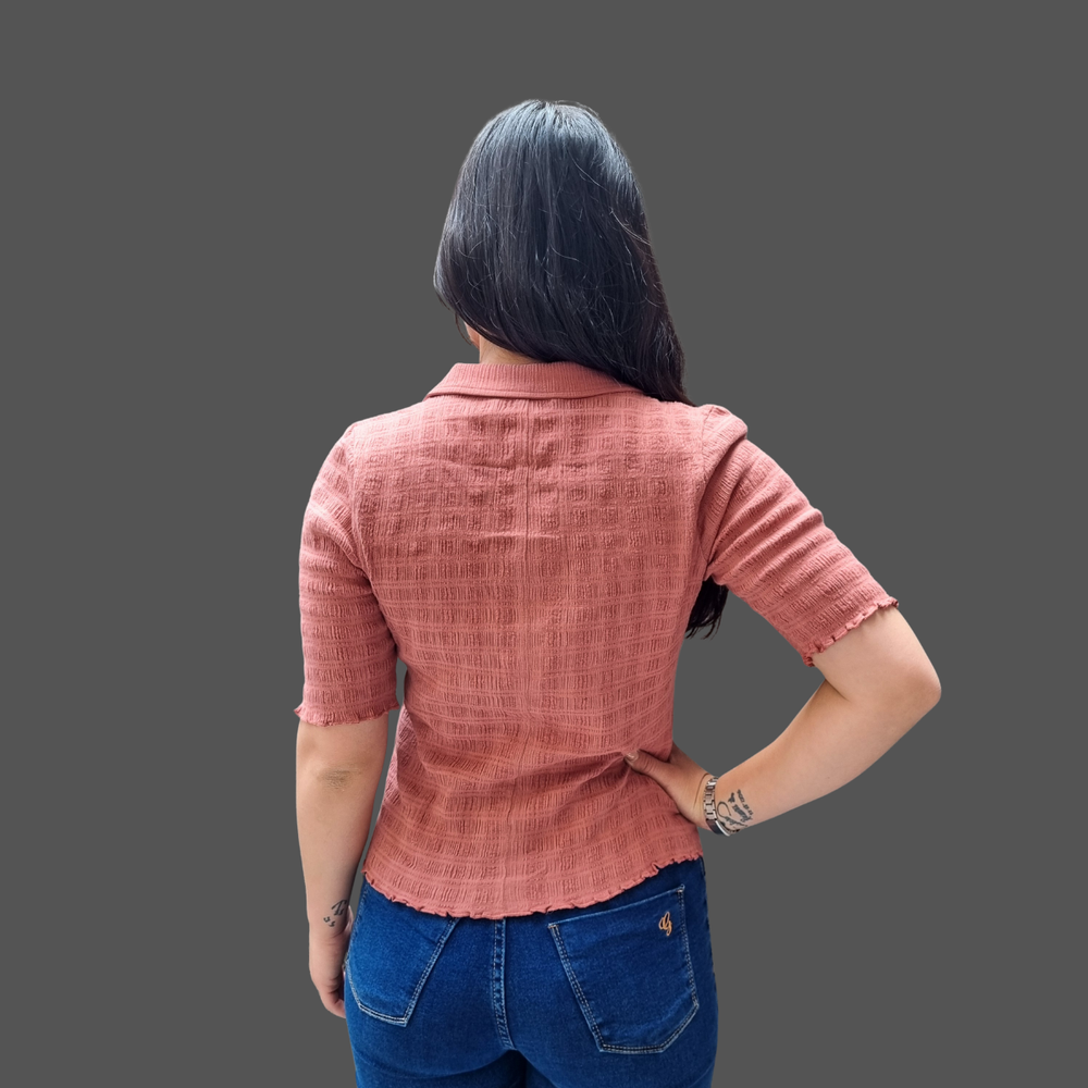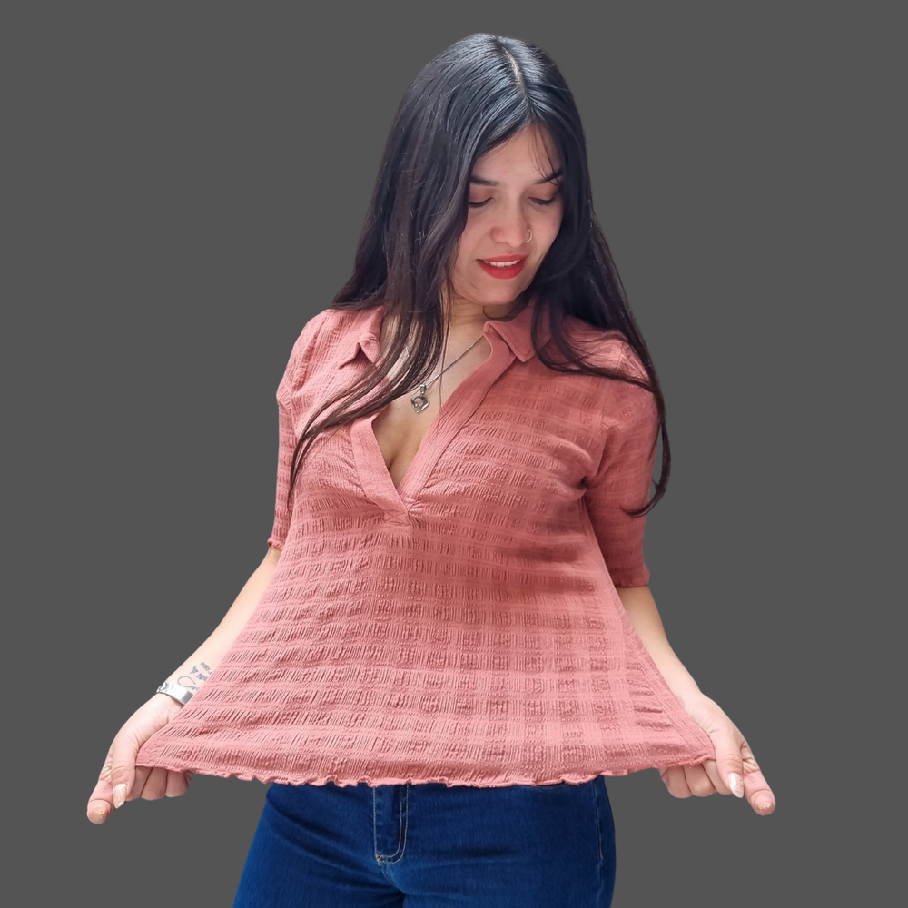 BLUSA M3/4 CUELLO POLO ESCOTE V MARCA: Free People ORIGEN: India COMPOSICIÓN: 90% Algodón - 9% Lino - 1% Elastano