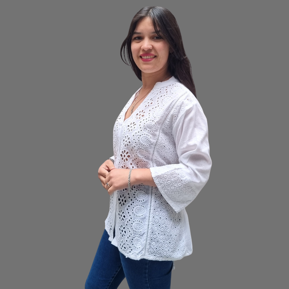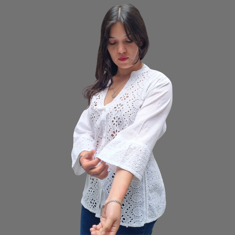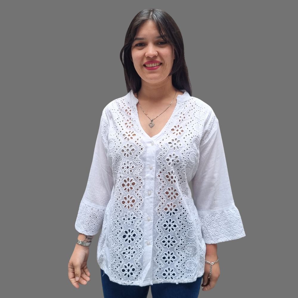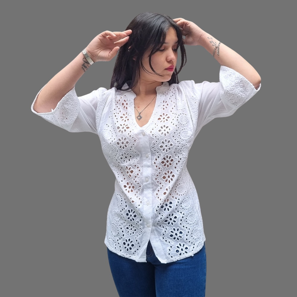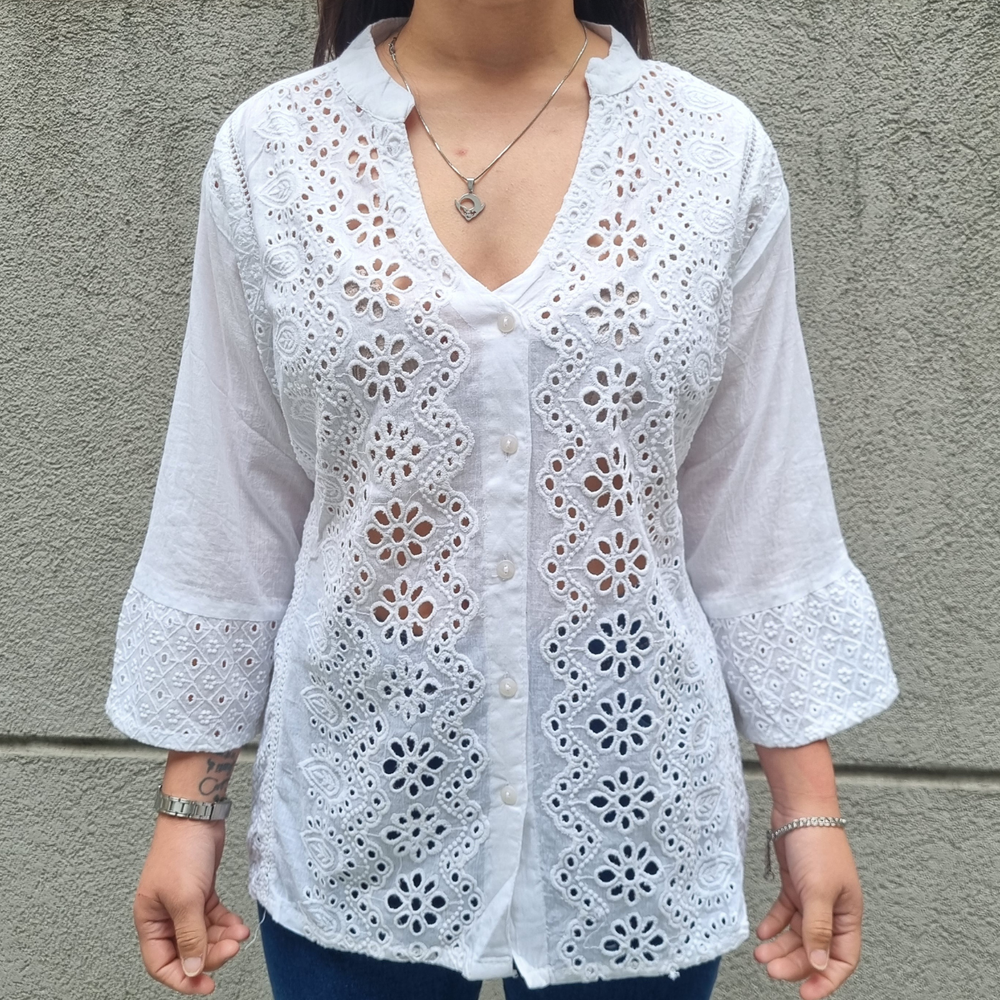 blusa camisa bordado broderie manga 3/4 cuello V. MARCA: ANAANDI ORIGEN: India COMPOSICIÓN: Algodón 100%