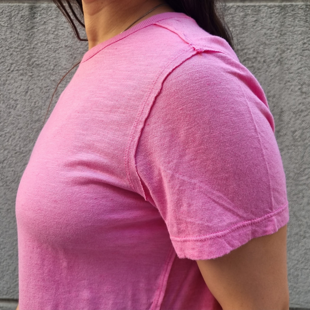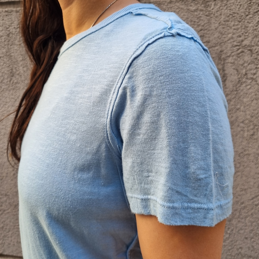 REMERA MANGA CORTA CUELLO REDONDO COSTURA INVERSA TALLE ÚNICO. MARCA: Free People ORIGEN: India COMPOSICIÓN: Algodón 100%