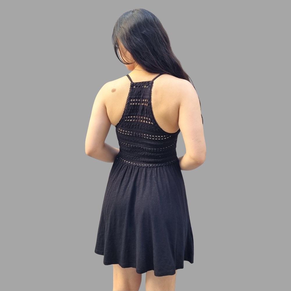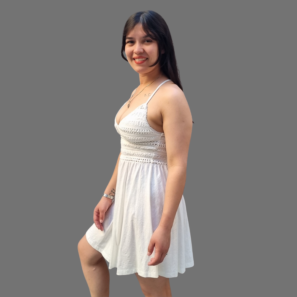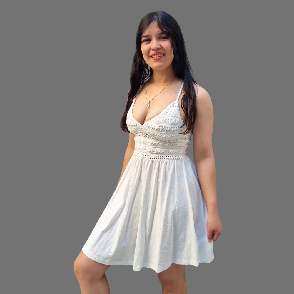 VESTIDO CORTO CON TIRITAS PECHERA ENCAJE ELASTIZADO MARCA: Super Dry ORIGEN: India COMPOSICIÓN: Algodón 84% - Encaje 10% - Poliéster 6%