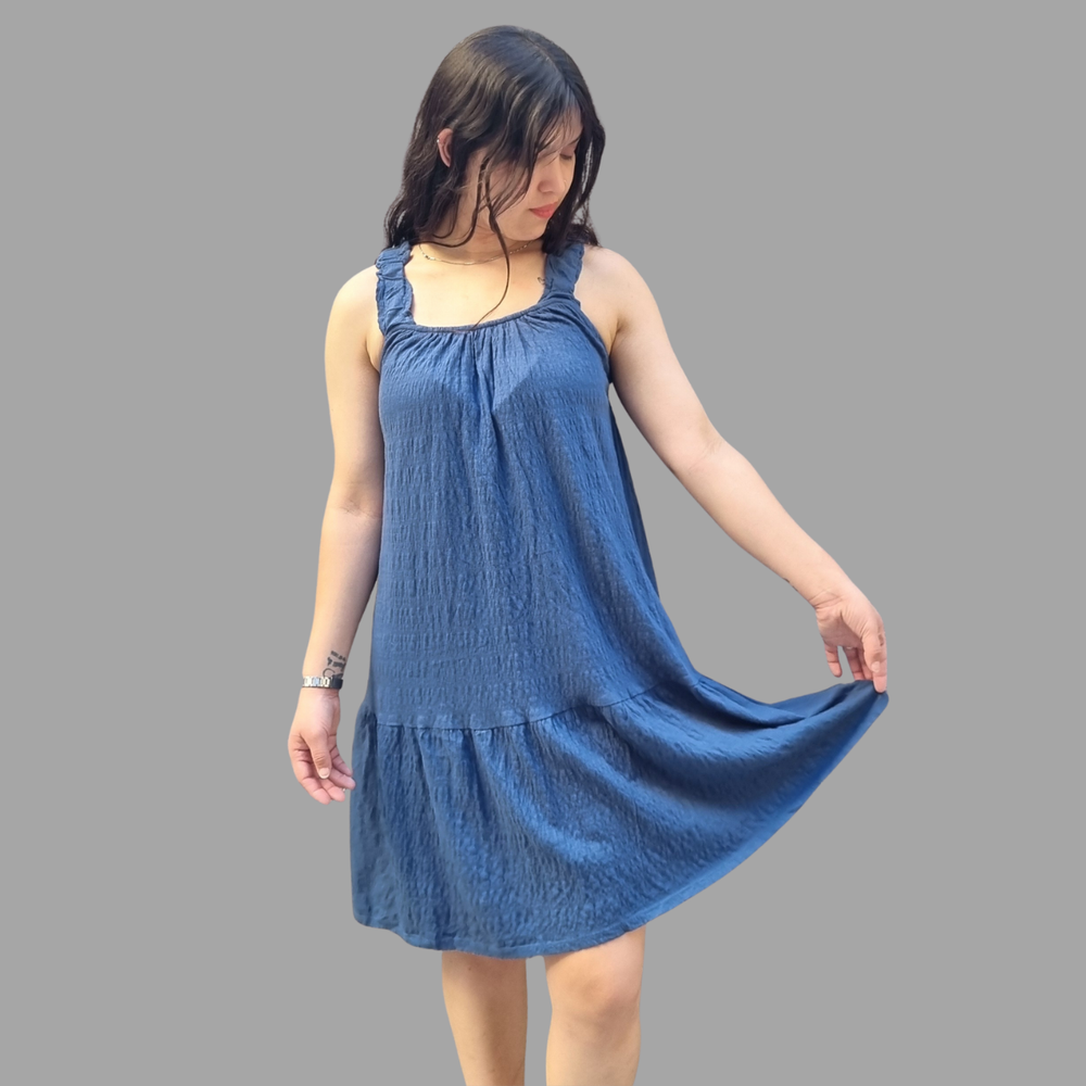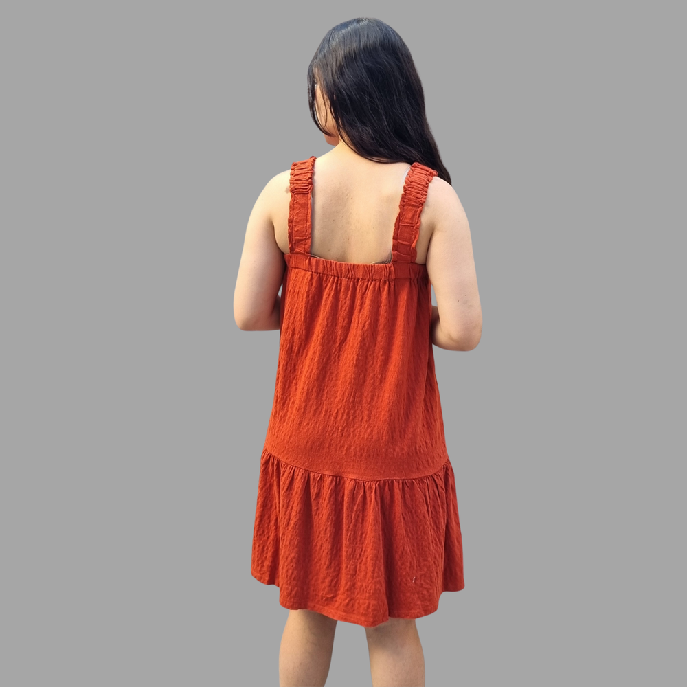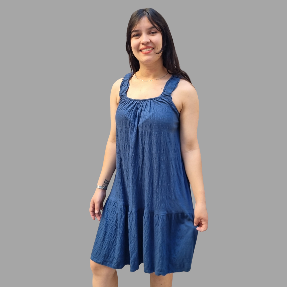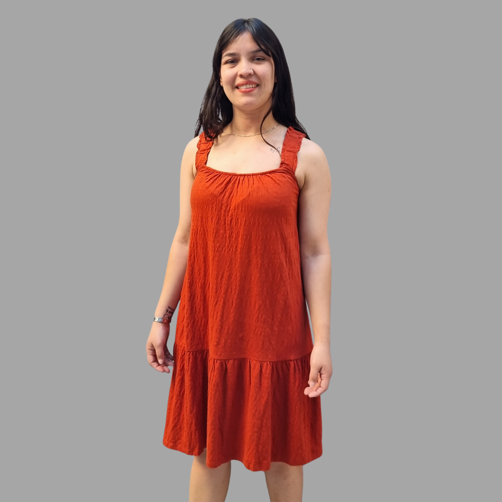 VESTIDO CORTO SUAVE AMPLIO CON TIRANTES ELASTIZADOS TERMINACIÓN VOLADOS MARCA: Style&CO ORIGEN: India COMPOSICIÓN: Algodón 97% - Spandex 3%