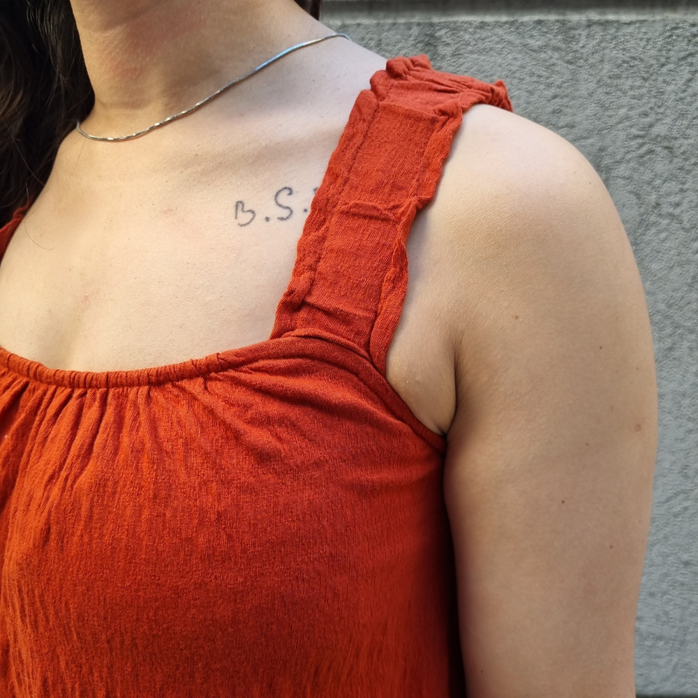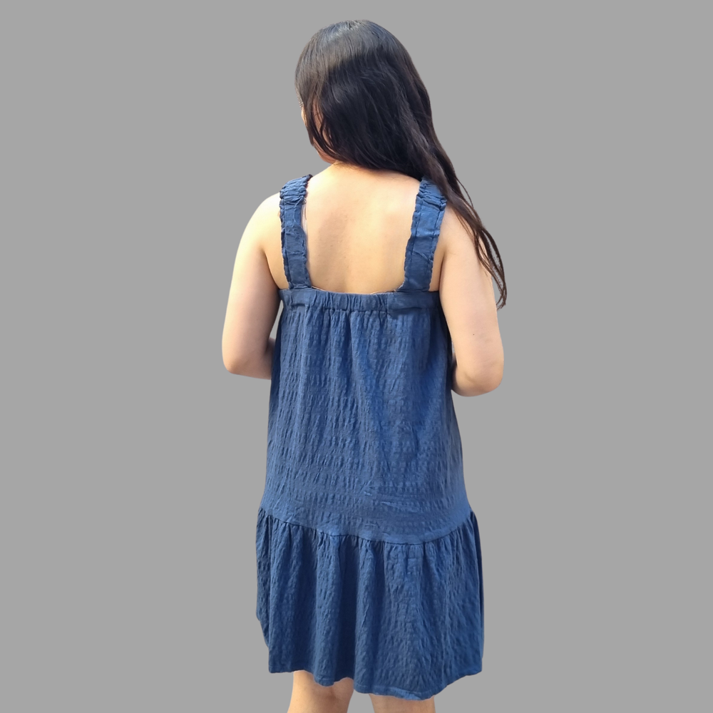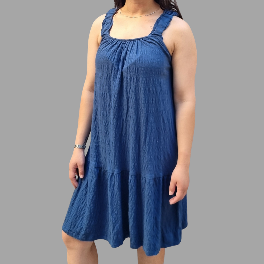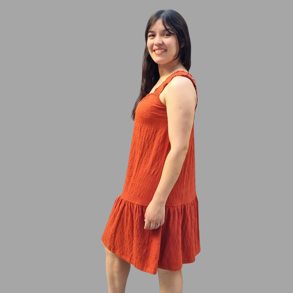VESTIDO CORTO SUAVE AMPLIO CON TIRANTES ELASTIZADOS TERMINACIÓN VOLADOS MARCA: Style&CO ORIGEN: India COMPOSICIÓN: Algodón 97% - Spandex 3%