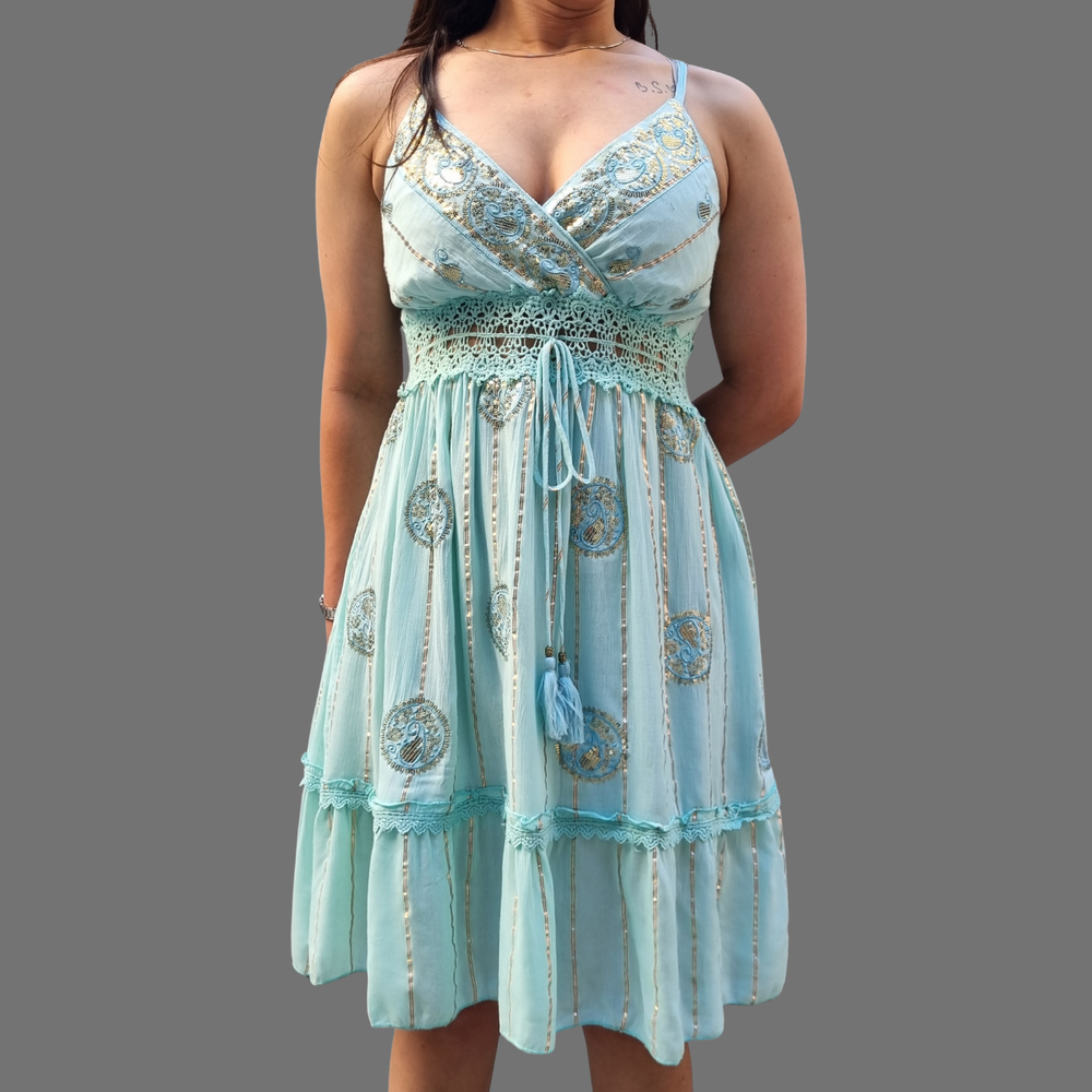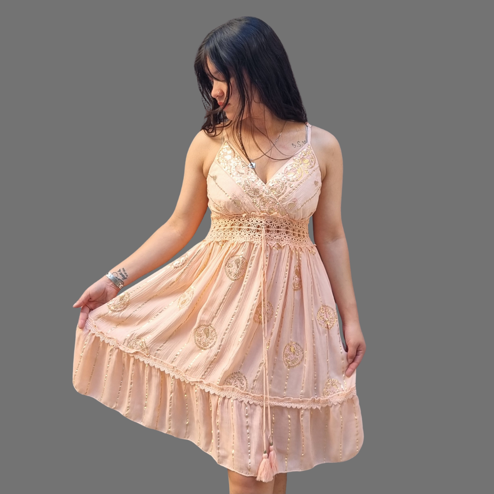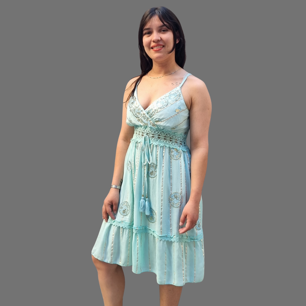 VESTIDO PALAK CORTO BORDADO LENTEJUELAS LUREX BRETEL