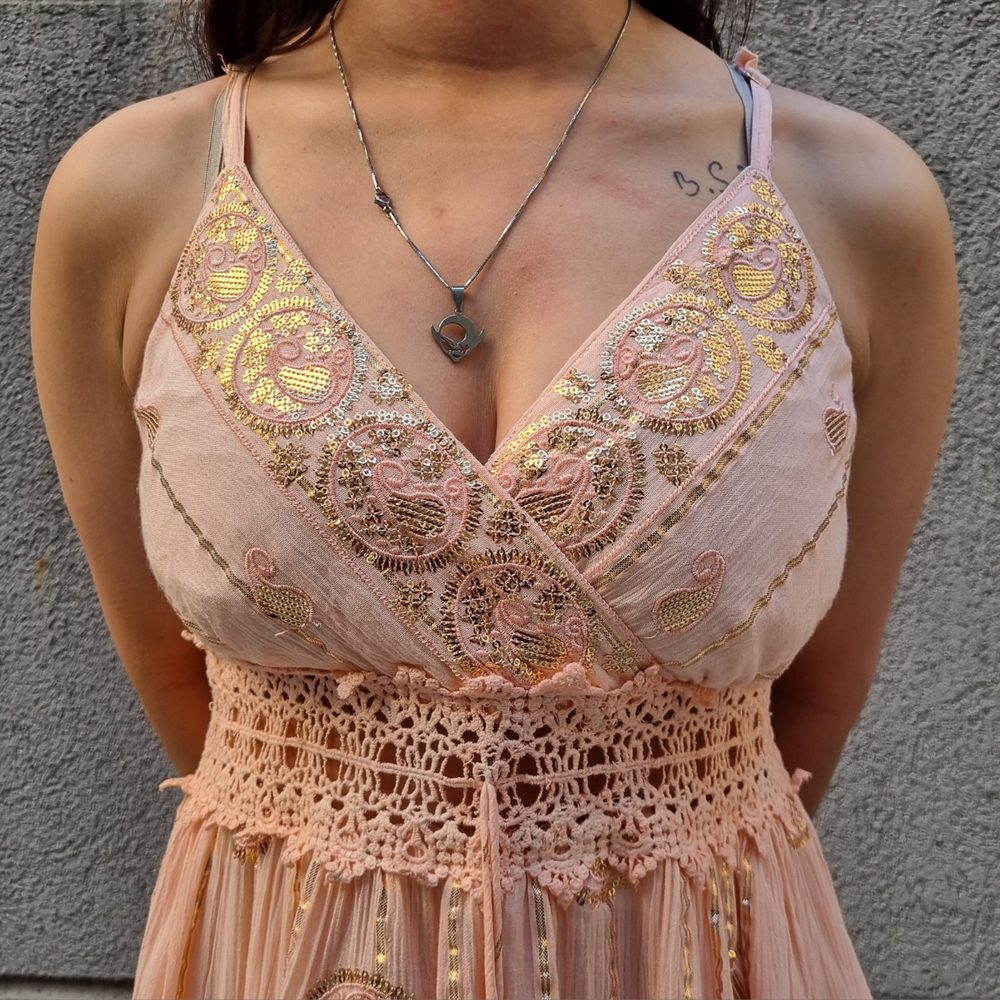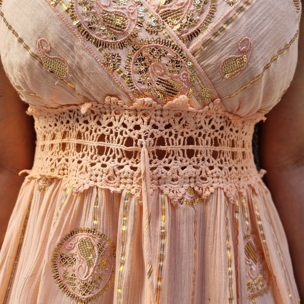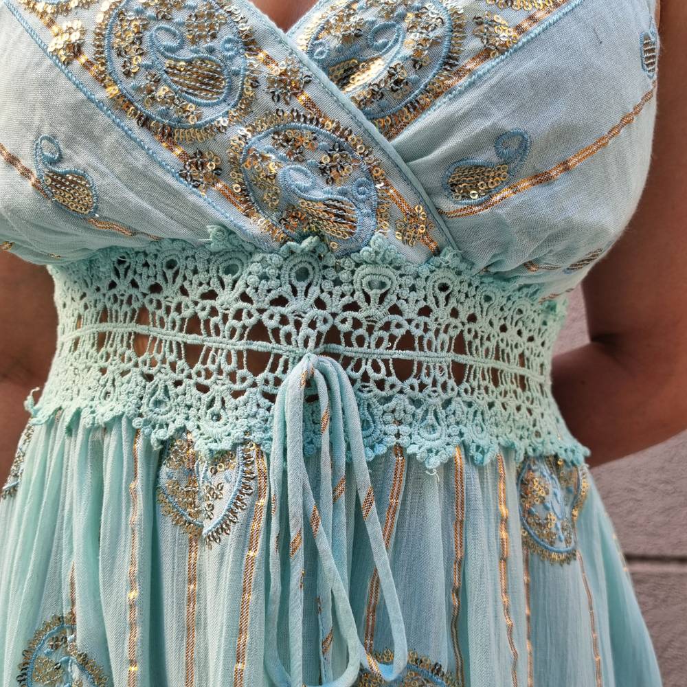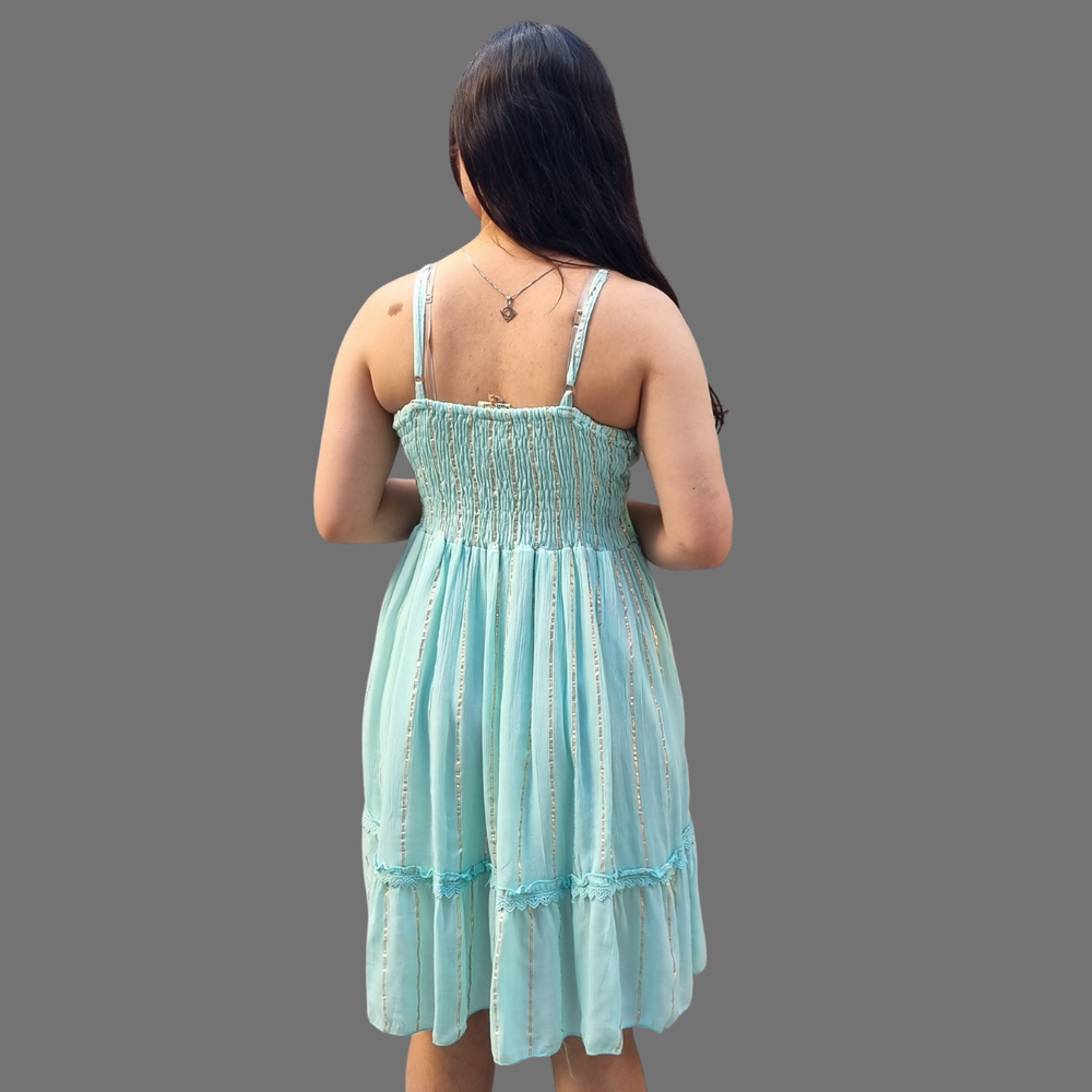 VESTIDO PALAK CORTO BORDADO LENTEJUELAS LUREX BRETEL