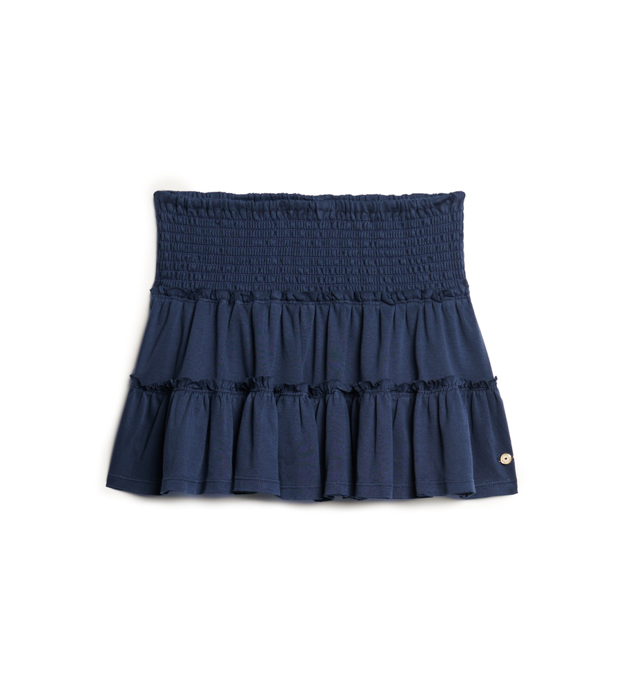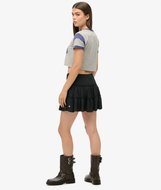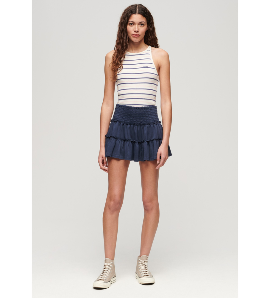 POLLERA MINI FALDA ESCALONADA, CINTURA ELASTIZADA MARCA: Super Dry ORIGEN: India COMPOSICIÓN: Algodón 100%