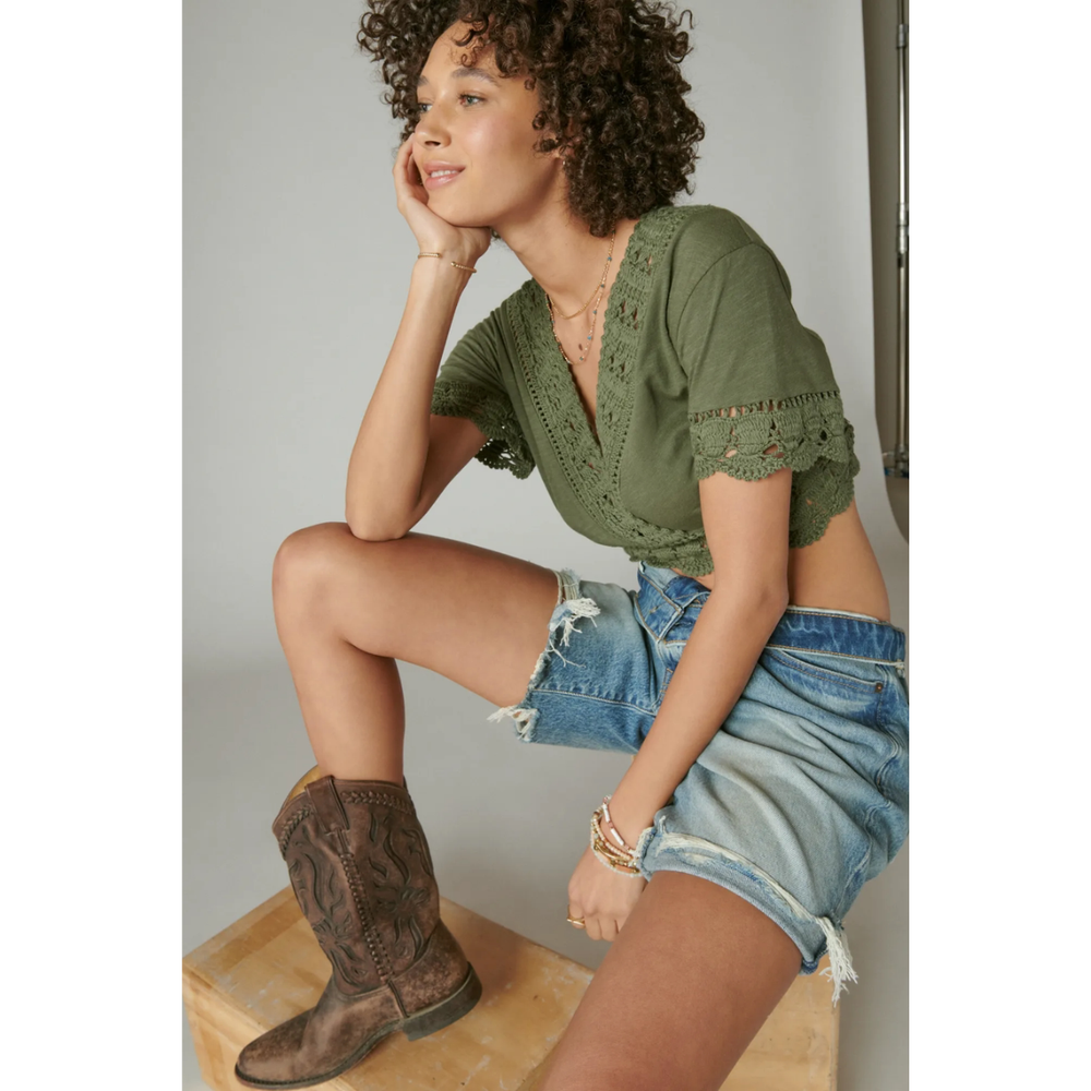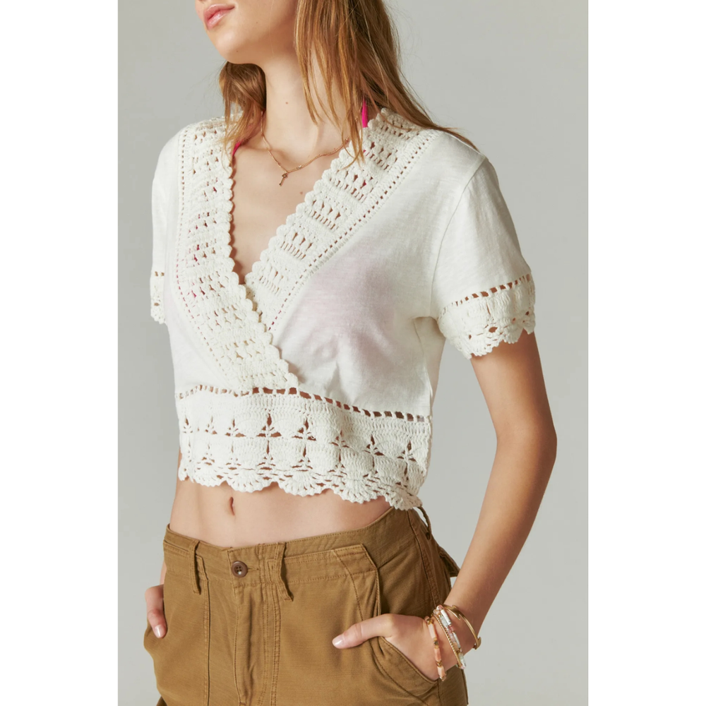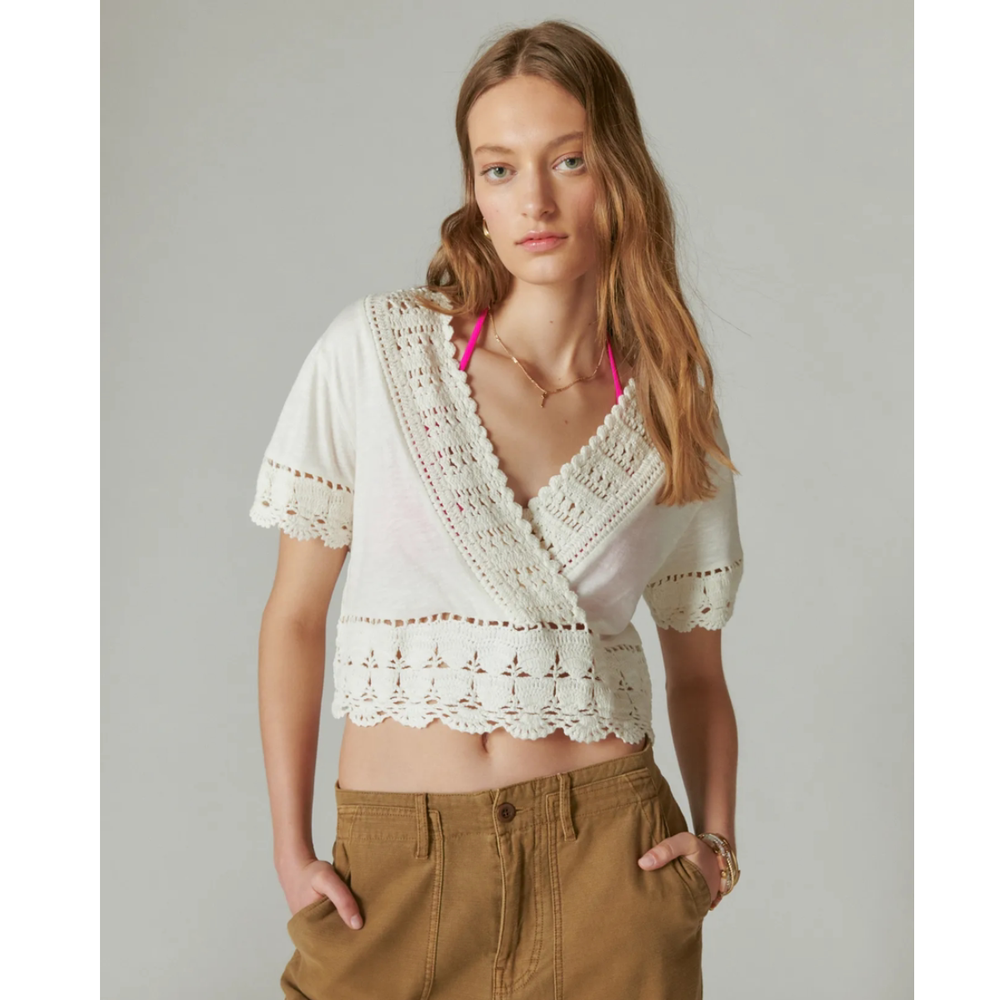 Blusa manga corta escote cruzado detalle crochet MARCA: Lucky Brand Origen: India COMPOSICIÓN: Algodón 100%