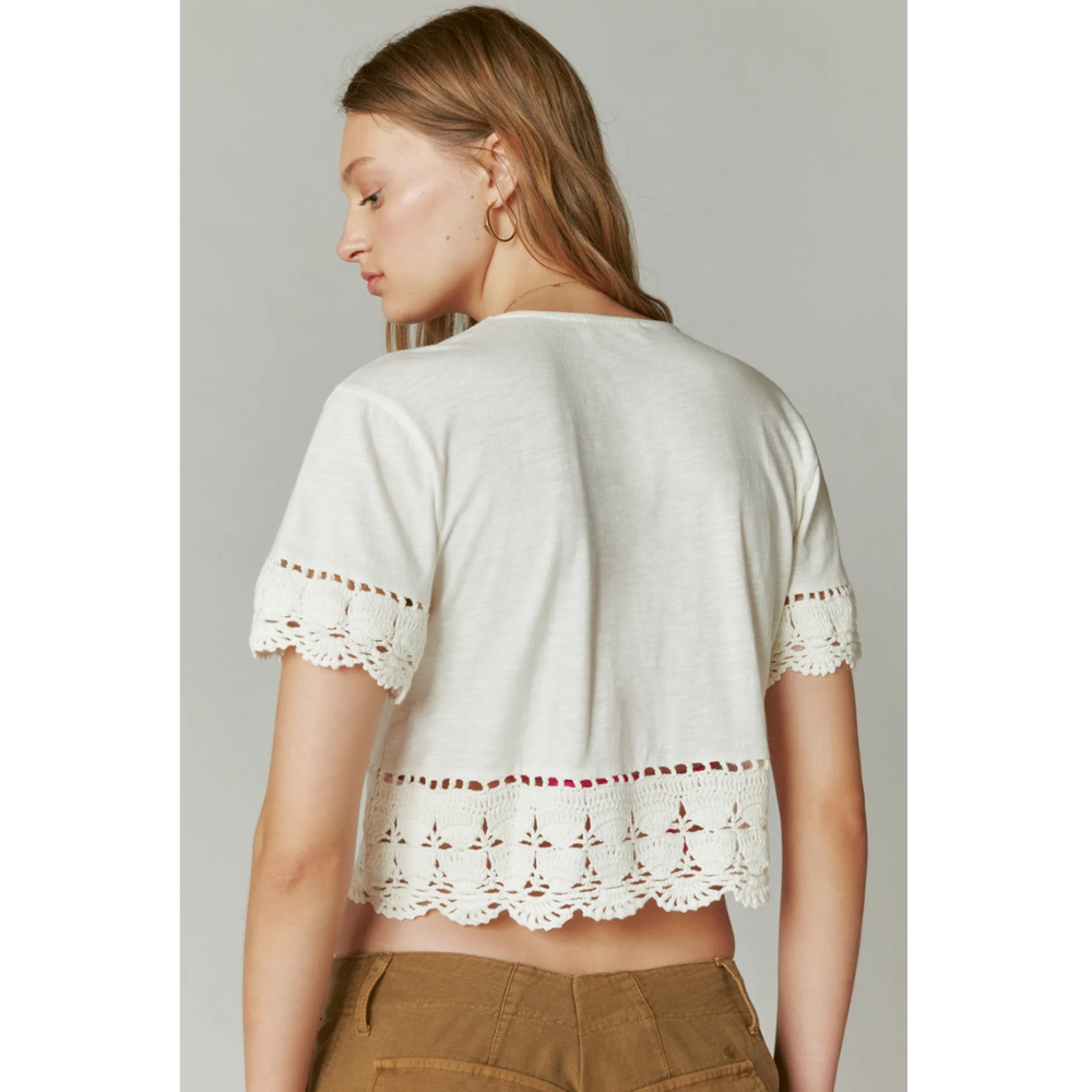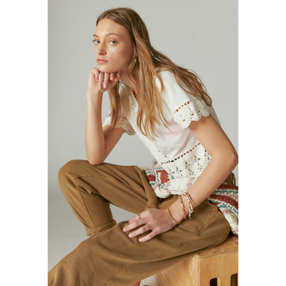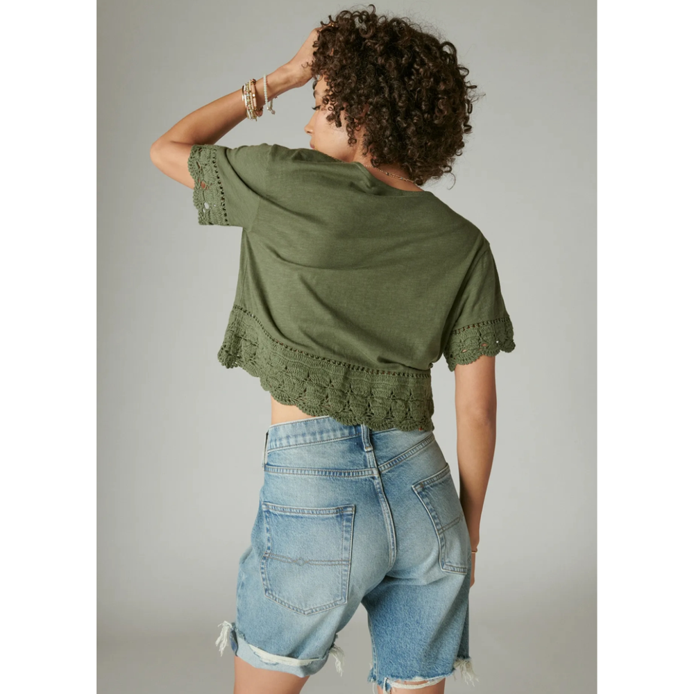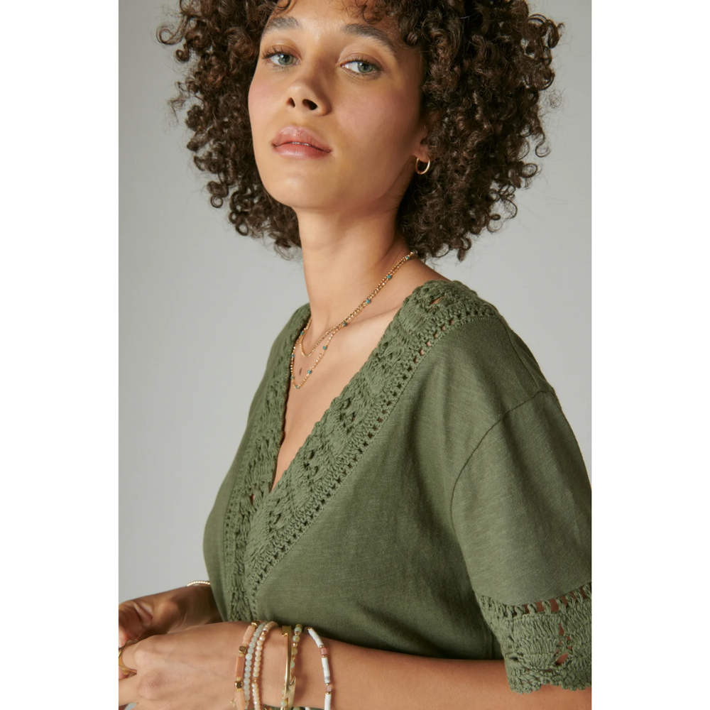 Blusa manga corta escote cruzado detalle crochet MARCA: Lucky Brand Origen: India COMPOSICIÓN: Algodón 100%