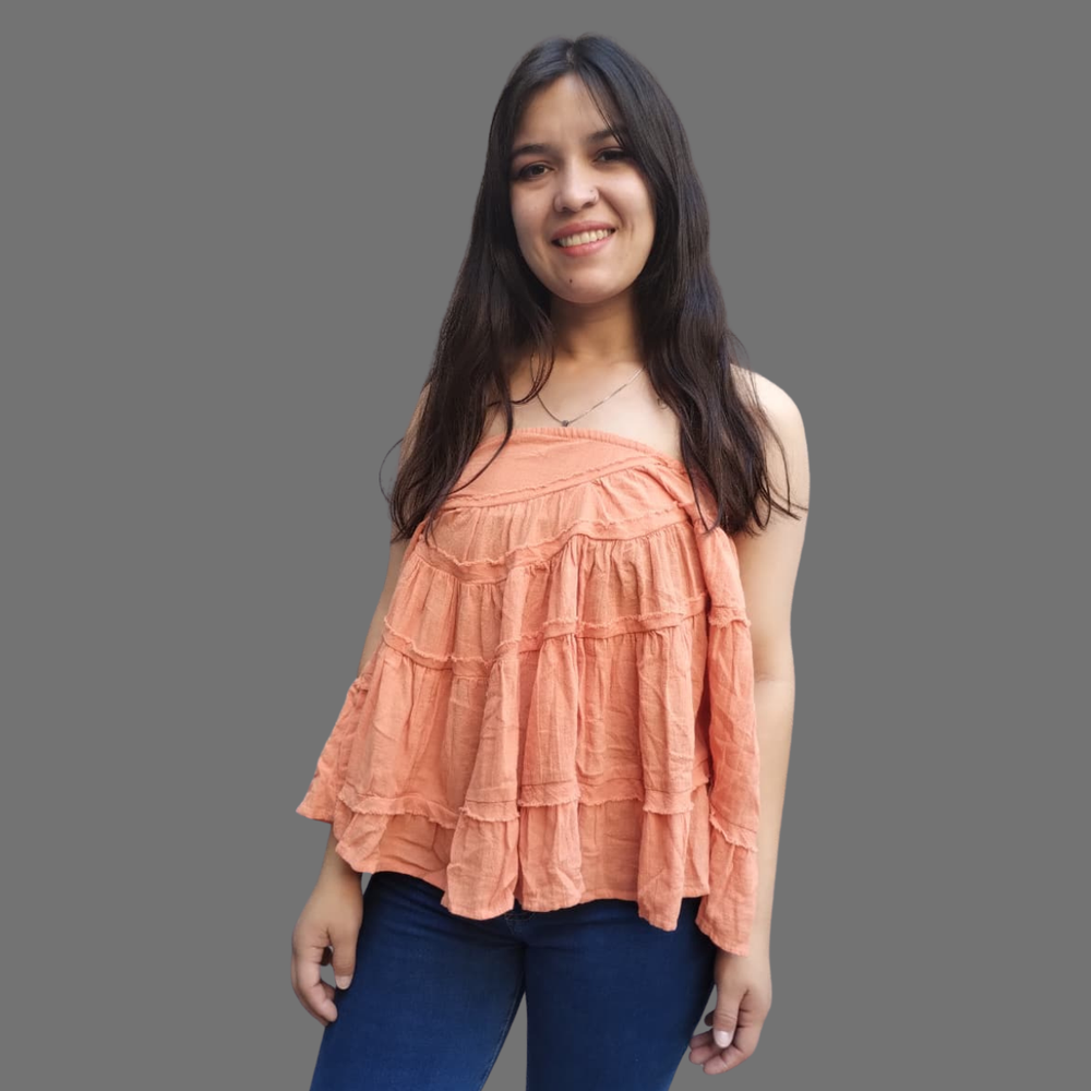 CONVERTIBLE TOP/POLLERA CORTO VOLADOS MARCA: Free People ORIGEN: India COMPOSICIÓN: Algodón 100%