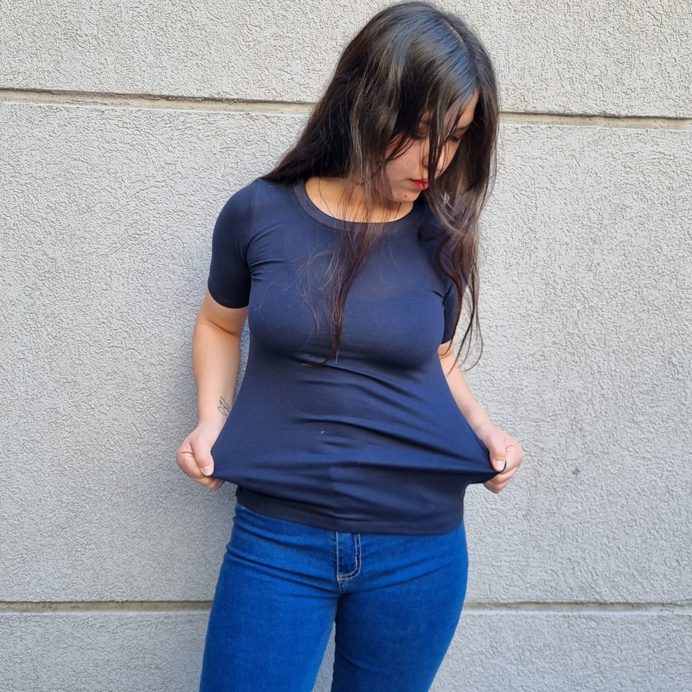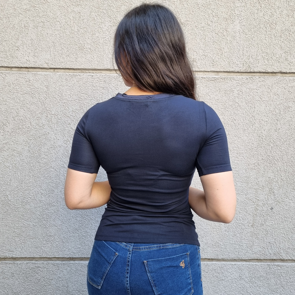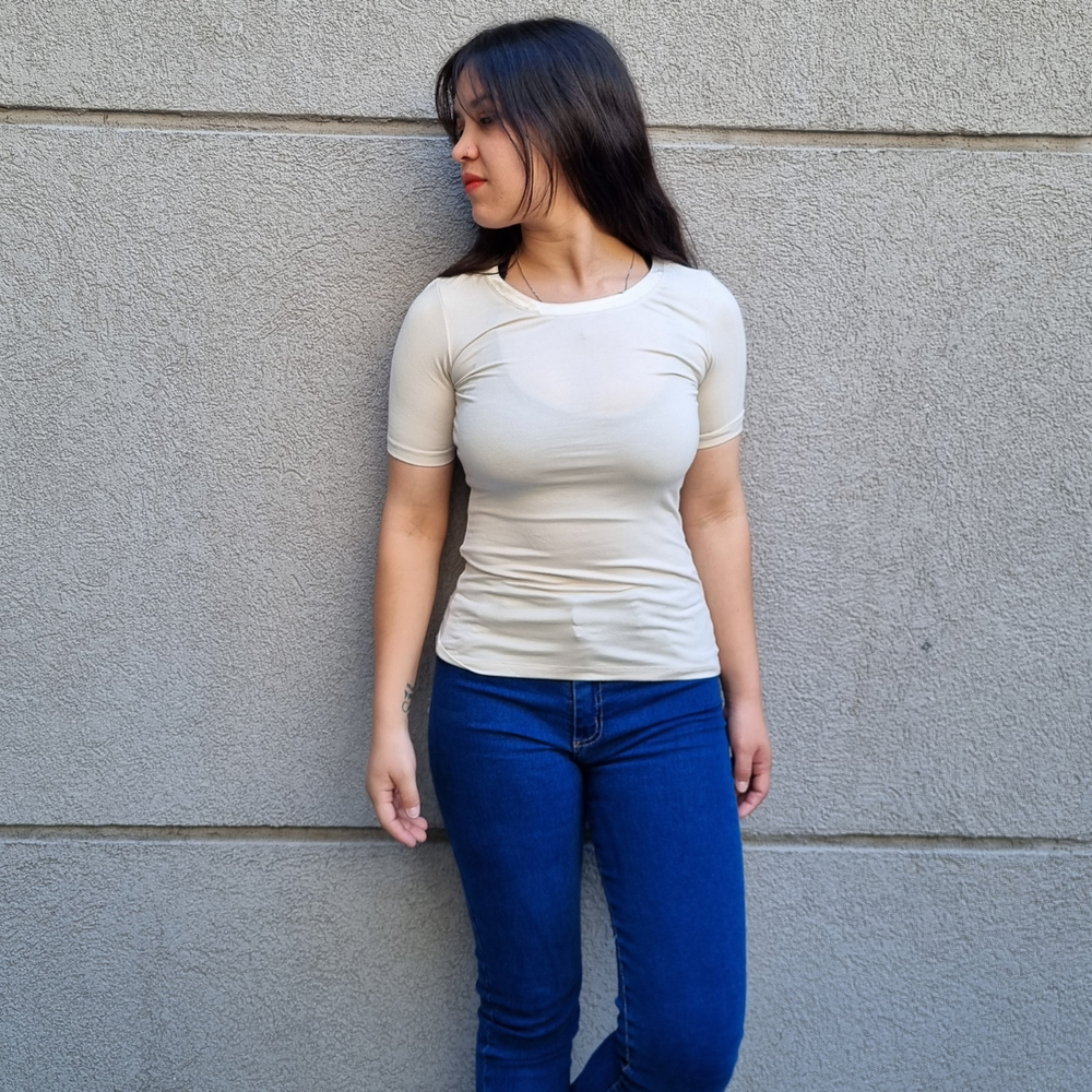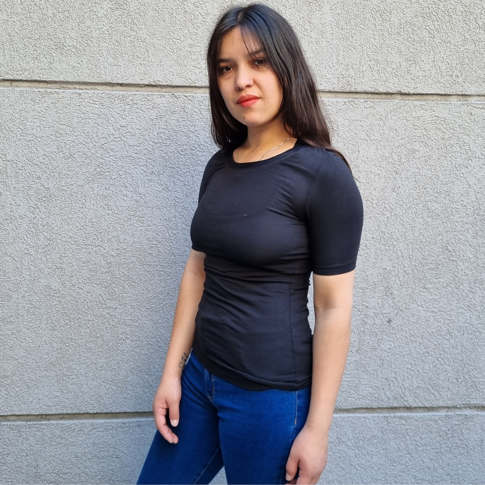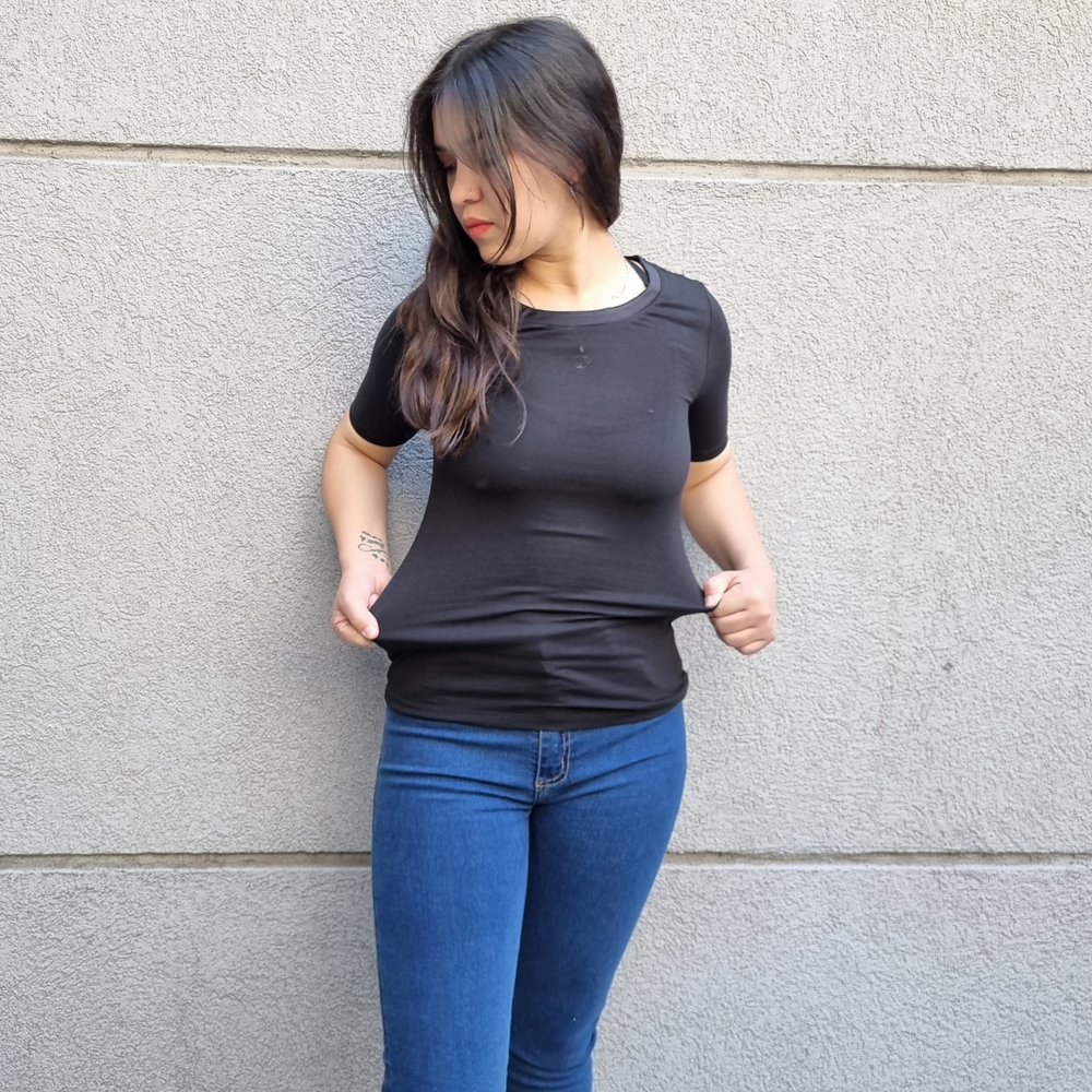 REMERA MANGA CORTA FIT ELASTIZADA ORIGEN: India COMPOSICIÓN: RAYON 96% - ELASTANO 4%