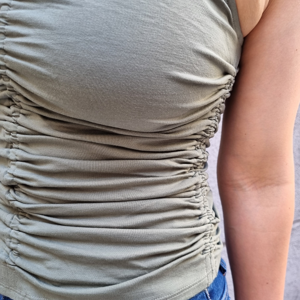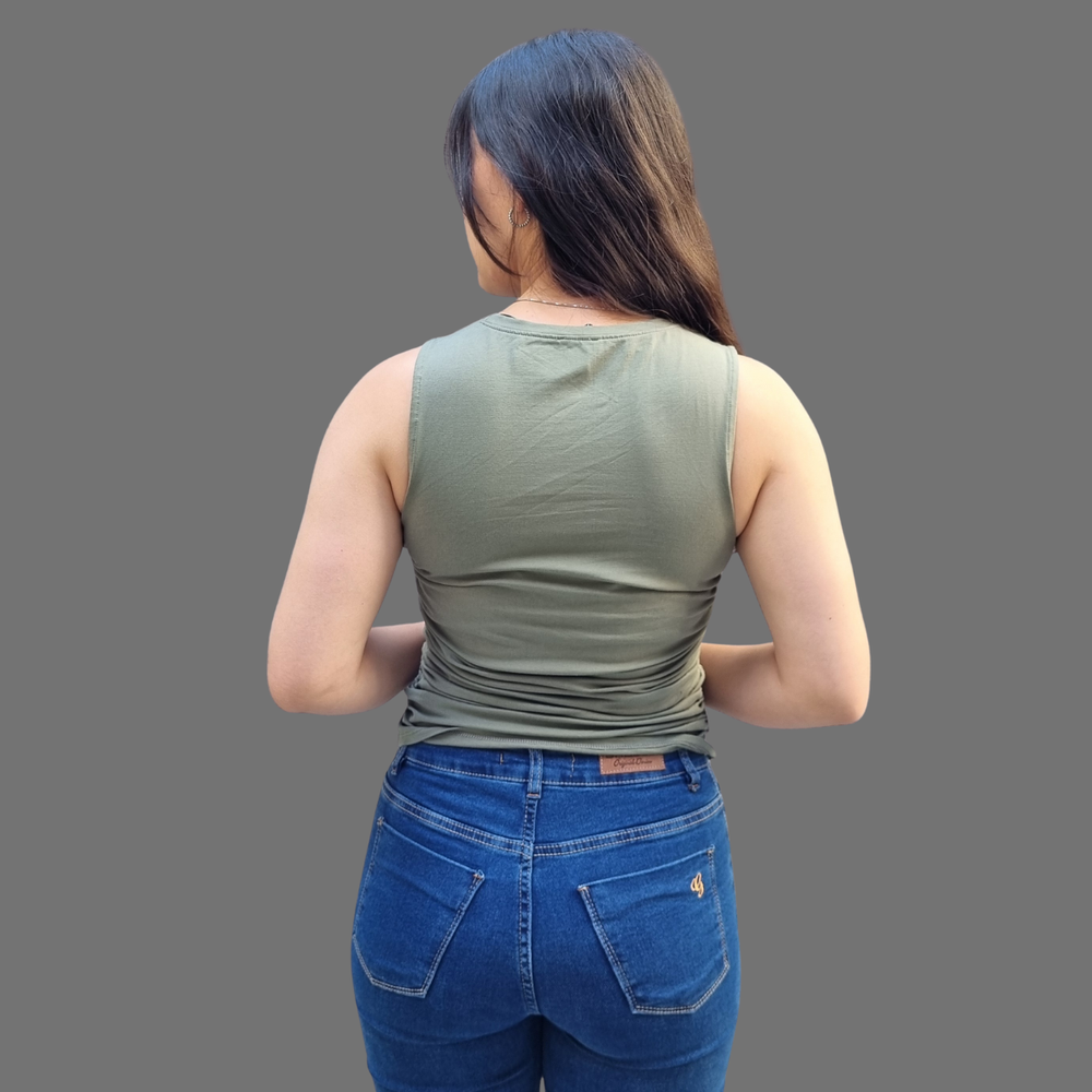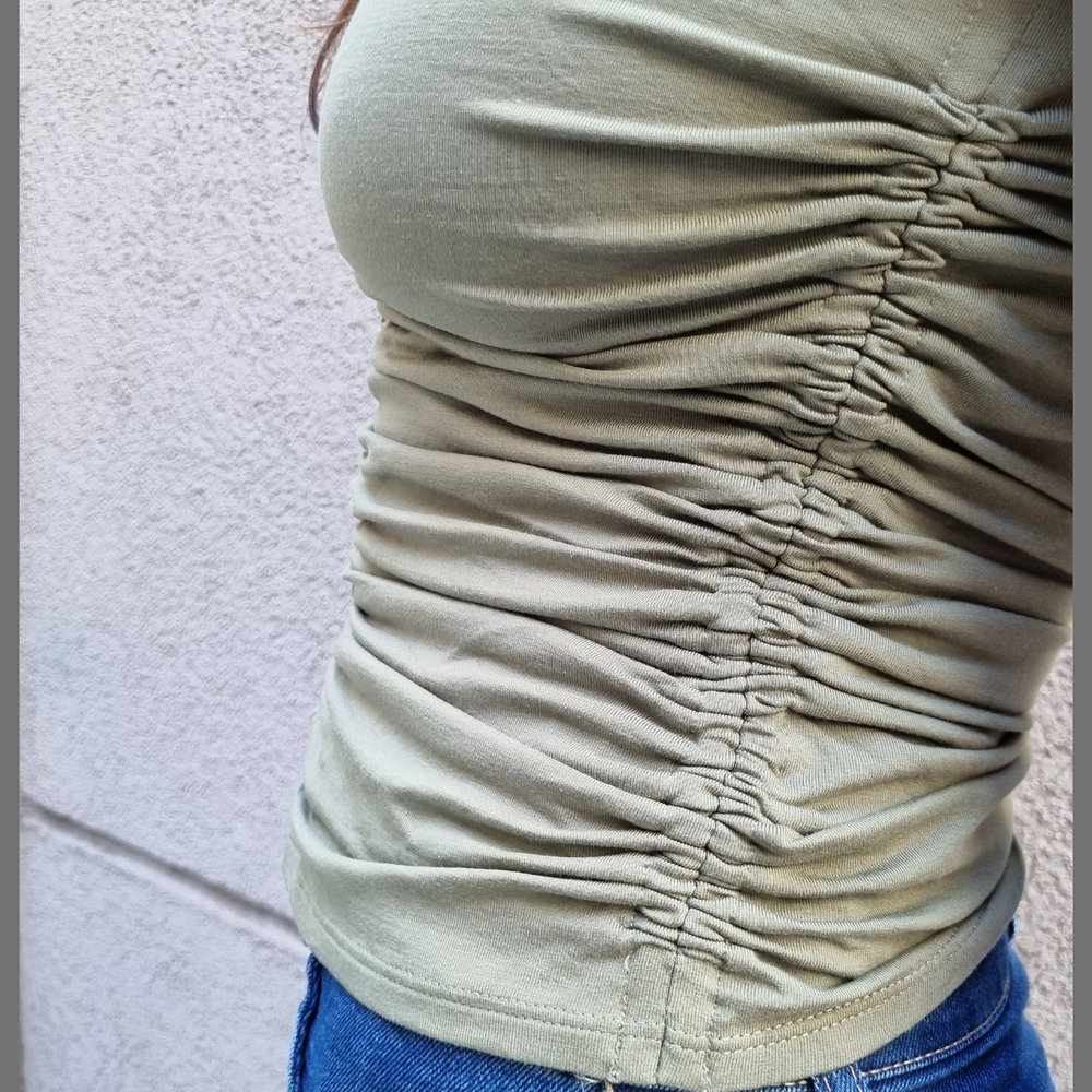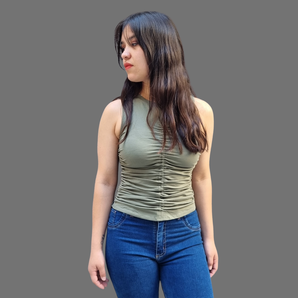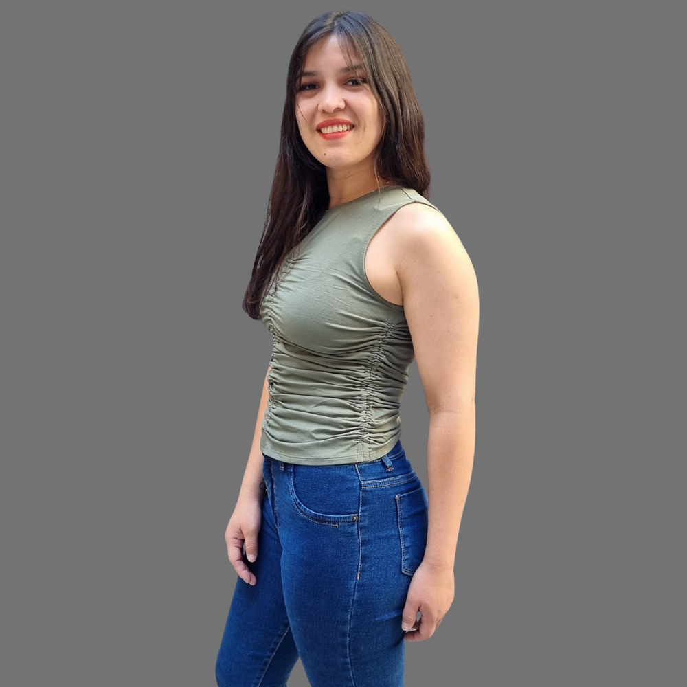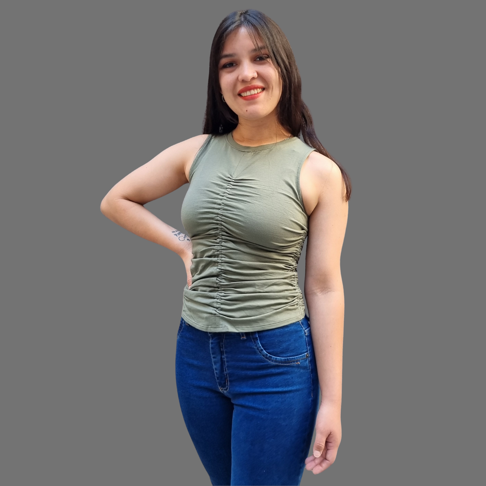 Blusa musculosa con frunce elastizado MARCA: ANAANDI ORIGEN: India COMPOSICIÓN: Algodón 97% - Spandex 7%