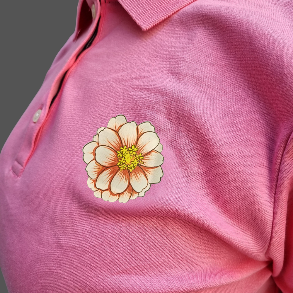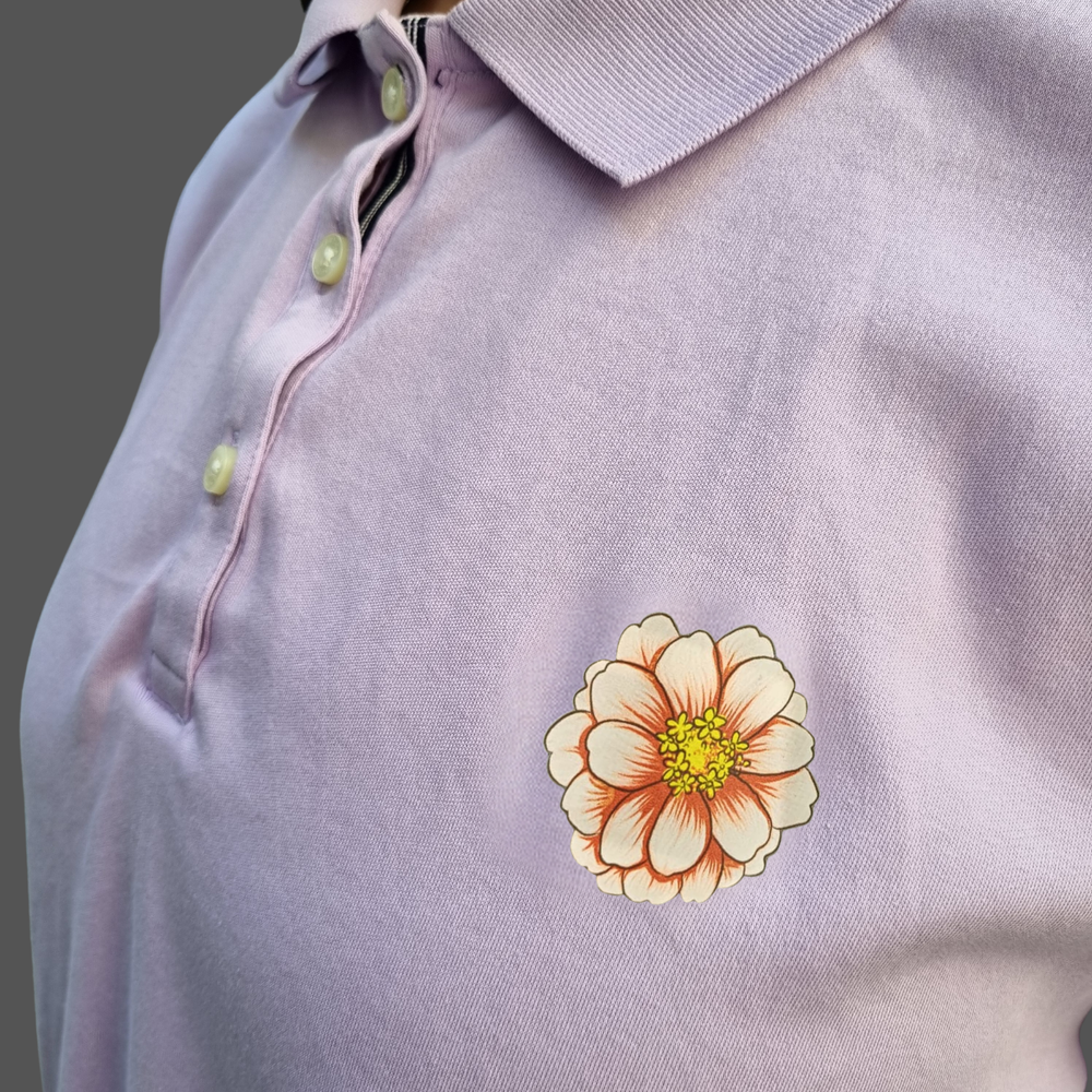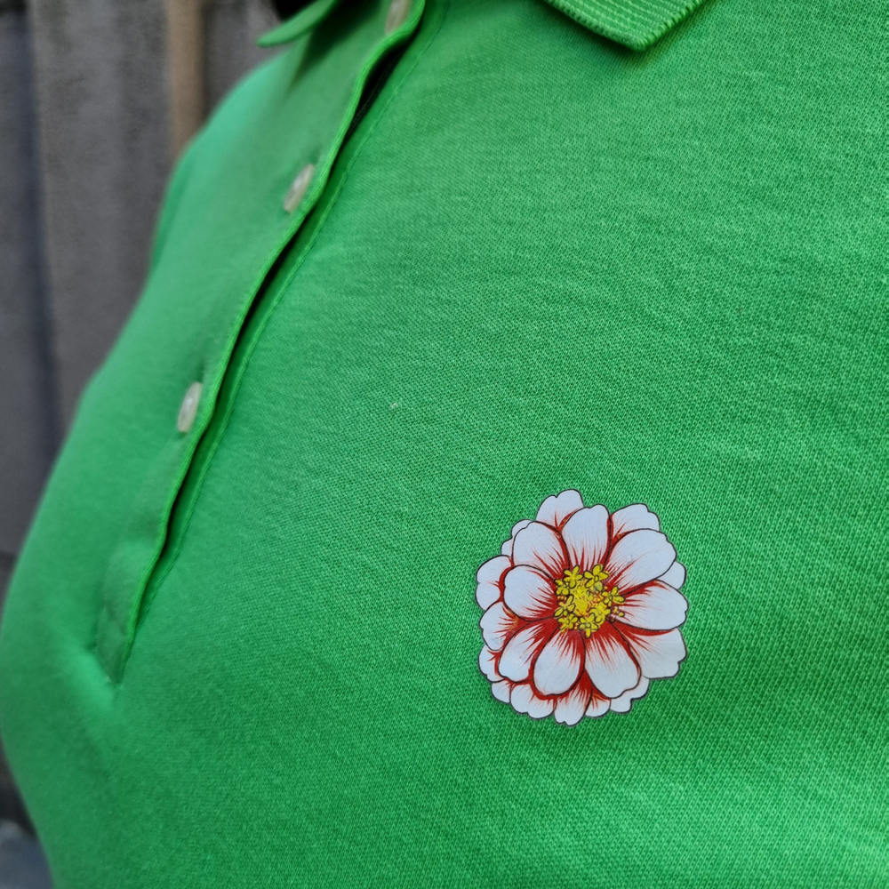 REMERA CHOMBA CUELLO POLO 3 BOTONES ESTAMPADO FLOR / 3 R (reduce, recicla, reutiliza) MARCA: Anaandi ORIGEN: India COMPOSICIÓN: Algodón 96% - Elastano %4