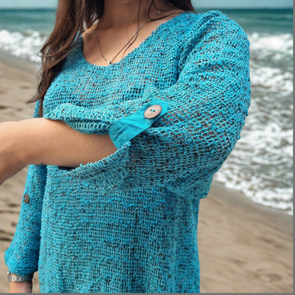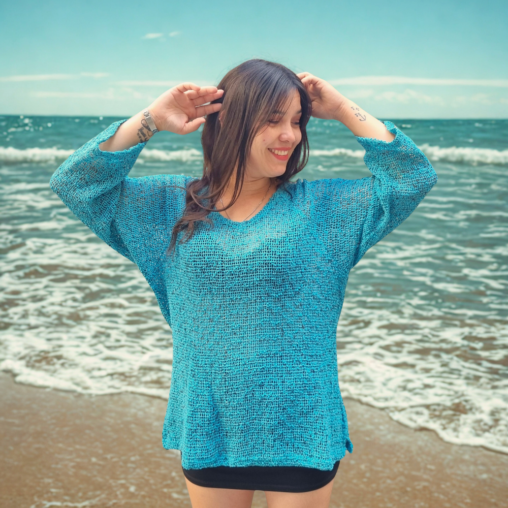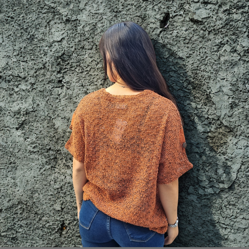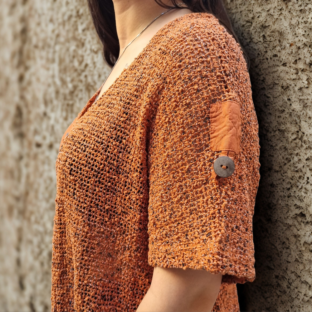 Blusa Crochet M3/4 PLAYERO CASUAL MARCA: Frazzle COMPOSICIÓN: Algodón 62% - Nylon 23% - Poliéster 15%