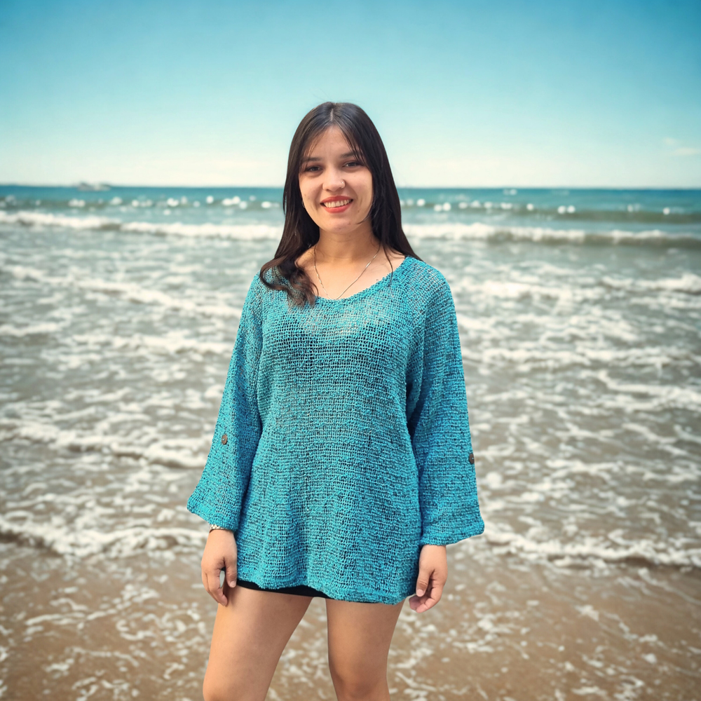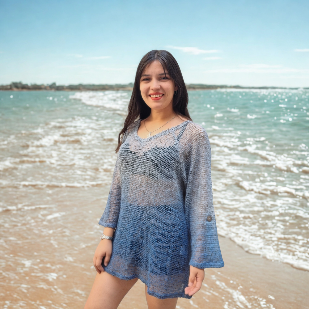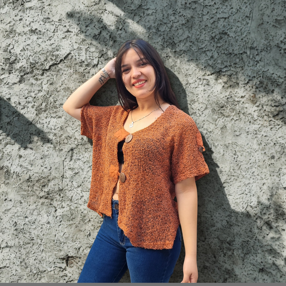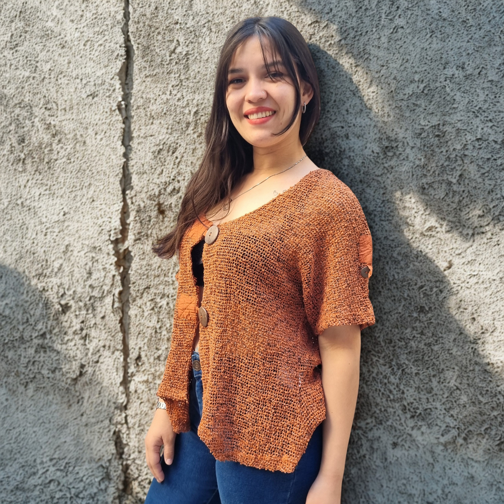 Blusa Crochet M3/4 PLAYERO CASUAL MARCA: Frazzle COMPOSICIÓN: Algodón 62% - Nylon 23% - Poliéster 15%