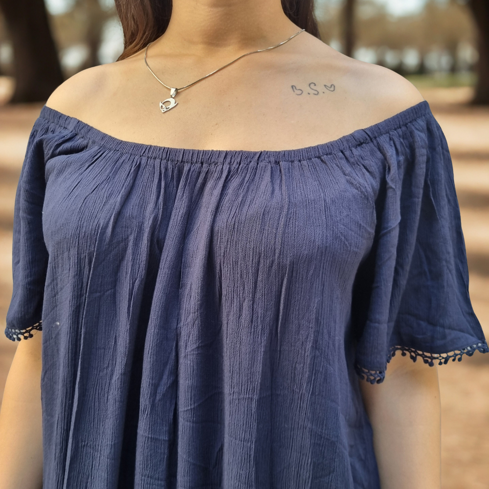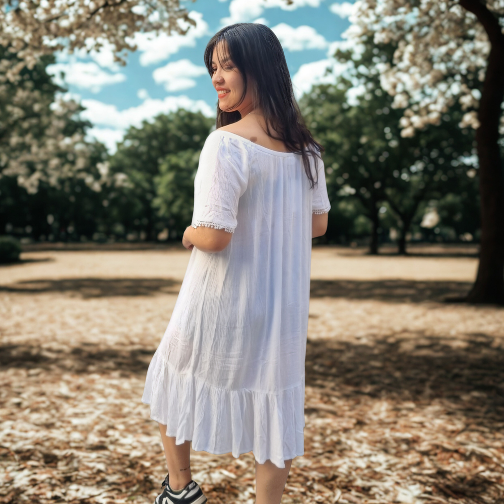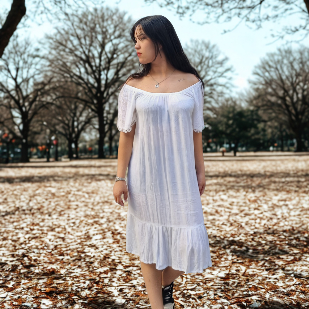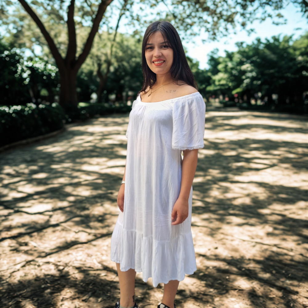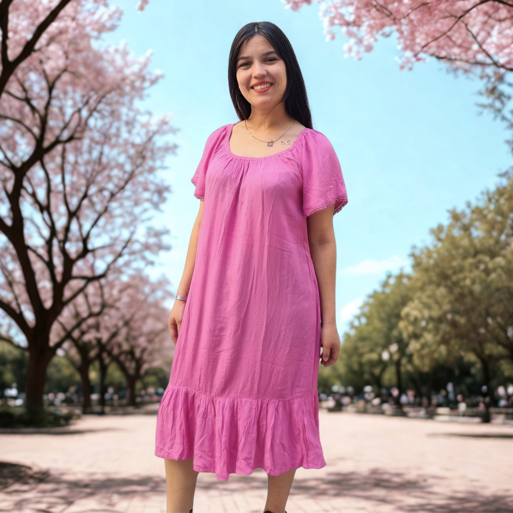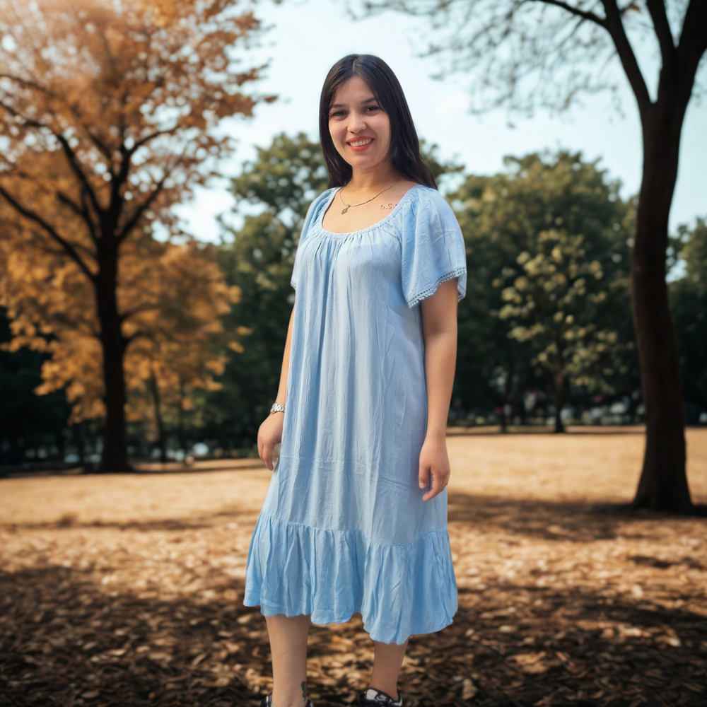 VESTIDO LARGO MEDIO DETALLE EN PUNTILLA MARCA: GINA ORIGEN: India COMPOSICIÓN: Viscosa 100%