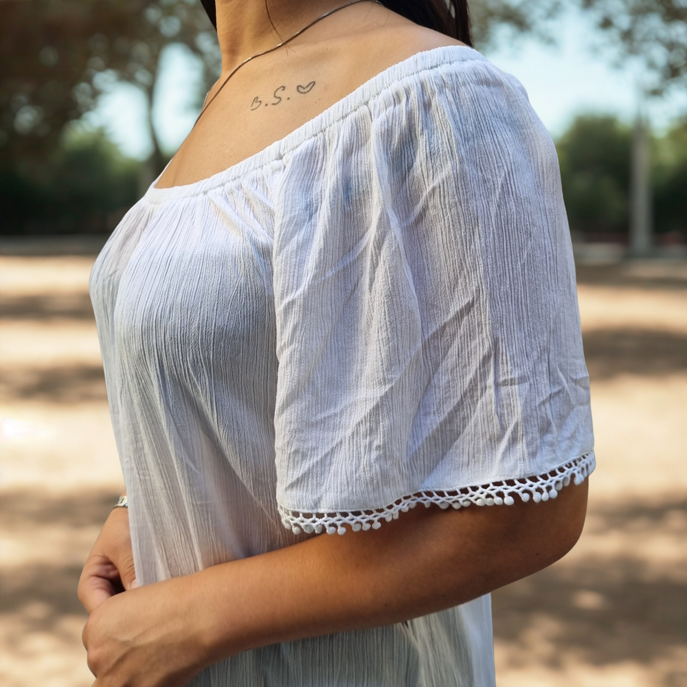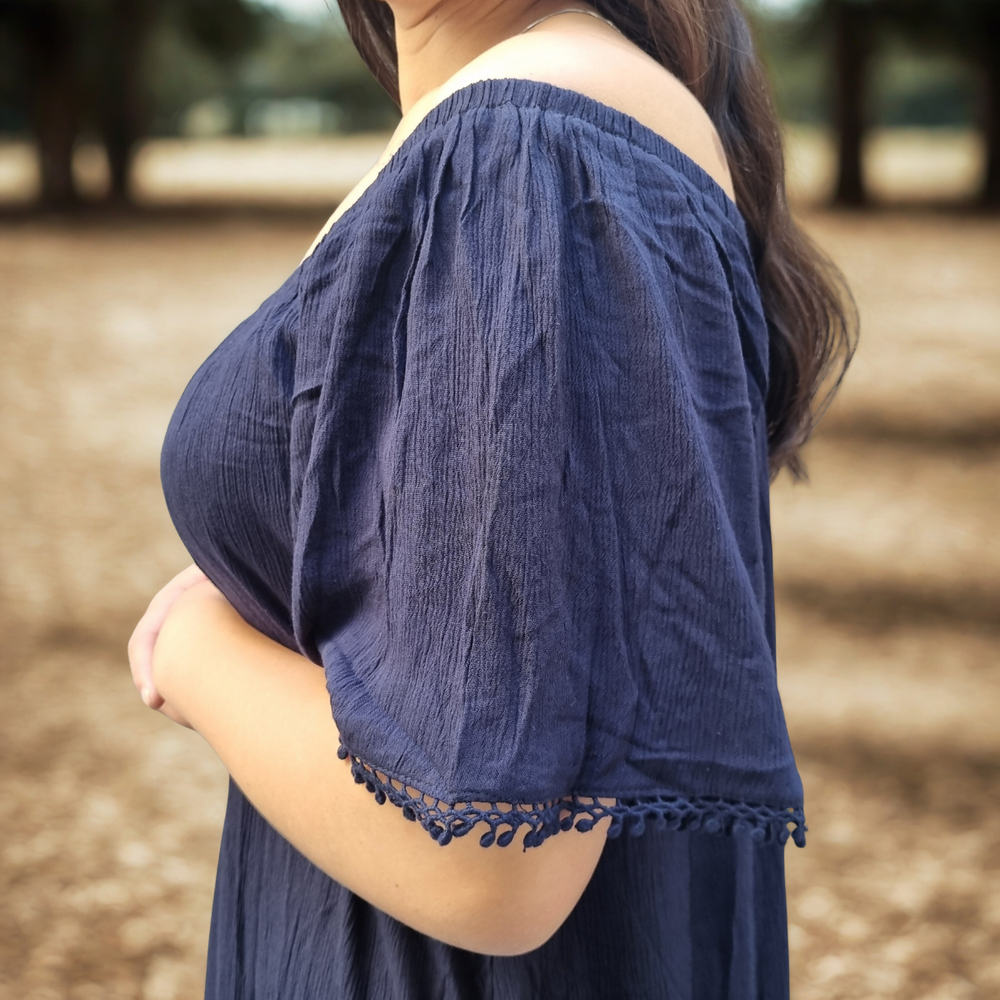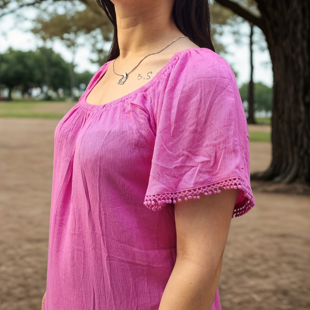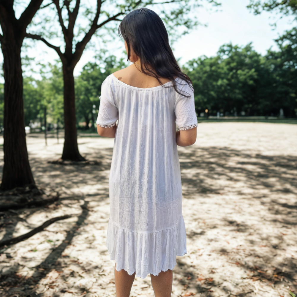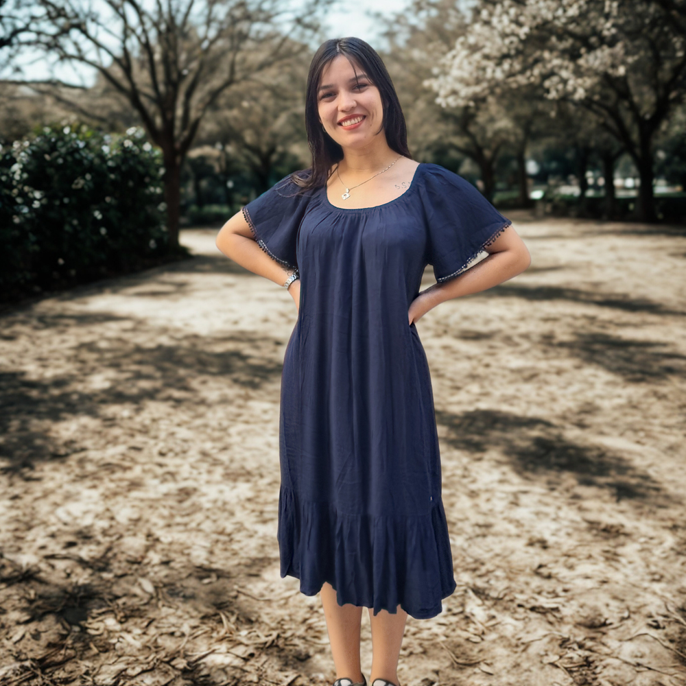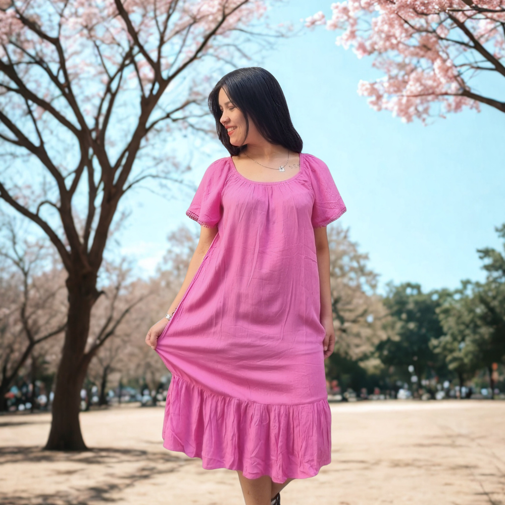 VESTIDO LARGO MEDIO DETALLE EN PUNTILLA MARCA: GINA ORIGEN: India COMPOSICIÓN: Viscosa 100%