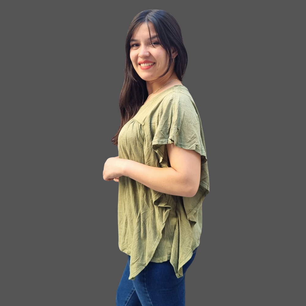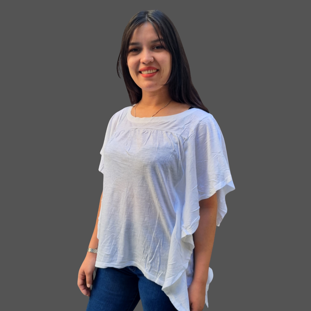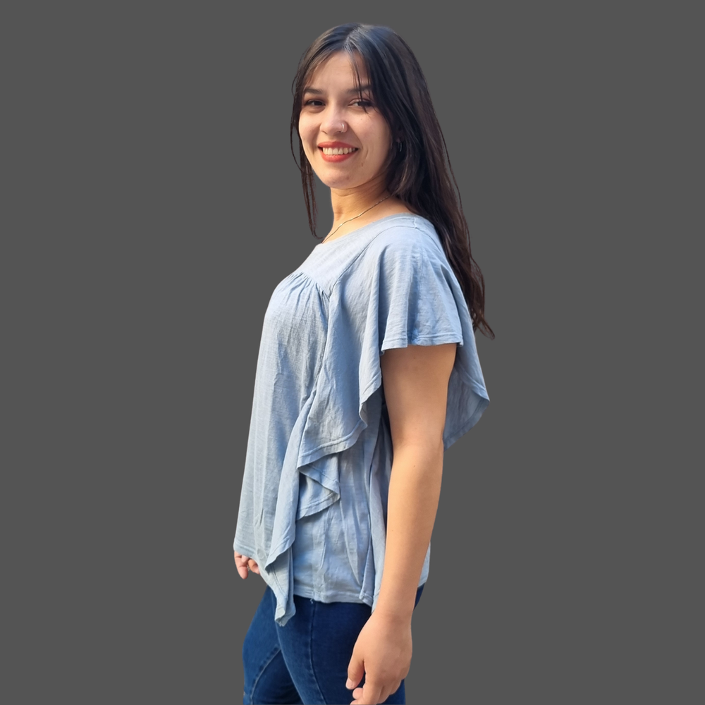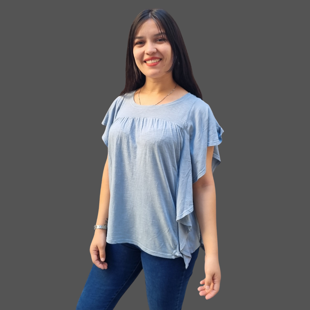BLUSA CUELLO REDONDO VOLADOS LATERALES MARCA: Wonderly ORIGEN: India COMPOSICIÓN: Algodón 60% - Modal 40%