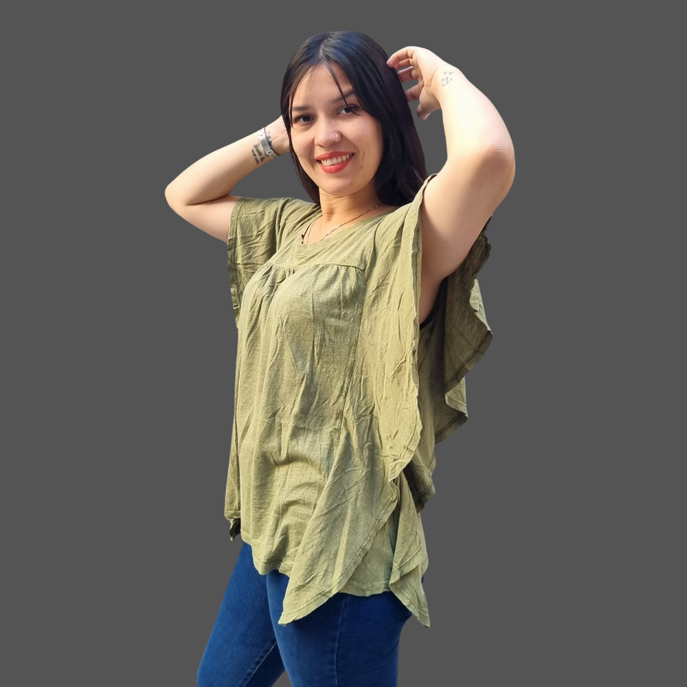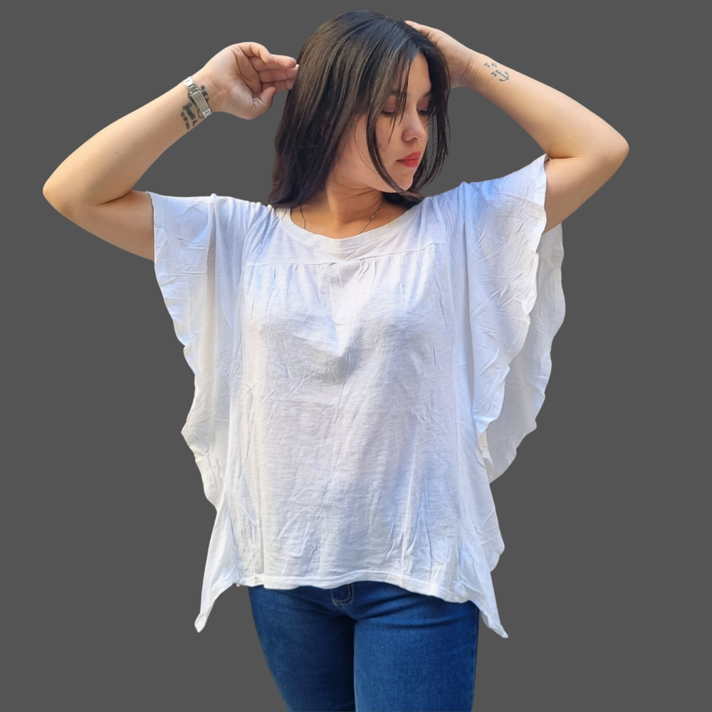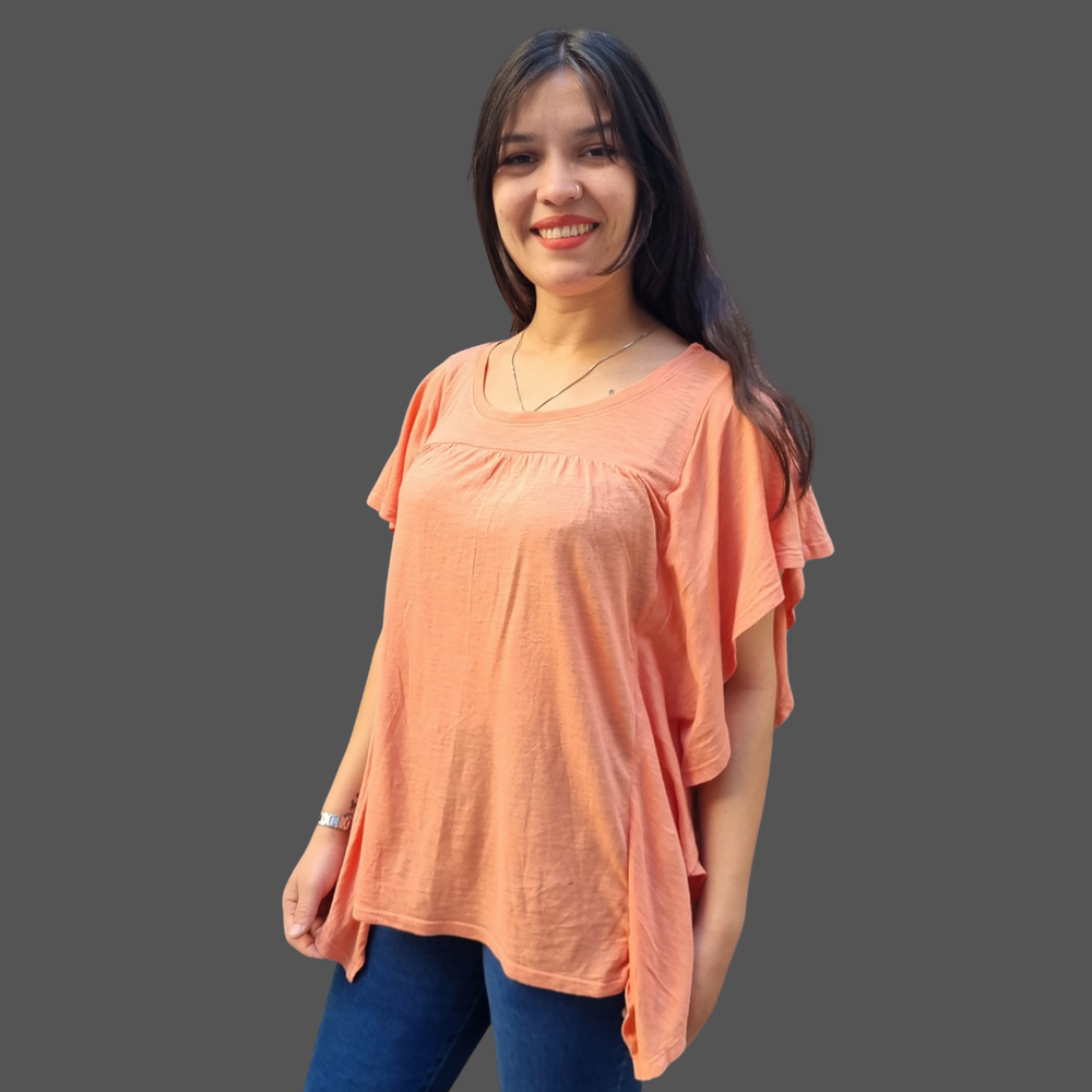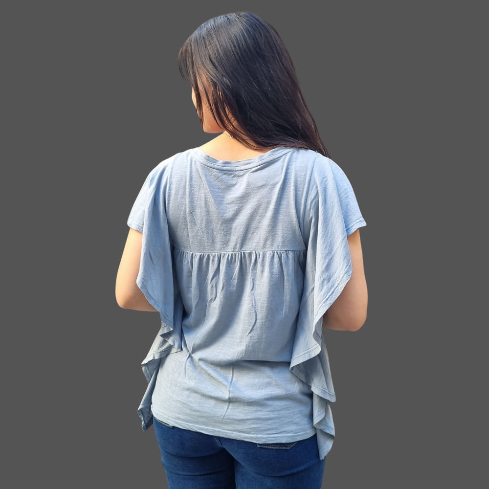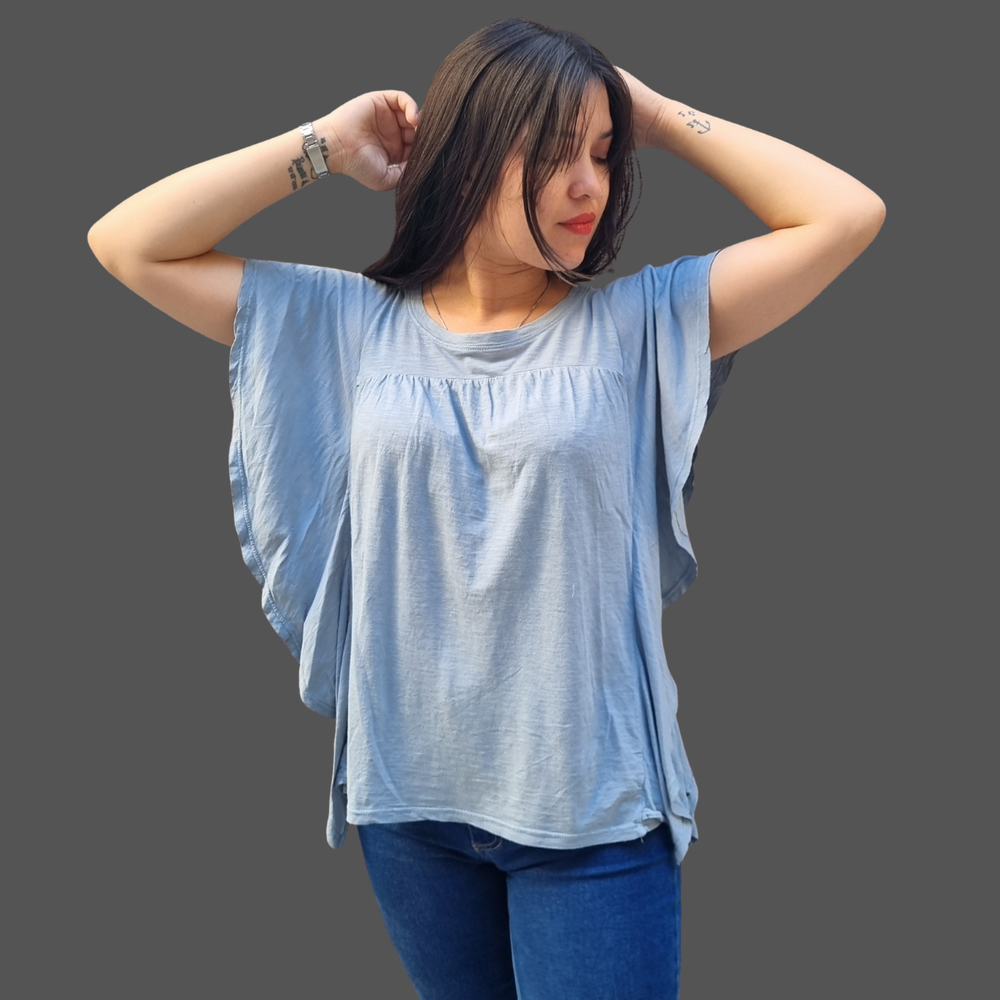 BLUSA CUELLO REDONDO VOLADOS LATERALES MARCA: Wonderly ORIGEN: India COMPOSICIÓN: Algodón 60% - Modal 40%